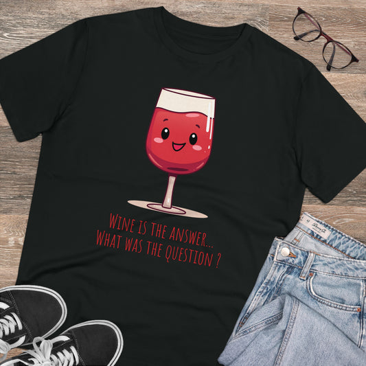 Eco-Friendly 'Wine is the Answer' T-Shirt - Cute Red Wine Design, Unisex