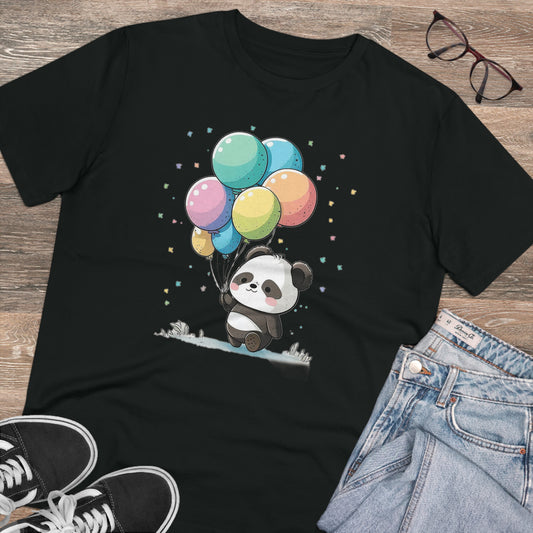 Cute Panda with Balloons Organic Unisex T-Shirt - Add Some Adorable and Eco-Friendly Style to Your Wardrobe