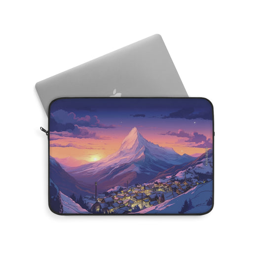 Mountain Village Laptop Sleeve - Protect Your Device in Style with a Serene Snowy Sunset