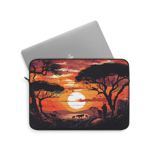 African Sunset Laptop Sleeve - Protect Your Device in Style with a Serene Wildlife Scene
