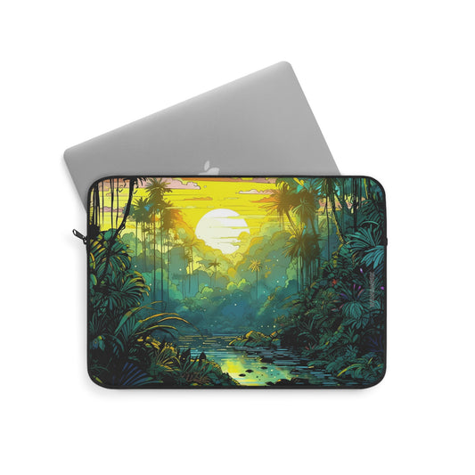 Mysterious Rain Forest Laptop Sleeve - Protect Your Device with an Enchanting Sunset Scene