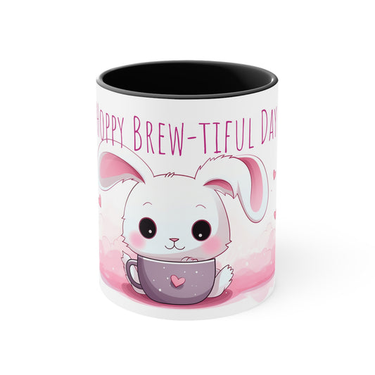 Kawaii Bunny Coffee Mug : "Hoppy Brew-tiful Day"