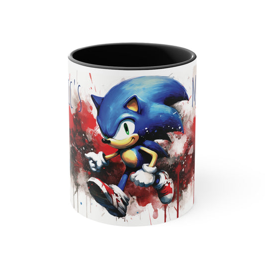 Sonic's Mug - 11 oz Bicolor Mug in Vibrant Watercolor Style