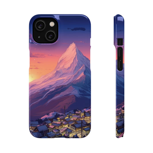 Snowy Mountain Landscape Sunset Phone Case - Discover Serenity with a Charming Mountain Village