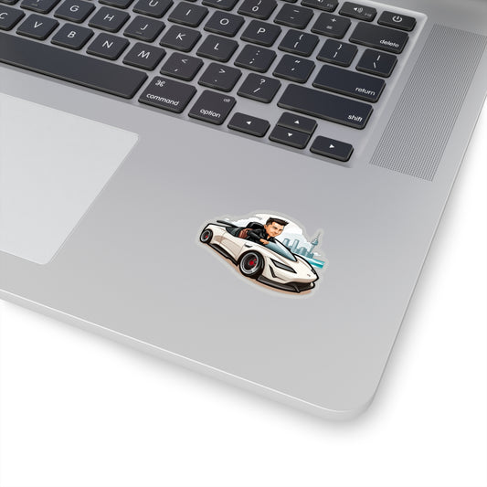 Elon Musk in White Tesla Roadster Sticker - Add Some Unique and Bold Style to Your Tech