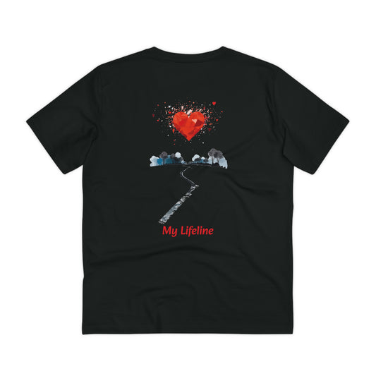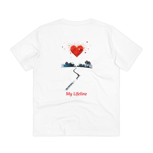 My Lifeline : Eco-Friendly T-Shirt with a Red Heart at the End of the Road