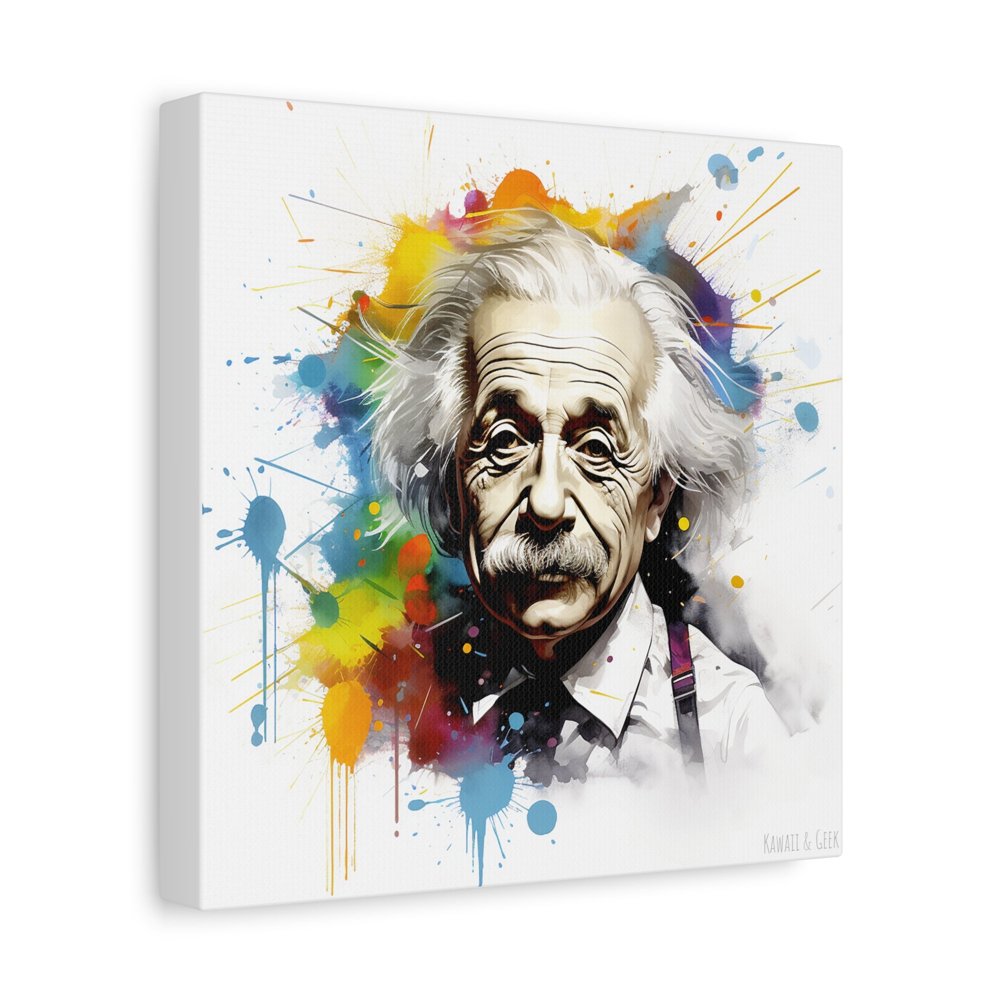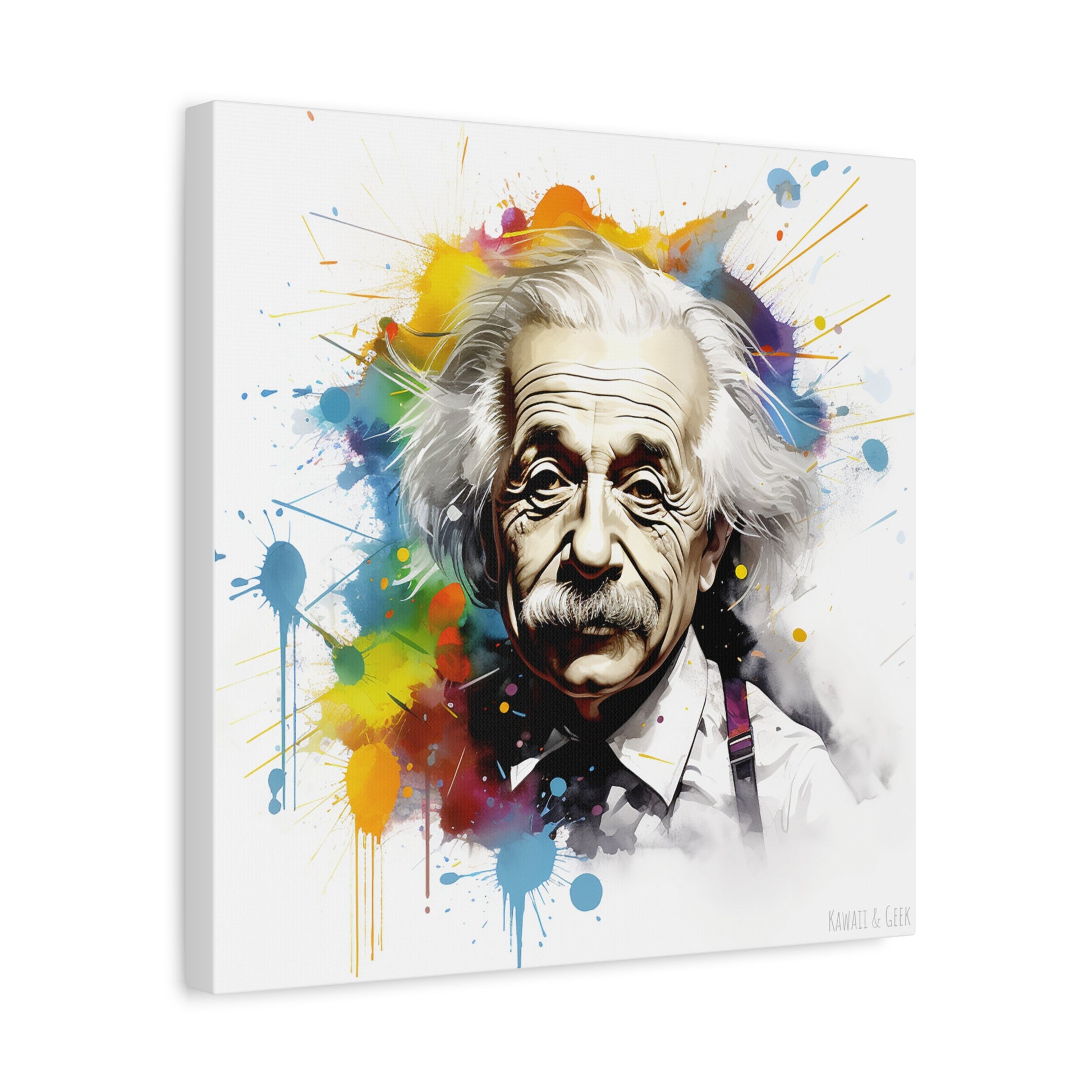Keywords: Einstein portrait, Theoretical physicist, Relativity theory, Genius art, Scientist canvas, Physics icon, Nobel laureate, E=mc^2, Iconic figures, Brainy decor, Intellectual art, History of science, Genius in color.