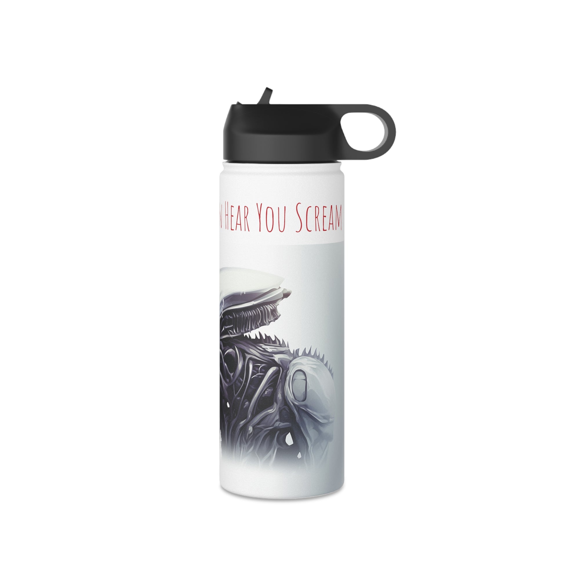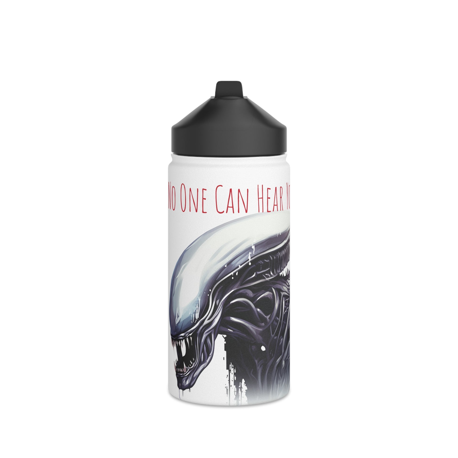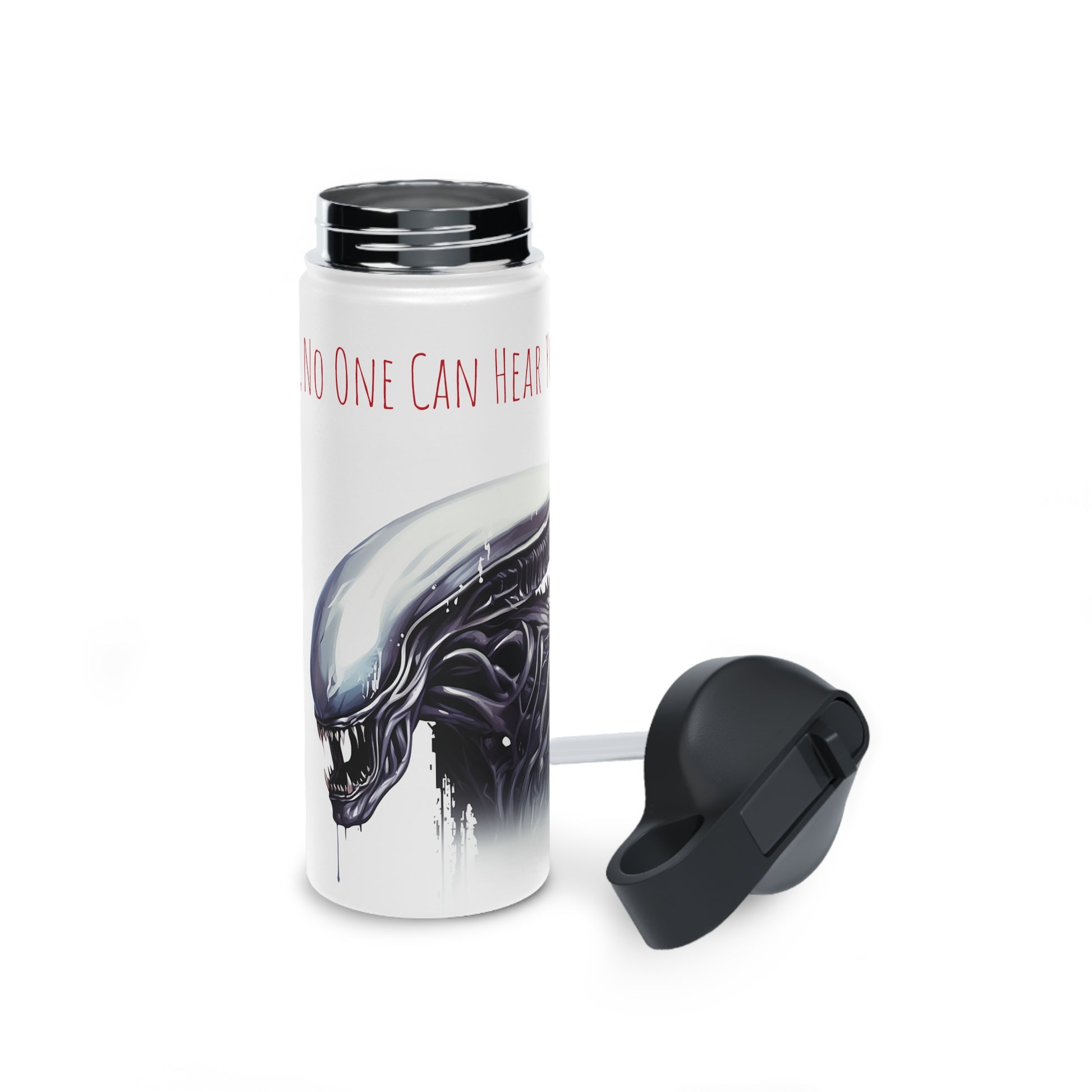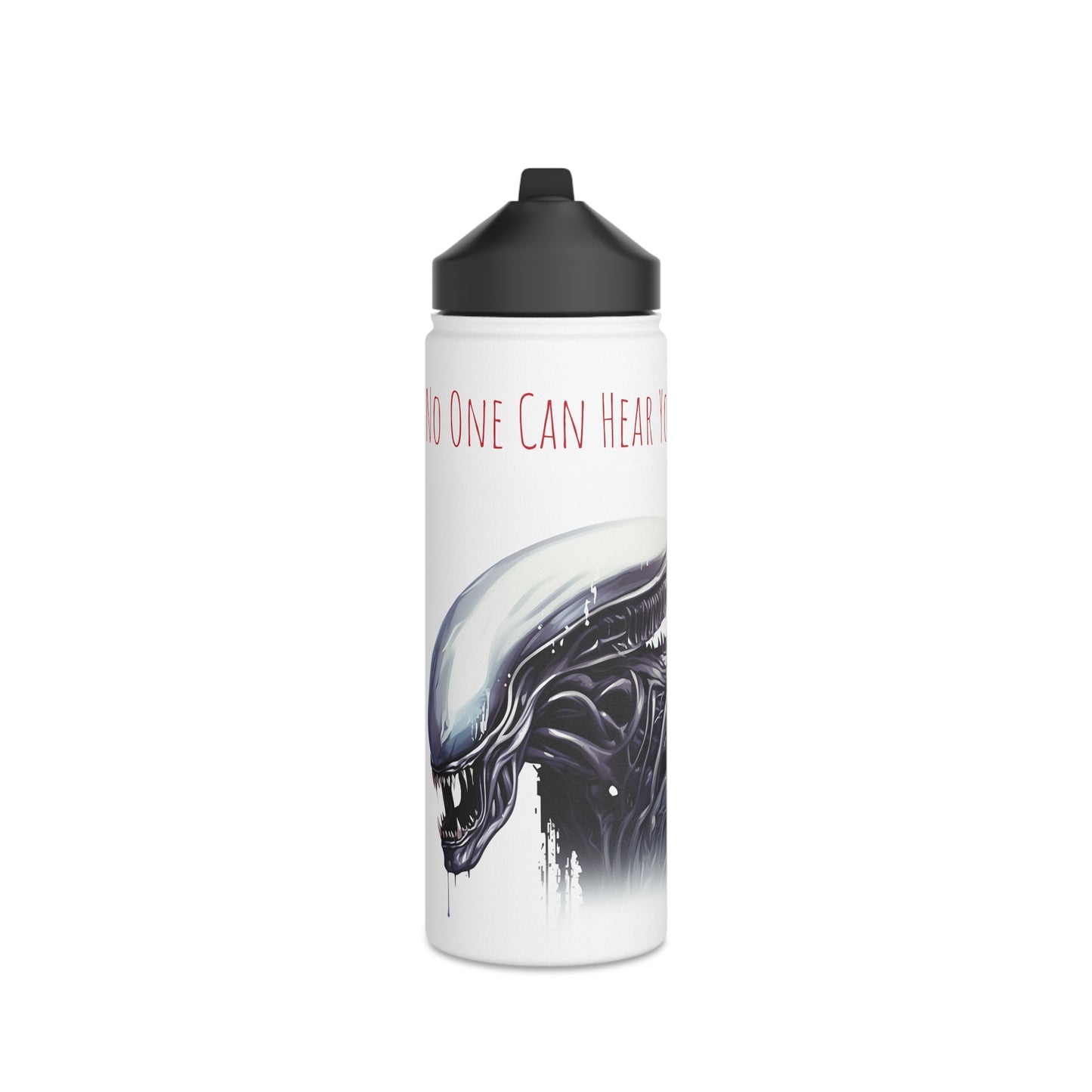 Embrace the eerie allure of space with our "Xenomorph Scream" stainless steel water bottle. Adorned with the iconic Alien Xenomorph and the chilling phrase "In Space, No One Can Hear You Scream," it's a must-have for every sci-fi aficionado. Crafted for long-lasting quality, this bottle ensures your beverage remains perfectly tempered. A spine-chilling reminder of the vast unknown, it's the ideal companion for earthly endeavors and space explorations alike.