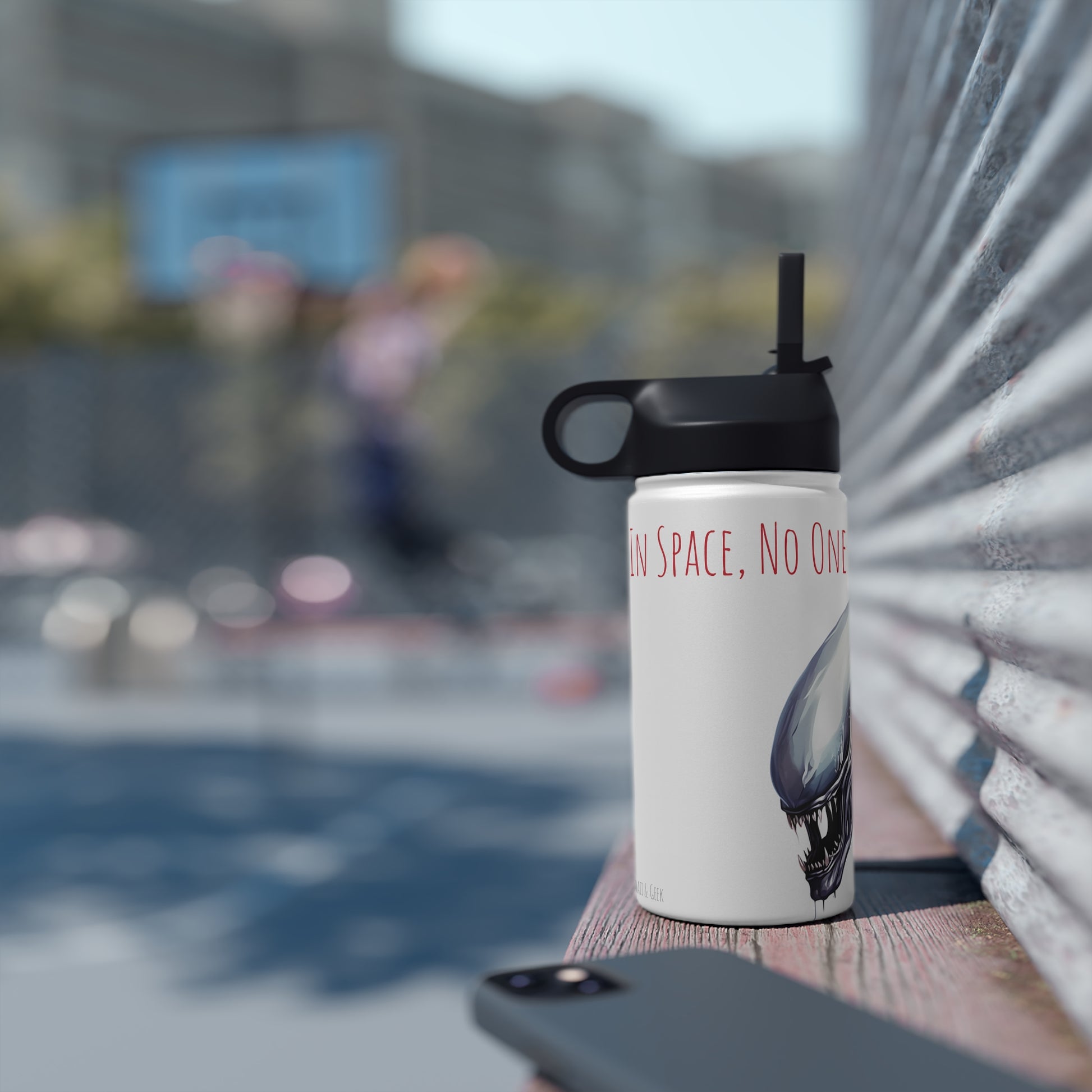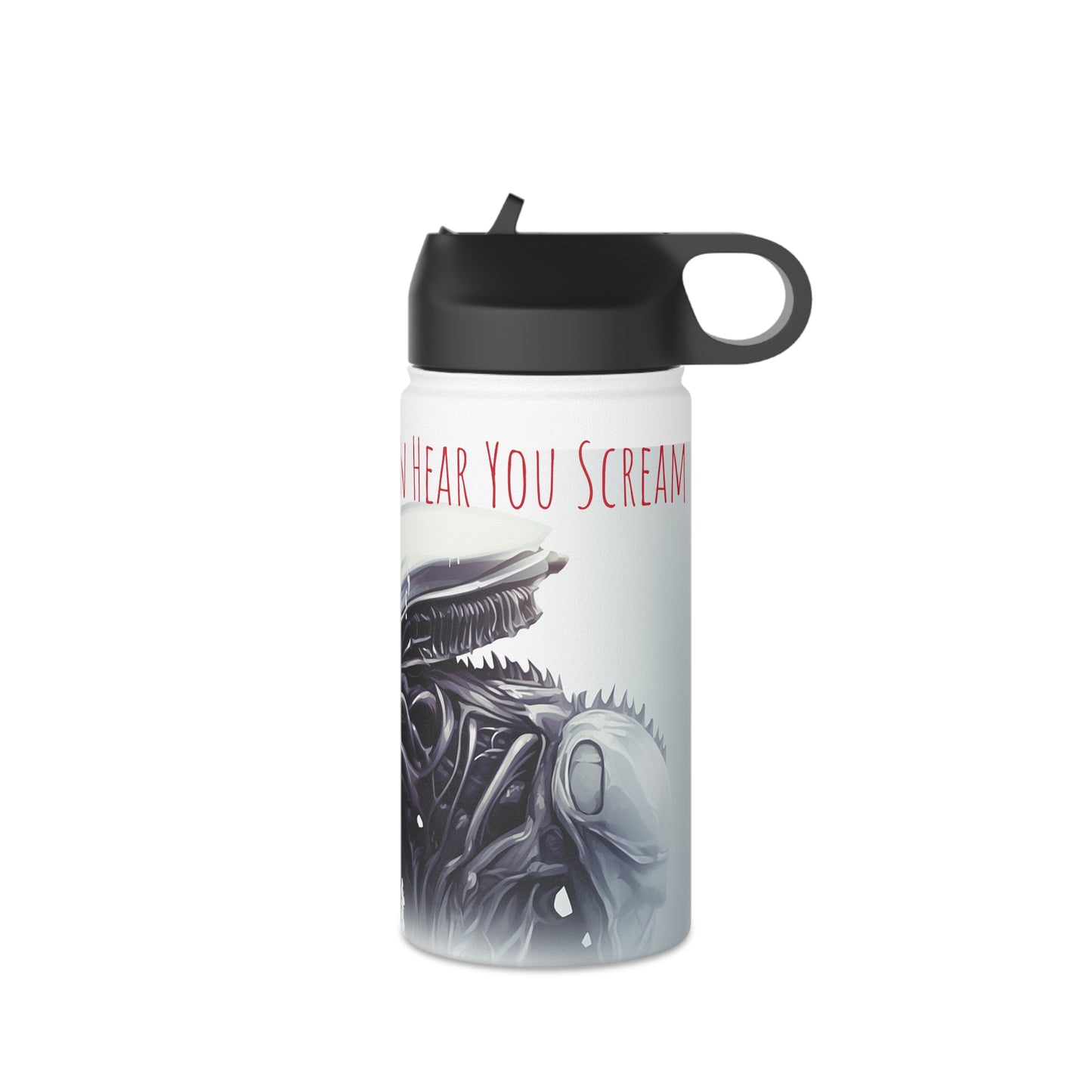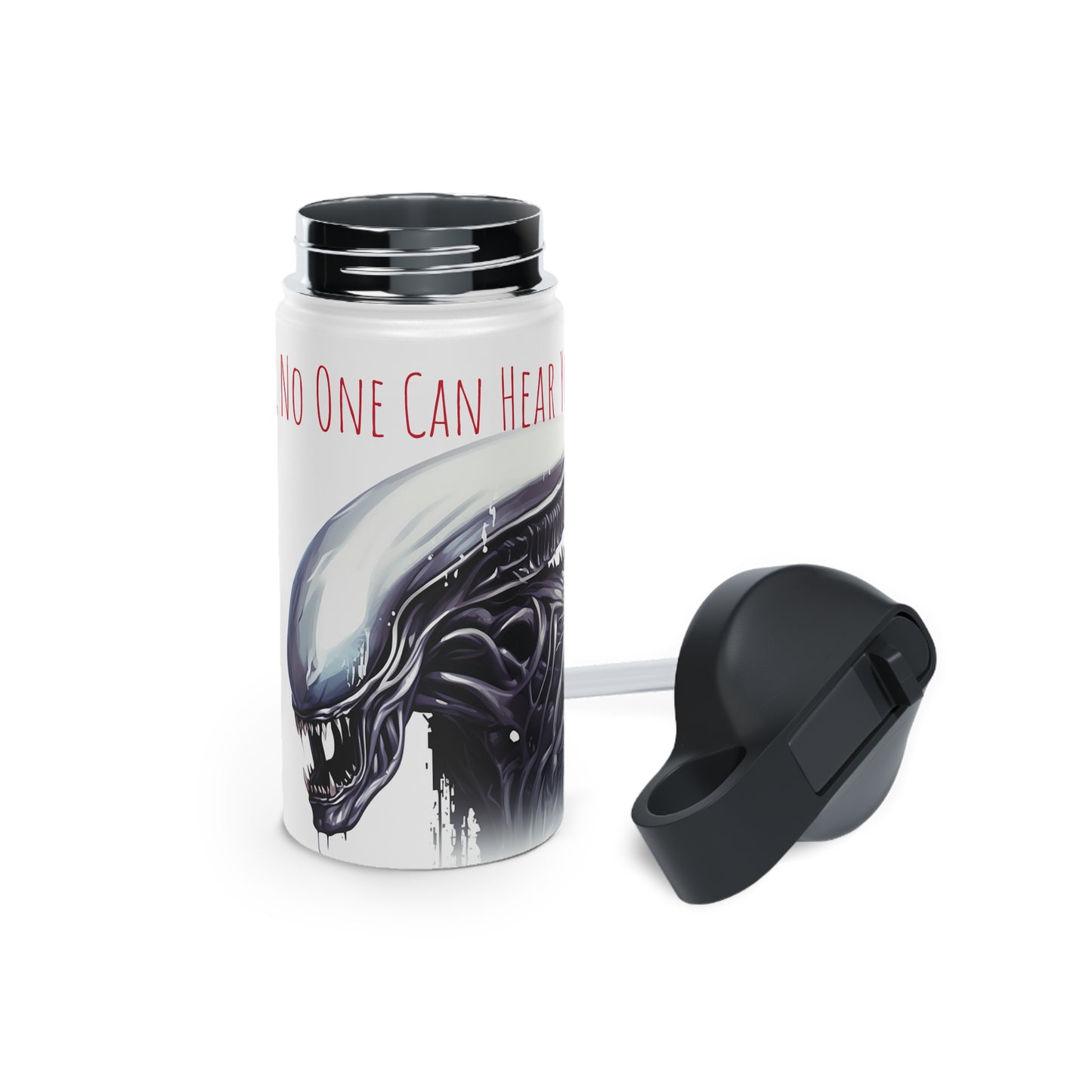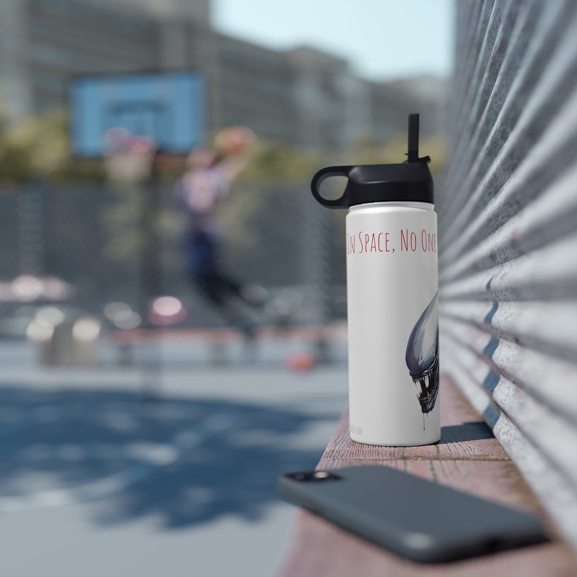 Embrace the eerie allure of space with our "Xenomorph Scream" stainless steel water bottle. Adorned with the iconic Alien Xenomorph and the chilling phrase "In Space, No One Can Hear You Scream," it's a must-have for every sci-fi aficionado. Crafted for long-lasting quality, this bottle ensures your beverage remains perfectly tempered. A spine-chilling reminder of the vast unknown, it's the ideal companion for earthly endeavors and space explorations alike.