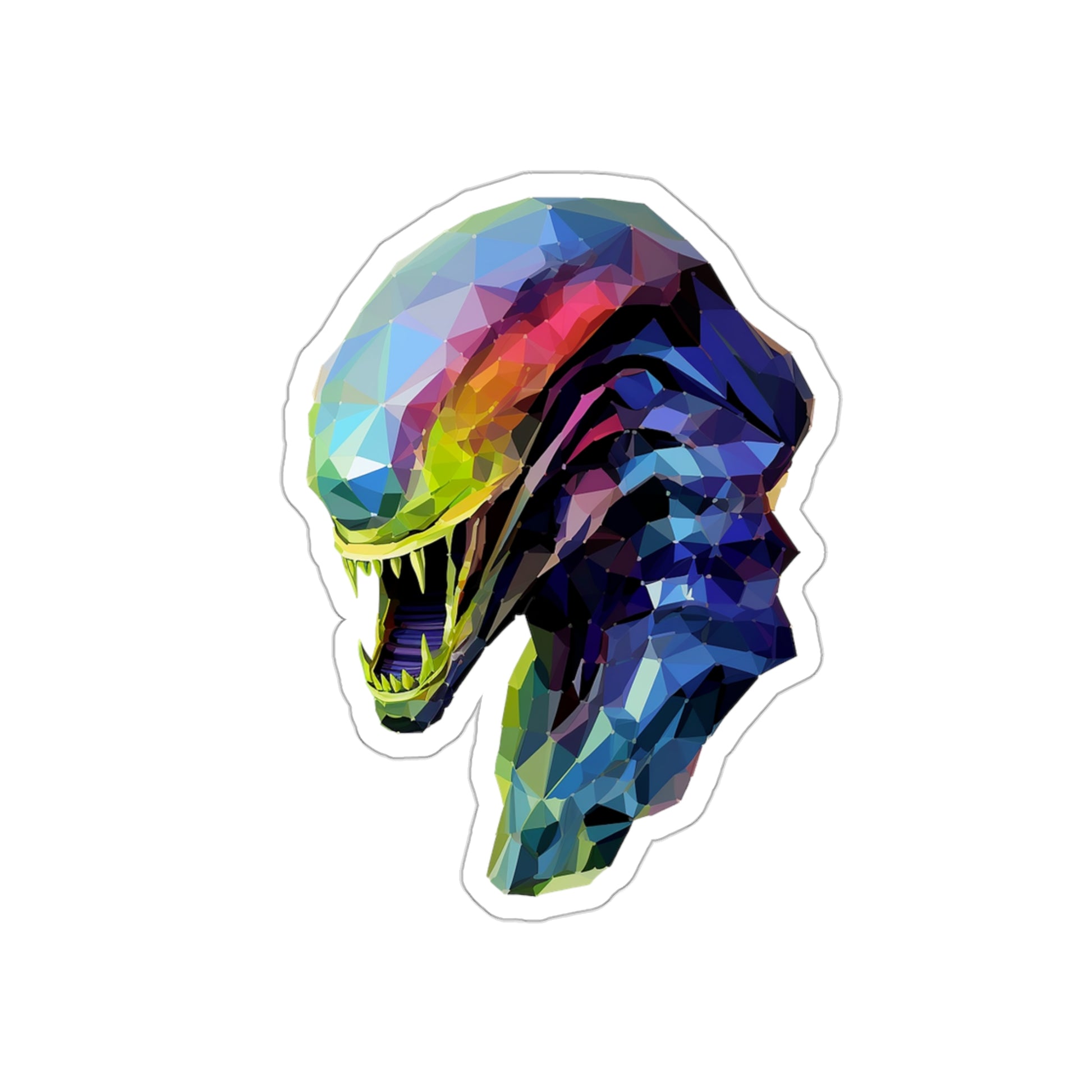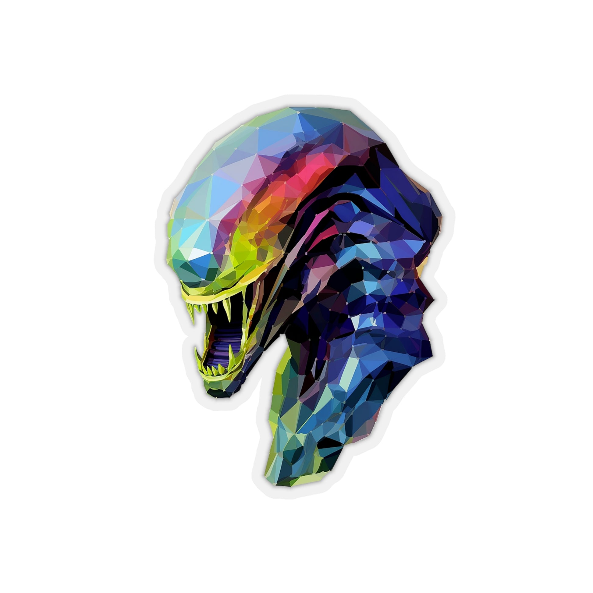 Experience the radiant and captivating presence of the Alien Xenomorph with this rainbow version geometric vector sticker. The bold geometric shapes and vibrant colors bring a fresh twist to the iconic sci-fi creature. Crafted with meticulous attention to detail, this sticker captures the essence of the Alien Xenomorph in a modern and eye-catching form. Whether you're a fan of the Alien franchise or simply appreciate unique and vibrant designs, this sticker is a must-have addition to your collection. Embrace the extraterrestrial menace with the Alien Xenomorph rainbow version geometric vector sticker.