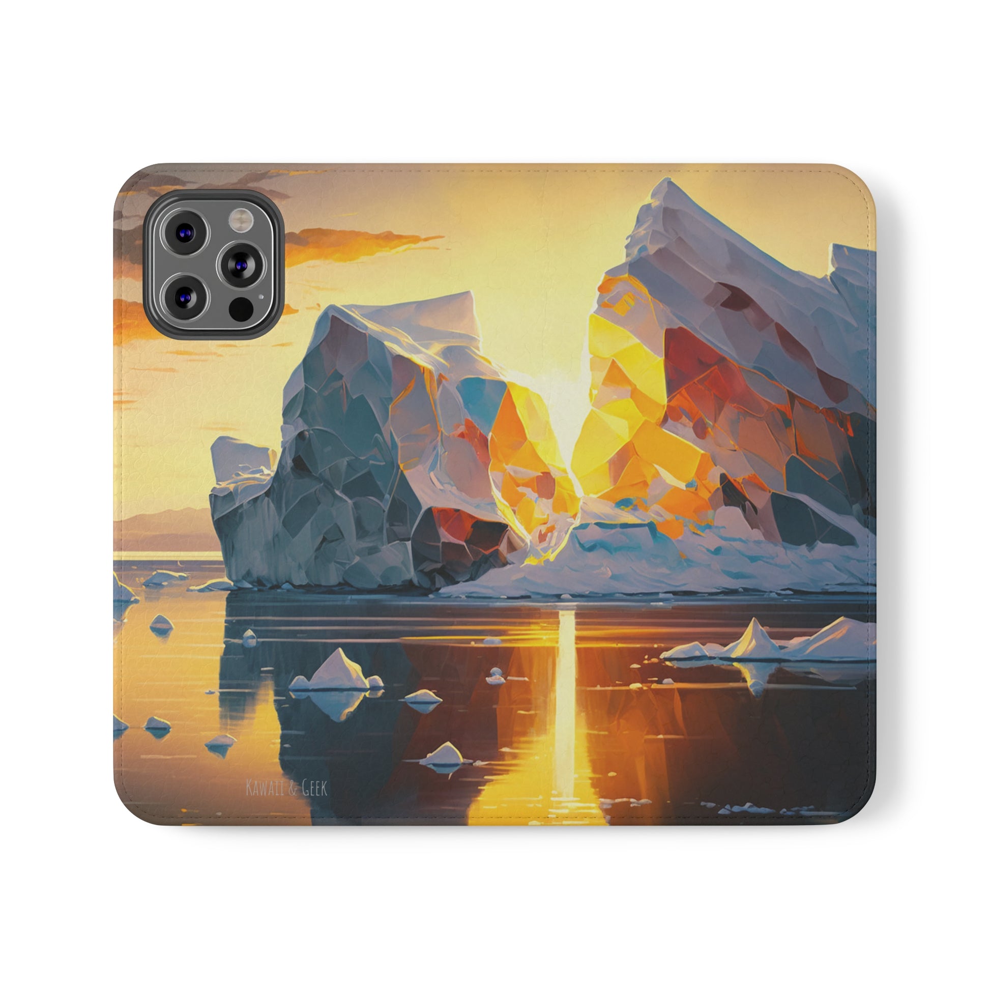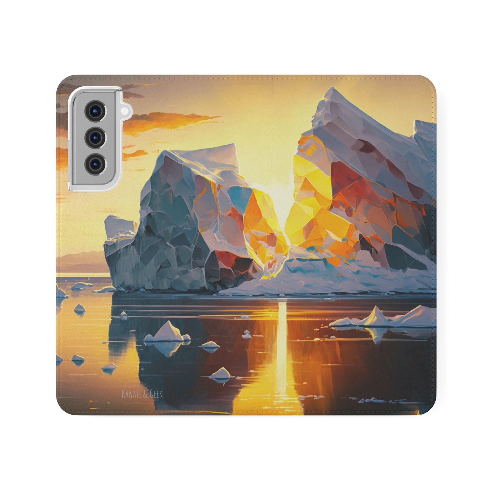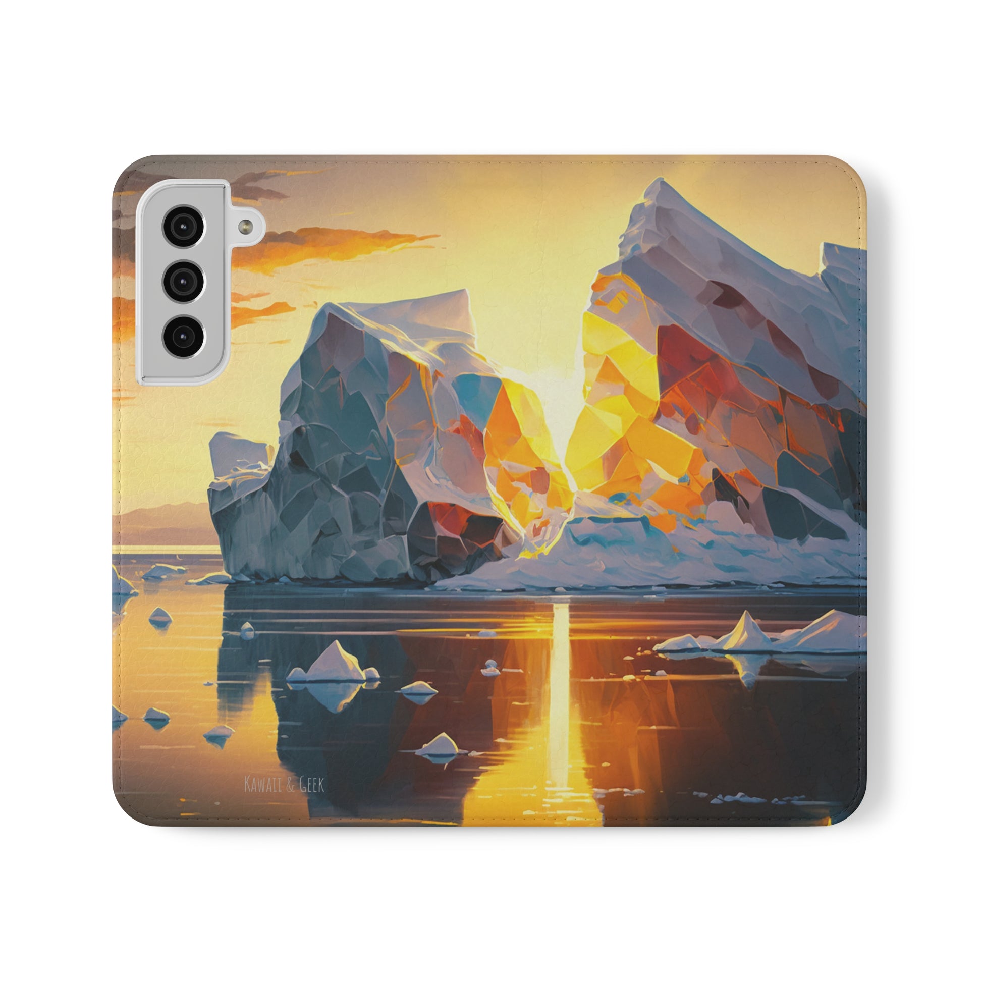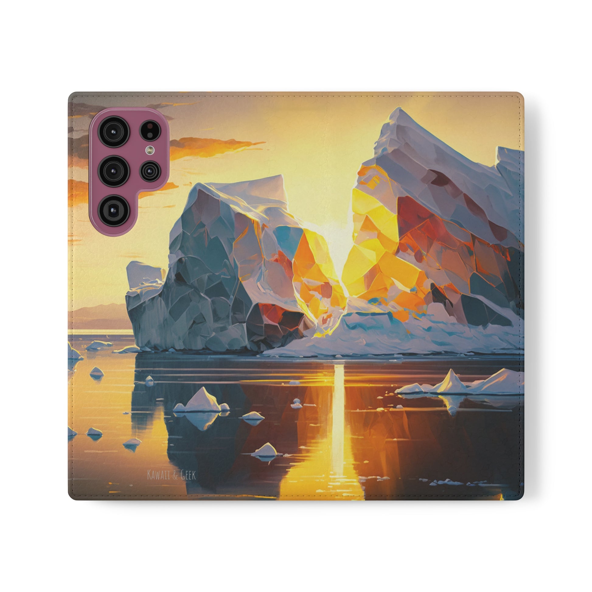 Keywords: Arctic landscape phone case, iceberg at sunset, high-quality print, durable materials, nature-inspired design, reliable protection.