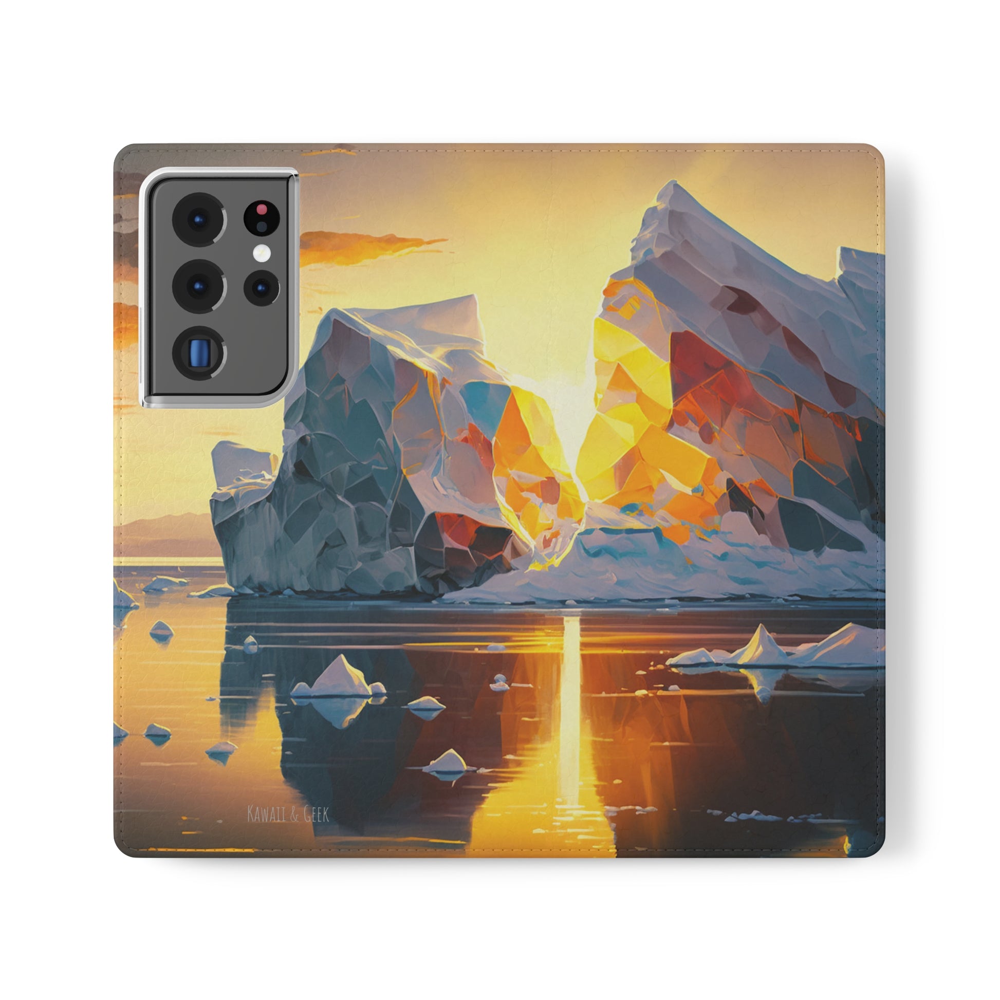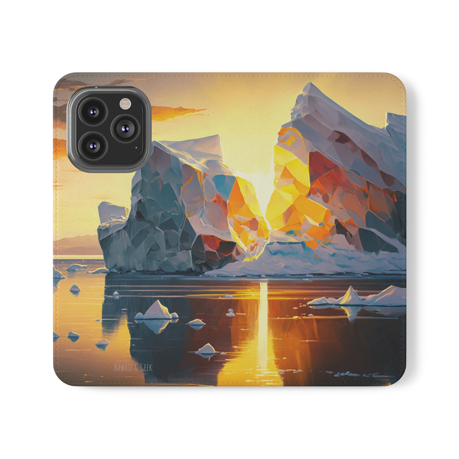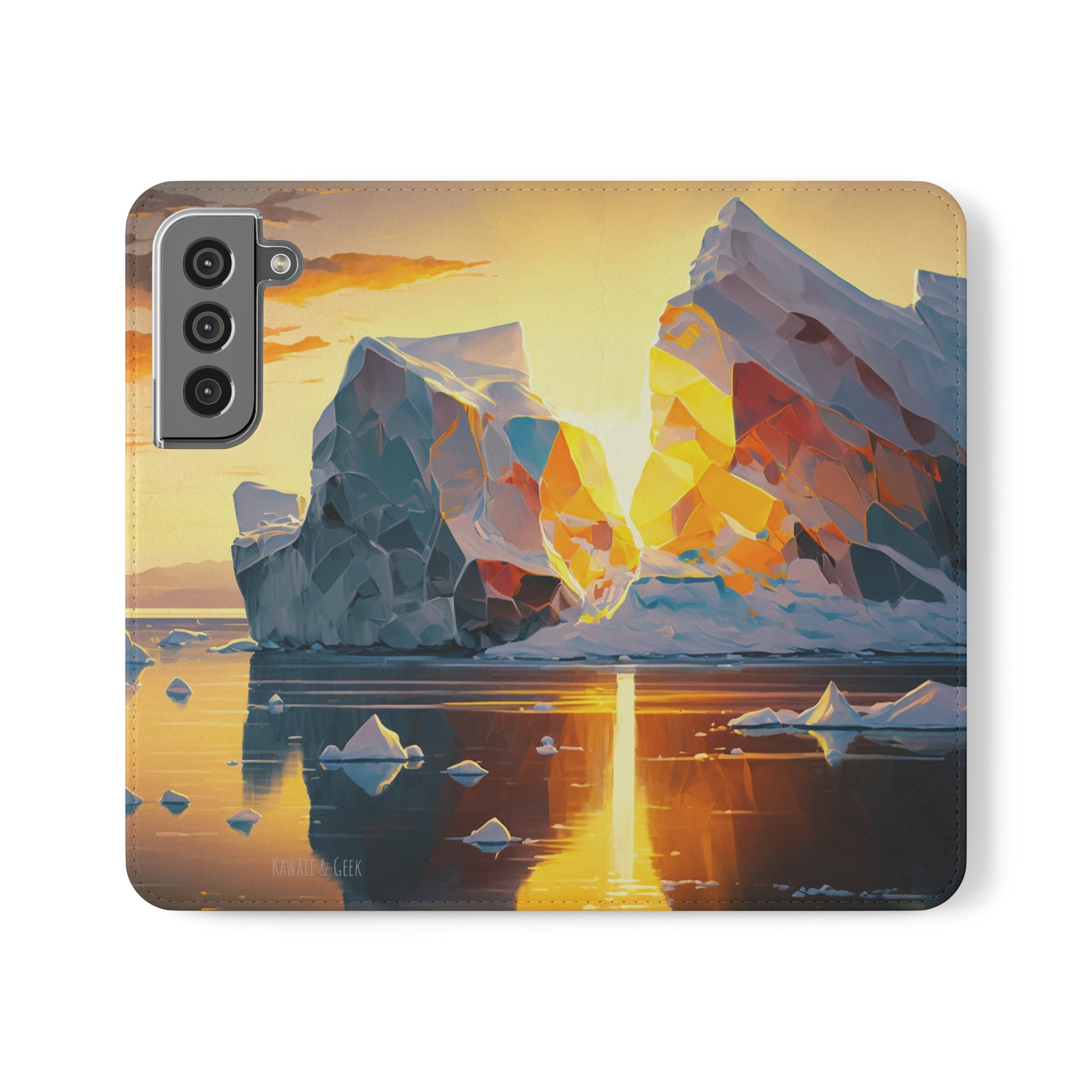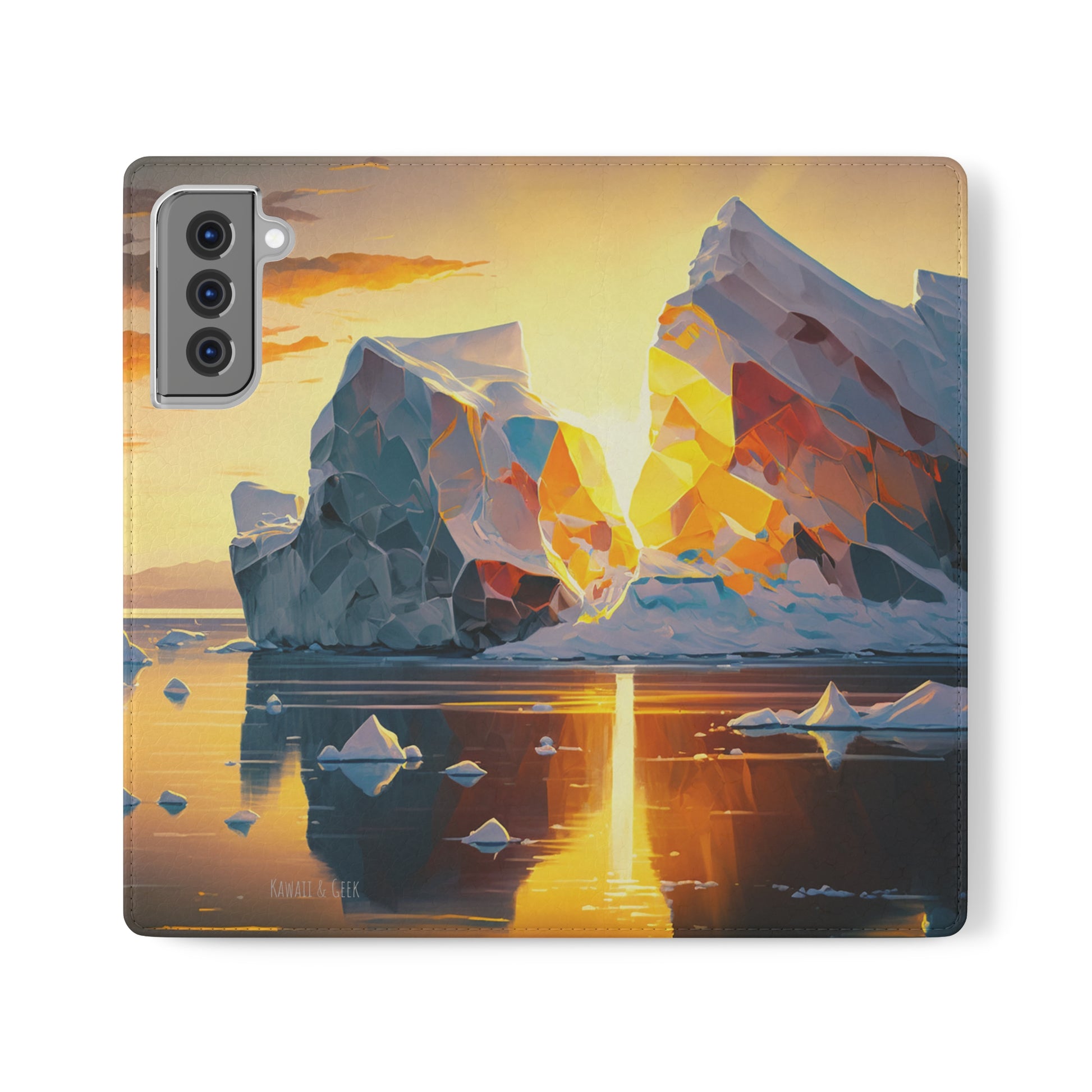 Keywords: Arctic landscape phone case, iceberg at sunset, high-quality print, durable materials, nature-inspired design, reliable protection.