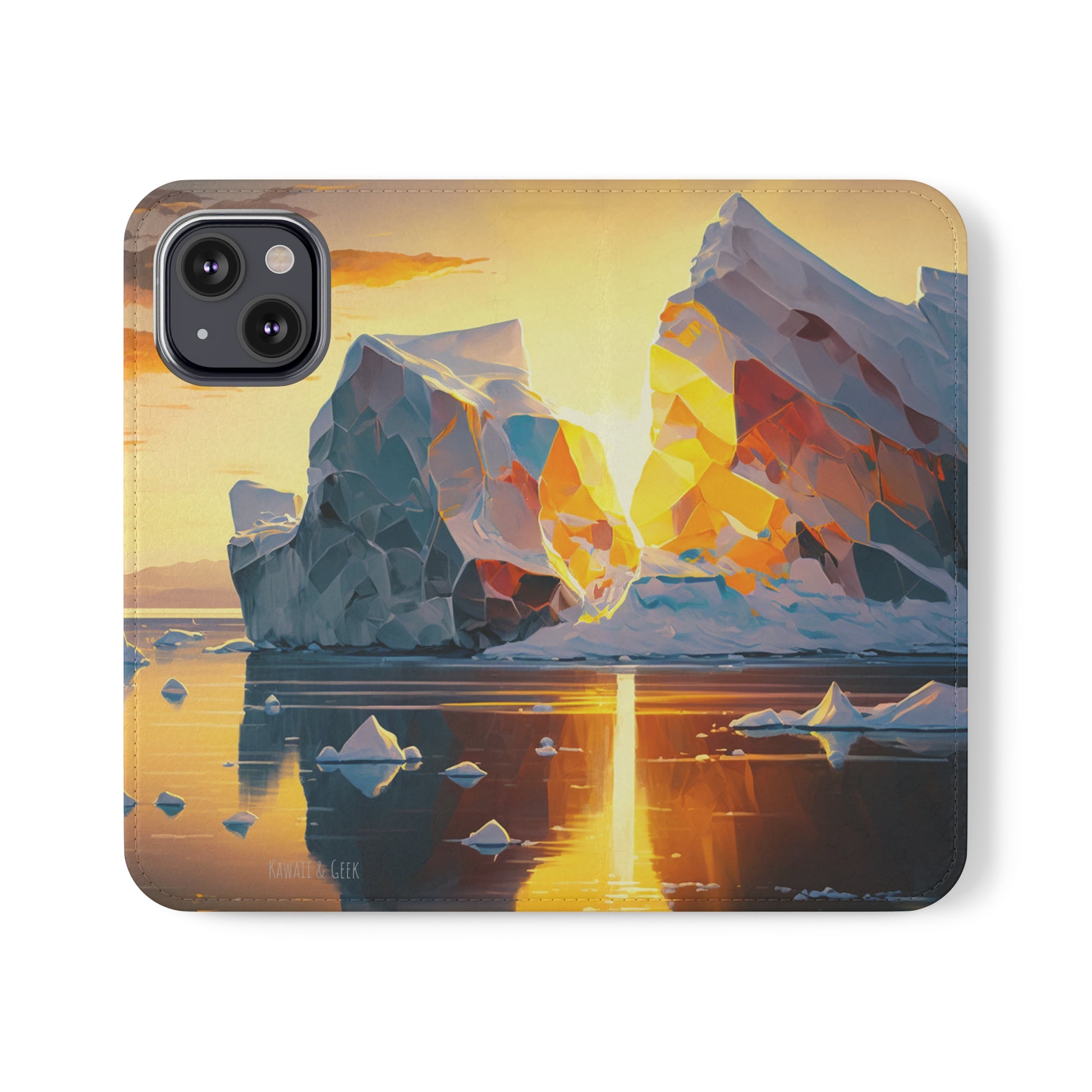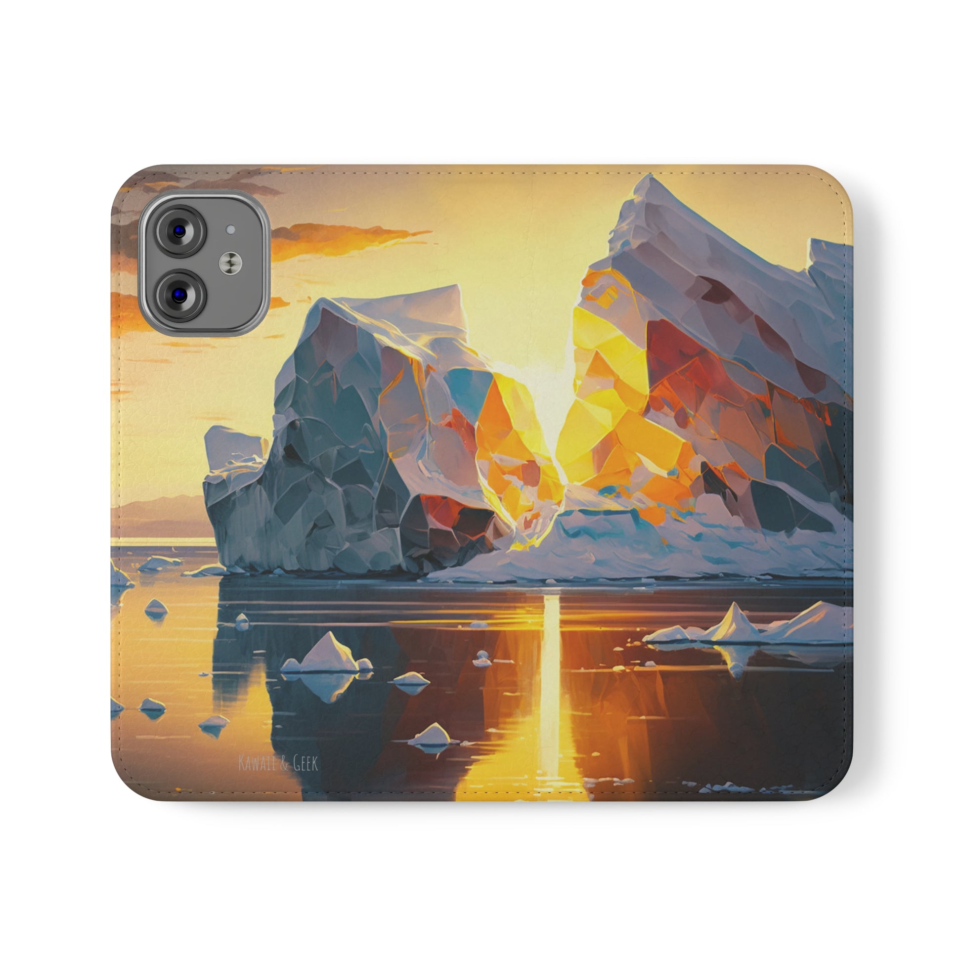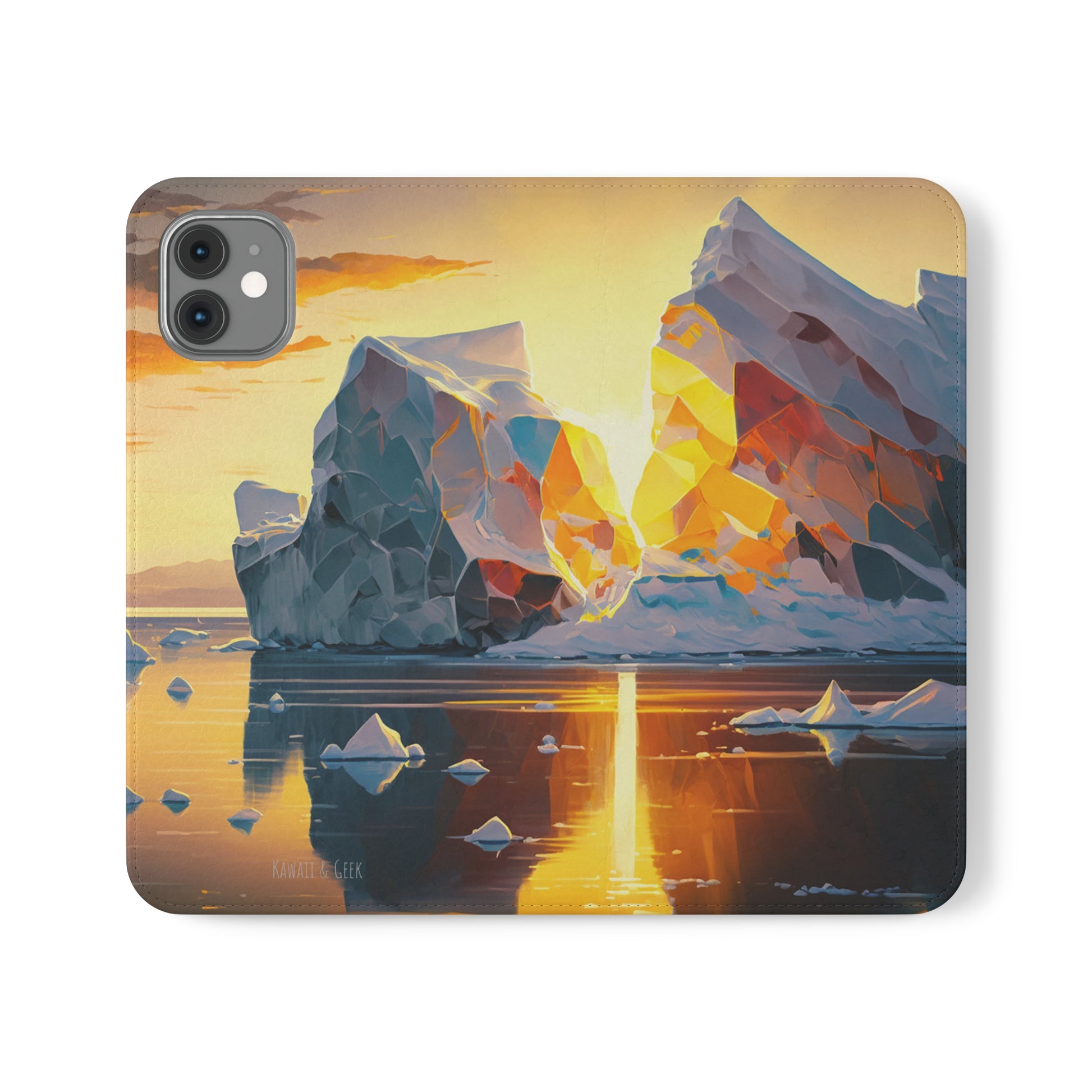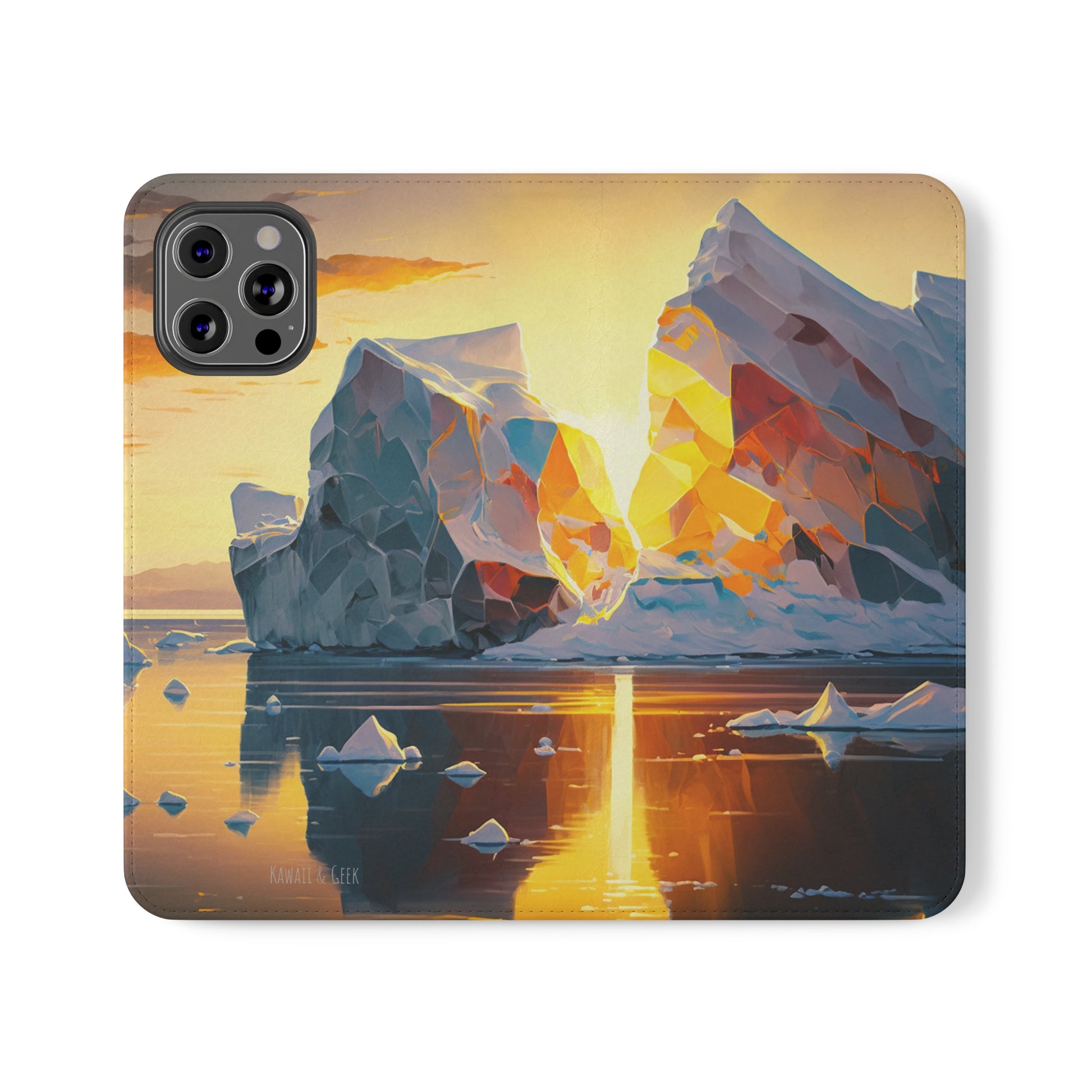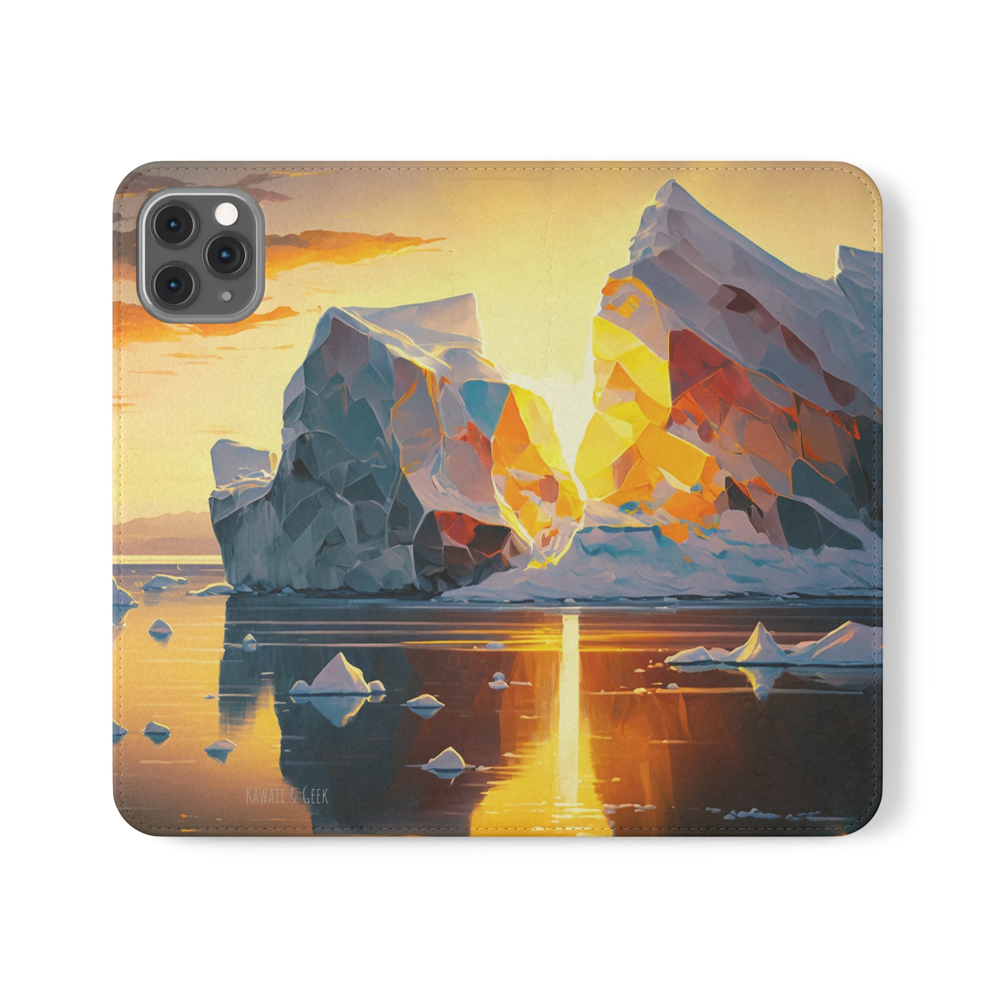 Keywords: Arctic landscape phone case, iceberg at sunset, high-quality print, durable materials, nature-inspired design, reliable protection.