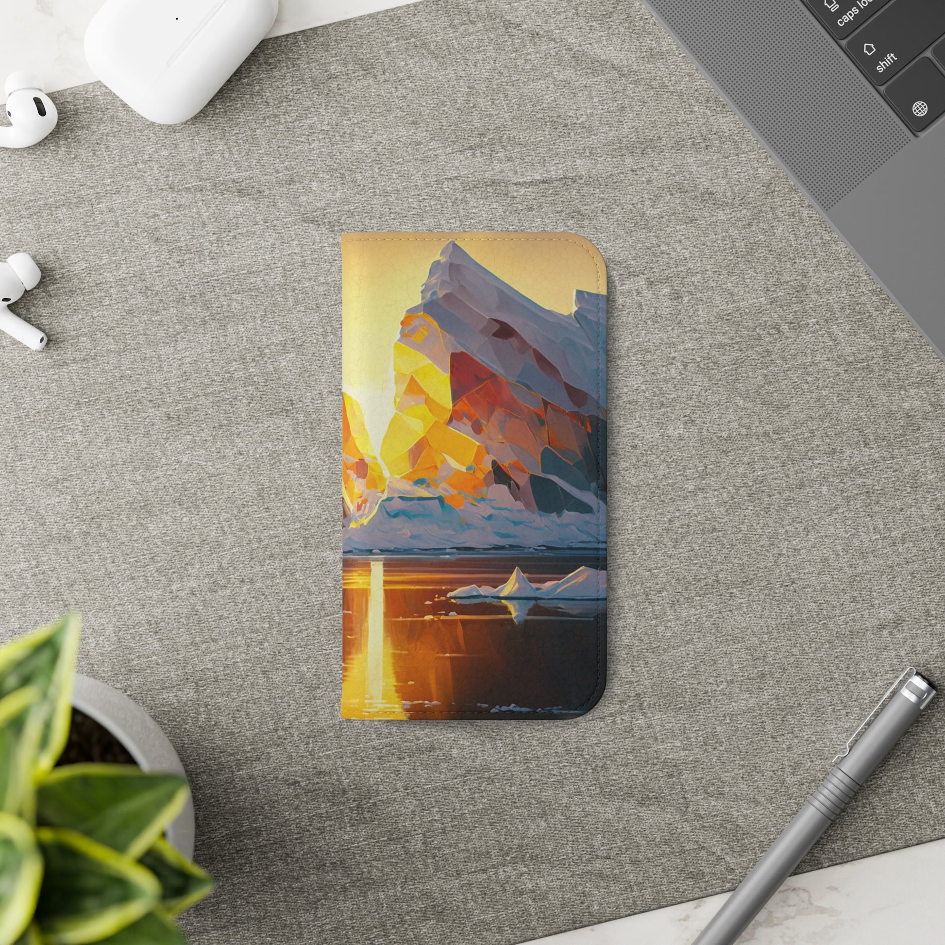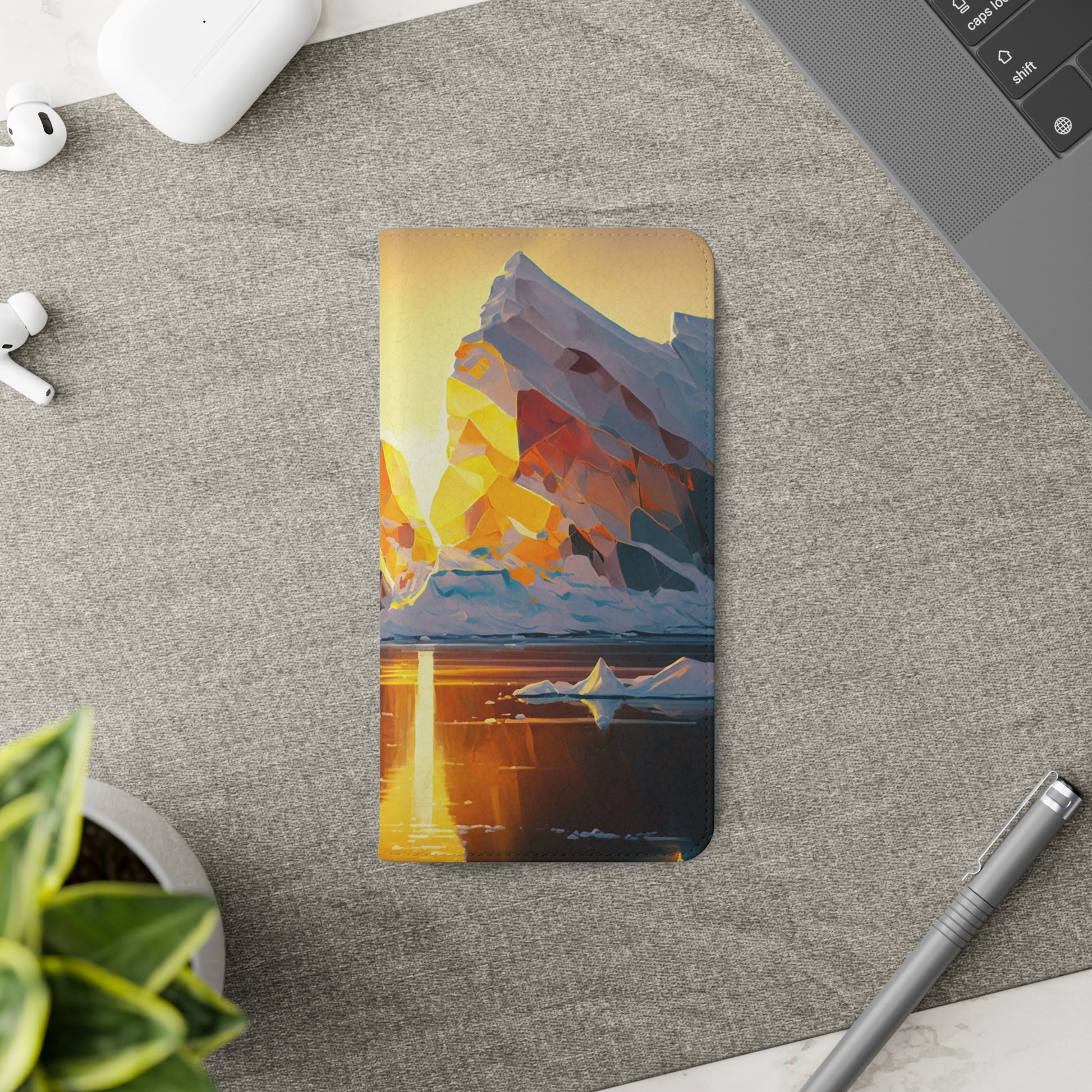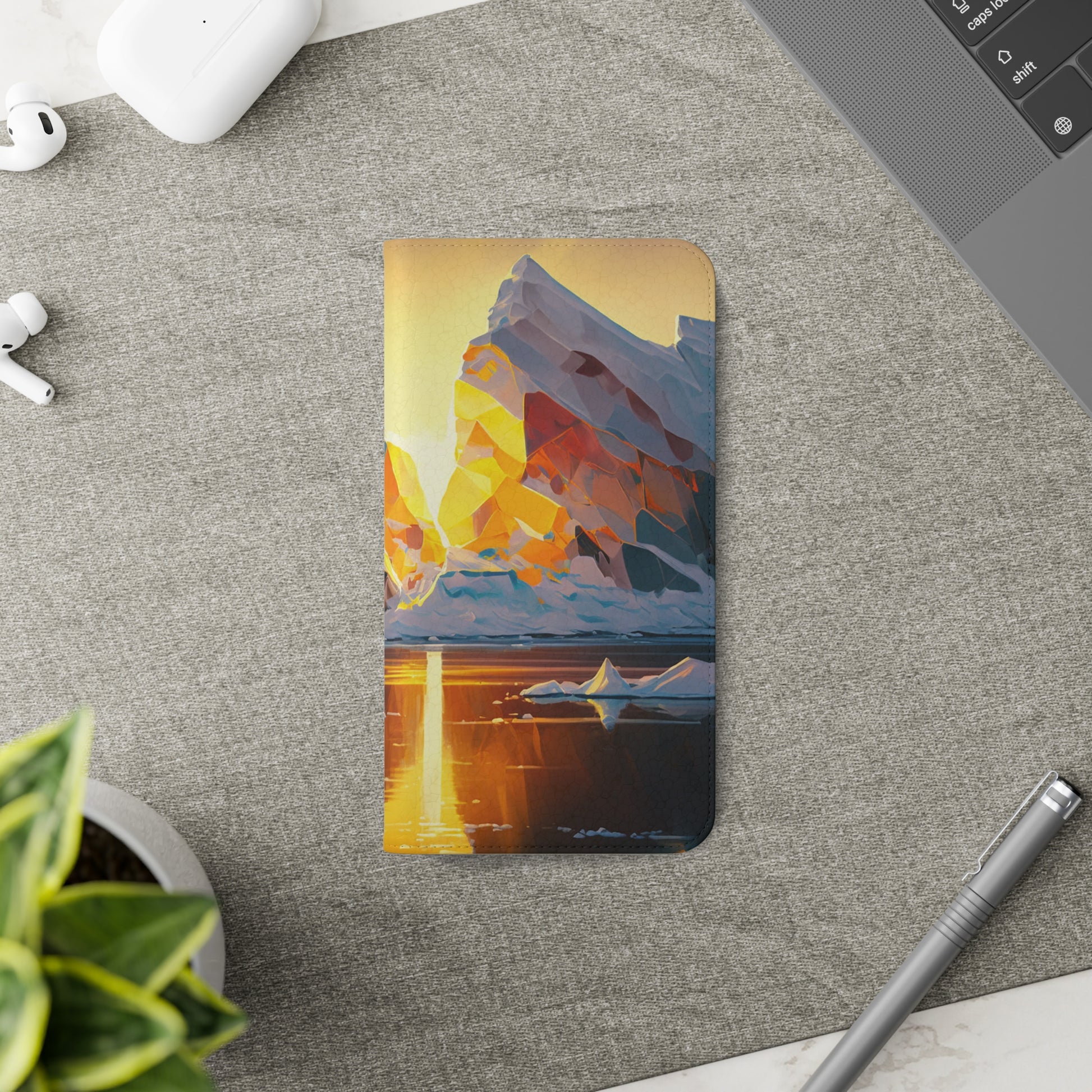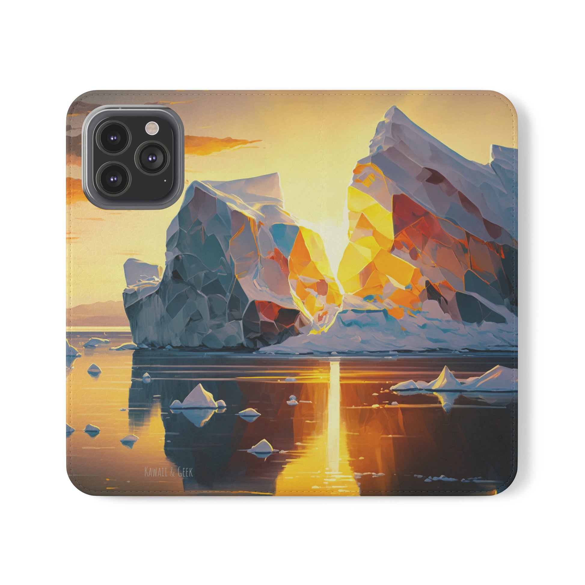 Keywords: Arctic landscape phone case, iceberg at sunset, high-quality print, durable materials, nature-inspired design, reliable protection.