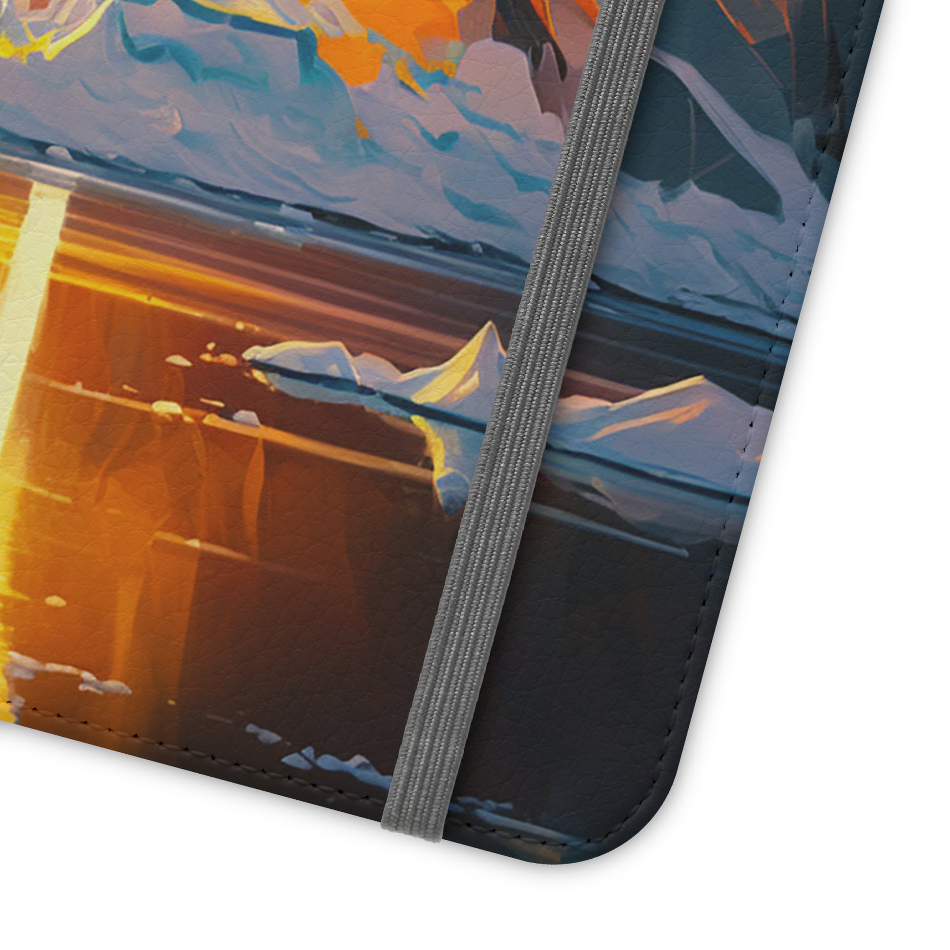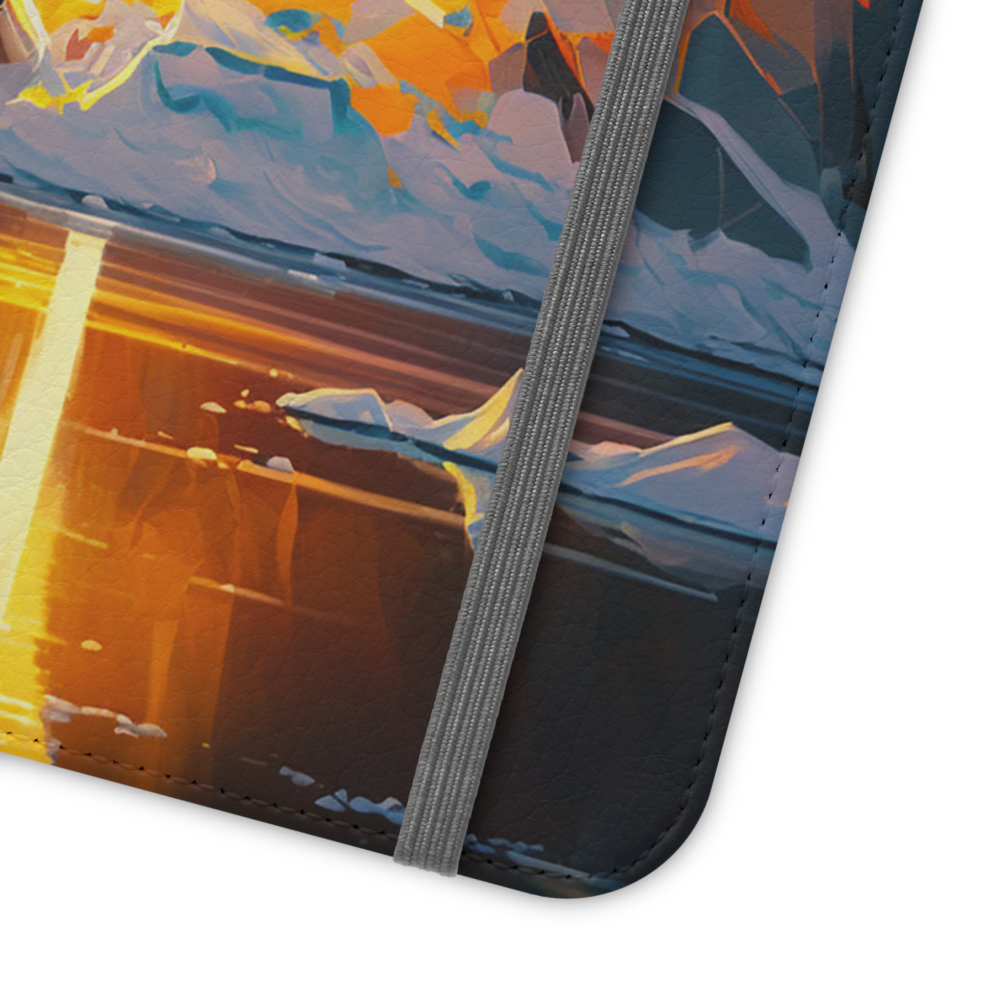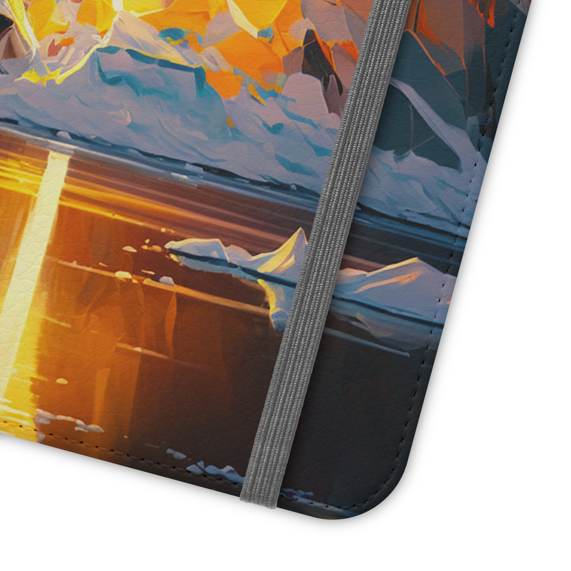 Our flip cases (also known as folio cases) are made from faux leather, that's excellent for printing our original designs in vibrant colors. Each case serves as a protective layer and a phone stand. They feature a flat, elastic fastening to keep them closed and stitched inside pockets to store cards and cash storage easily. The polycarbonate inner shell keeps devices secure during regular wear and tear.