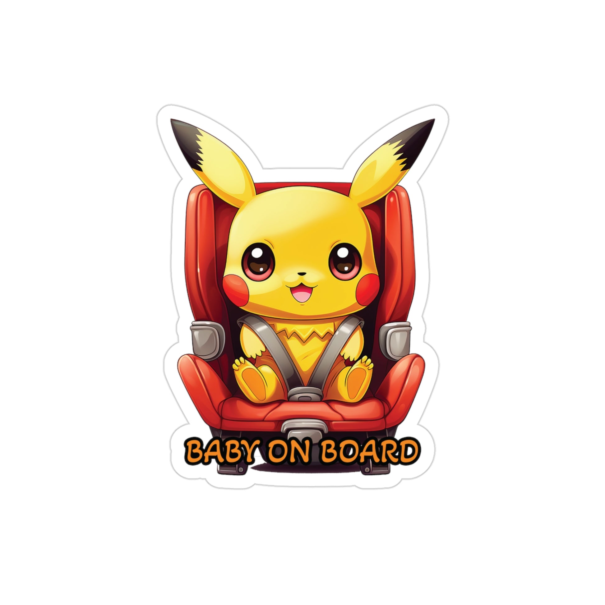 Add a spark of cuteness to your vehicle with this Baby Pikachu "Baby on Board" sticker. Featuring the iconic Pokémon character, this sticker brings a playful and cautionary touch to your journeys. Let everyone know you have a little electric companion onboard in the most charming way. Get your Baby Pikachu "Baby on Board" sticker today and embark on thrilling adventures with your precious cargo!