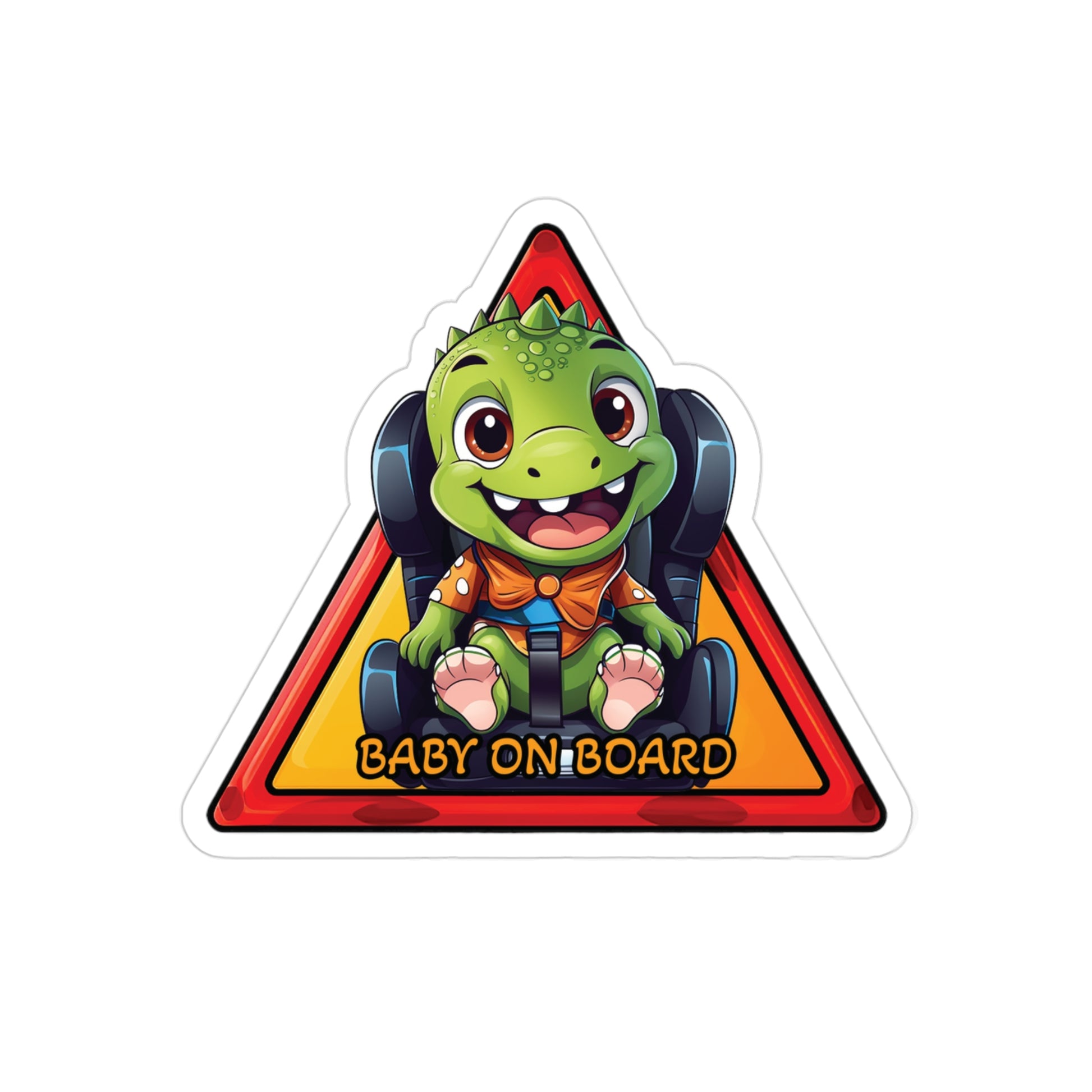 Roam the roads with a tiny dinosaur passenger with this Baby T-Rex "Baby on Board" sticker. Featuring the mighty T-Rex in its cutest form, this sticker adds a touch of prehistoric charm and awareness to your vehicle. Let everyone know you have a little dino enthusiast onboard in the most Jurassic way. Get your Baby T-Rex "Baby on Board" sticker today and make every drive a dinosaur adventure!