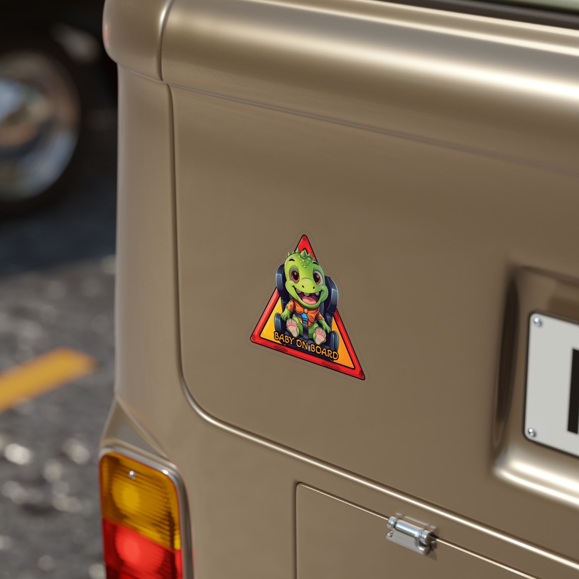 Keywords: Baby T-Rex, "Baby on Board" sticker, tiny dino passenger, prehistoric charm, vehicle decal, dino enthusiast, Jurassic design, awareness sign.