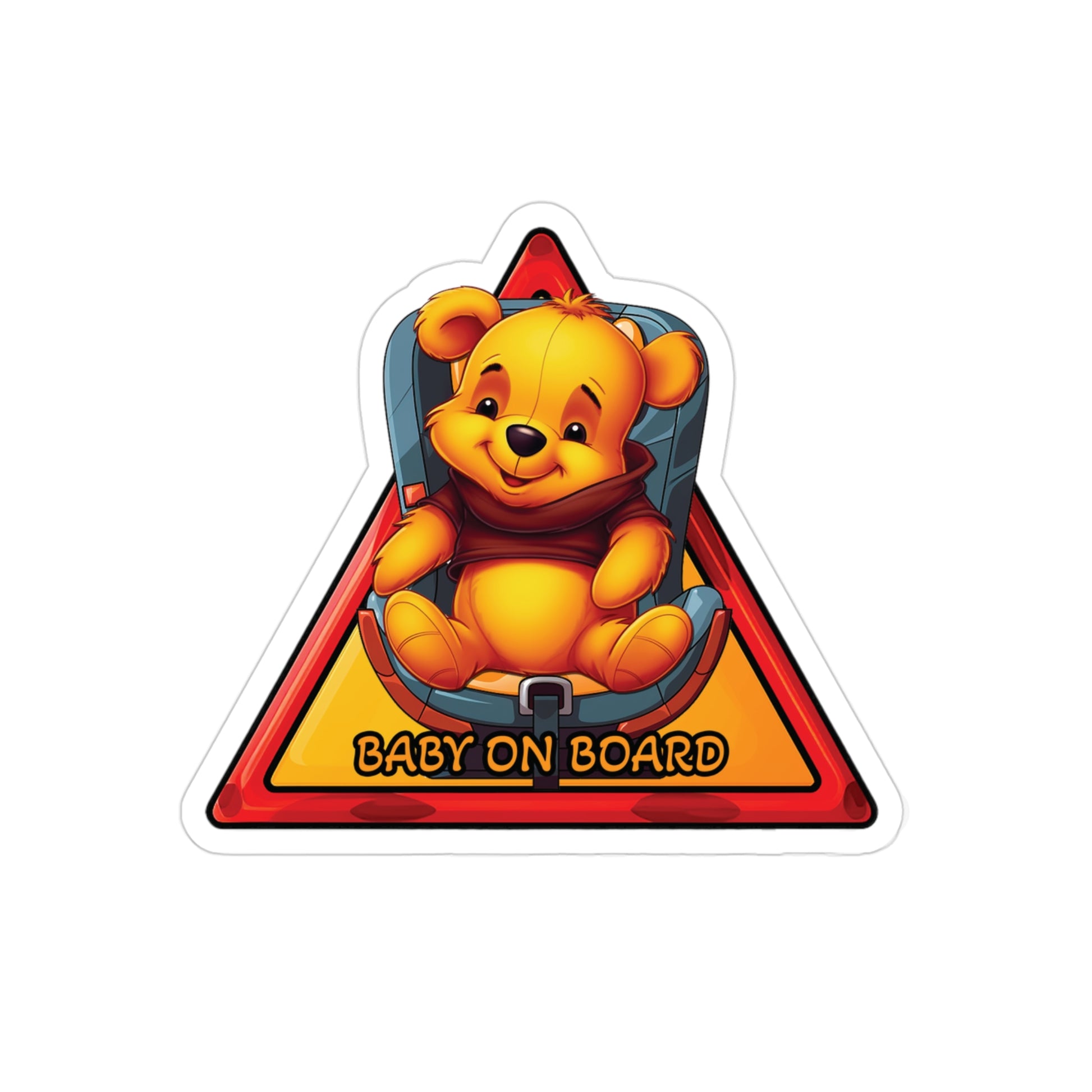 Keywords: Baby Winnie, "Baby on Board" sticker, delightful adventures, beloved character, vehicle decal, little explorer, Winnie the Pooh, awareness sign.,