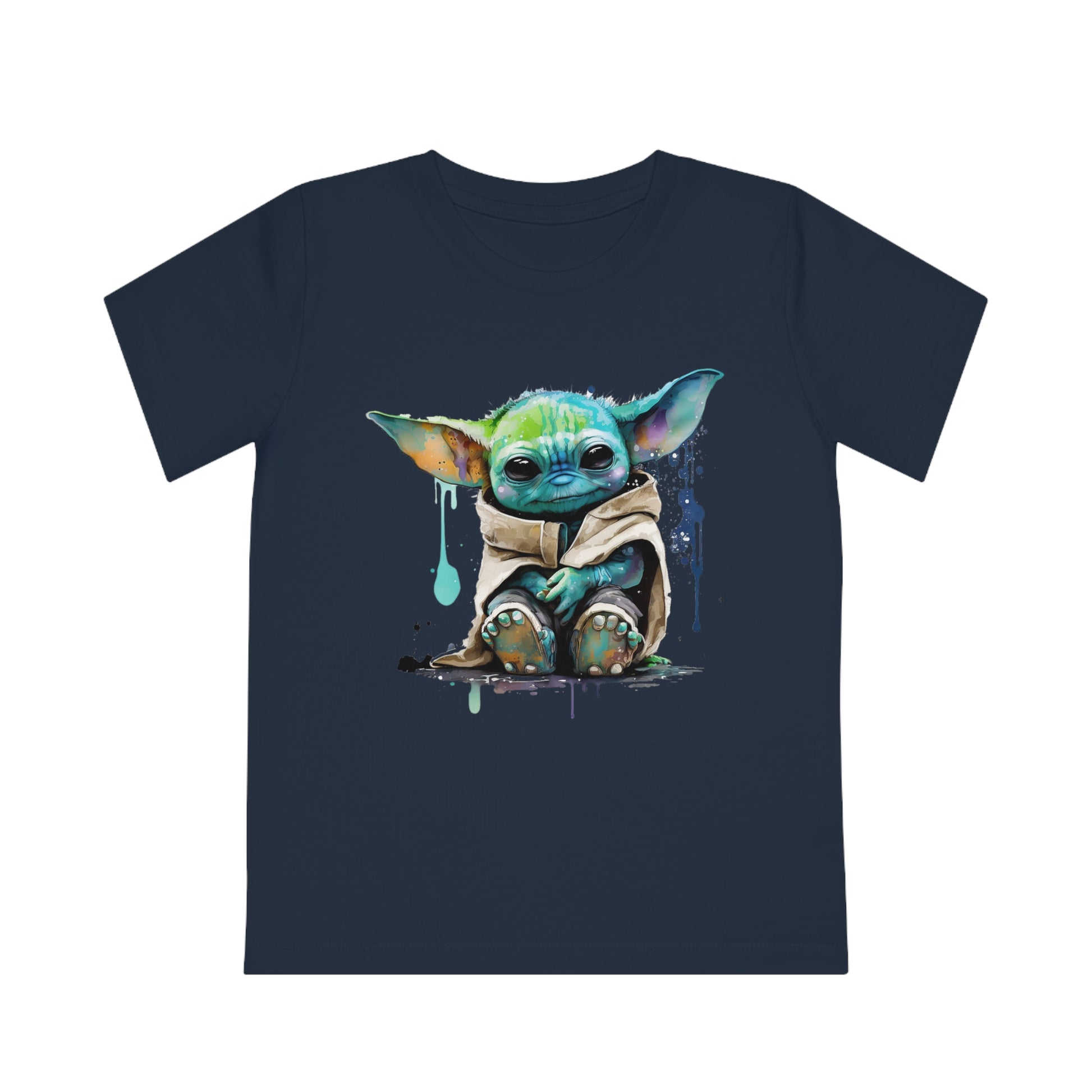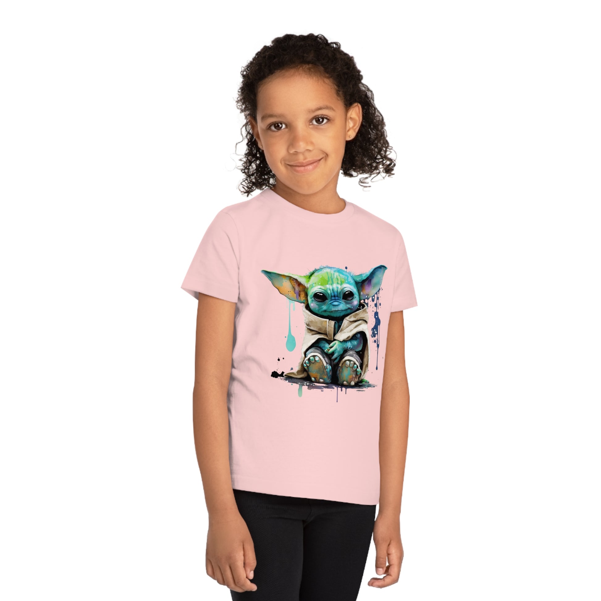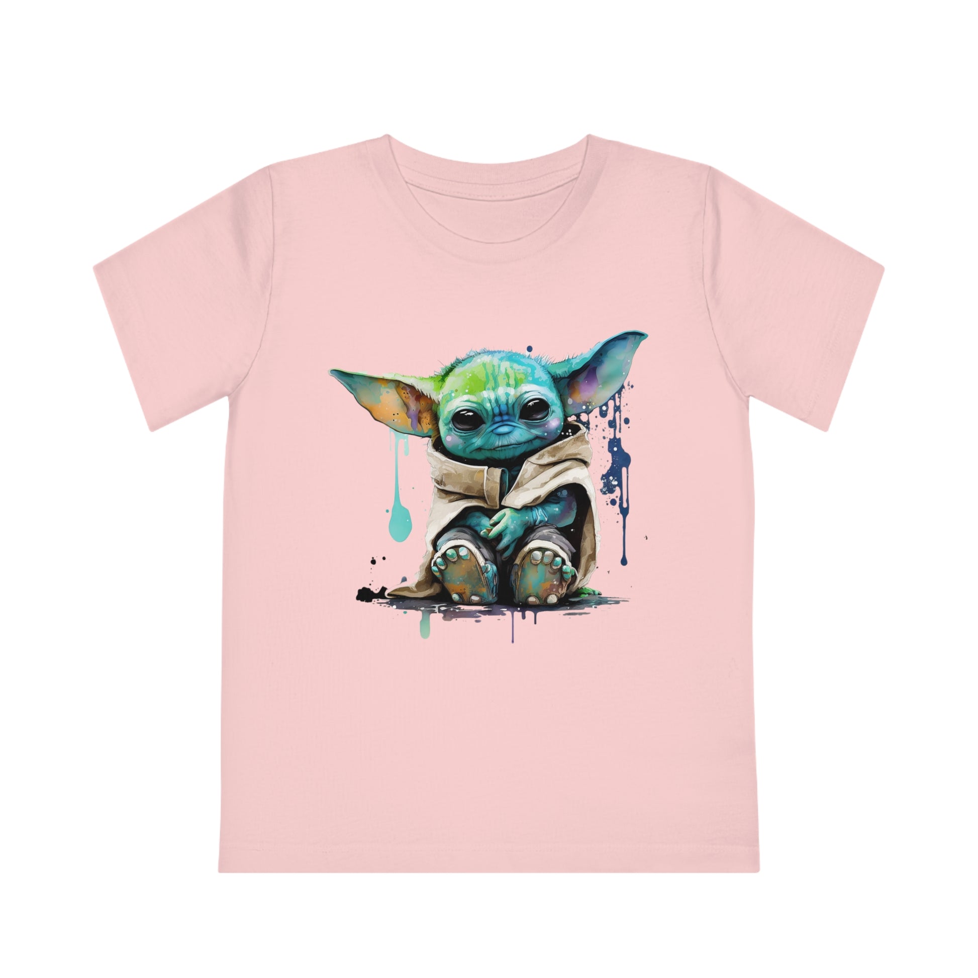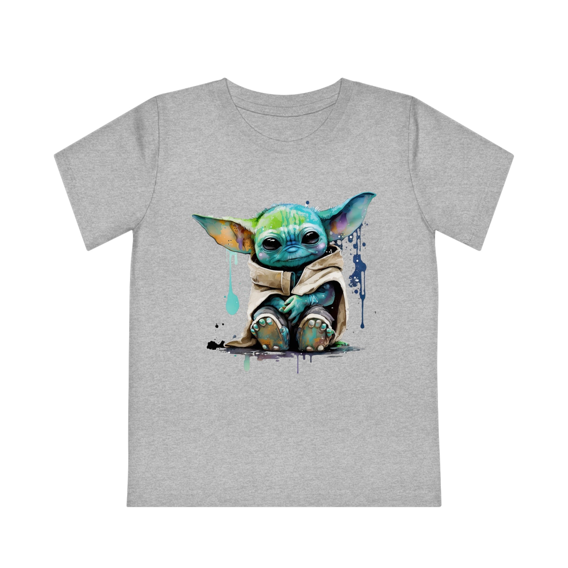 Keywords: Baby Yoda kids t-shirt, Grogu eco-friendly fashion, watercolor style, sustainable materials, high-quality design, Star Wars-inspired, cute and comfortable.