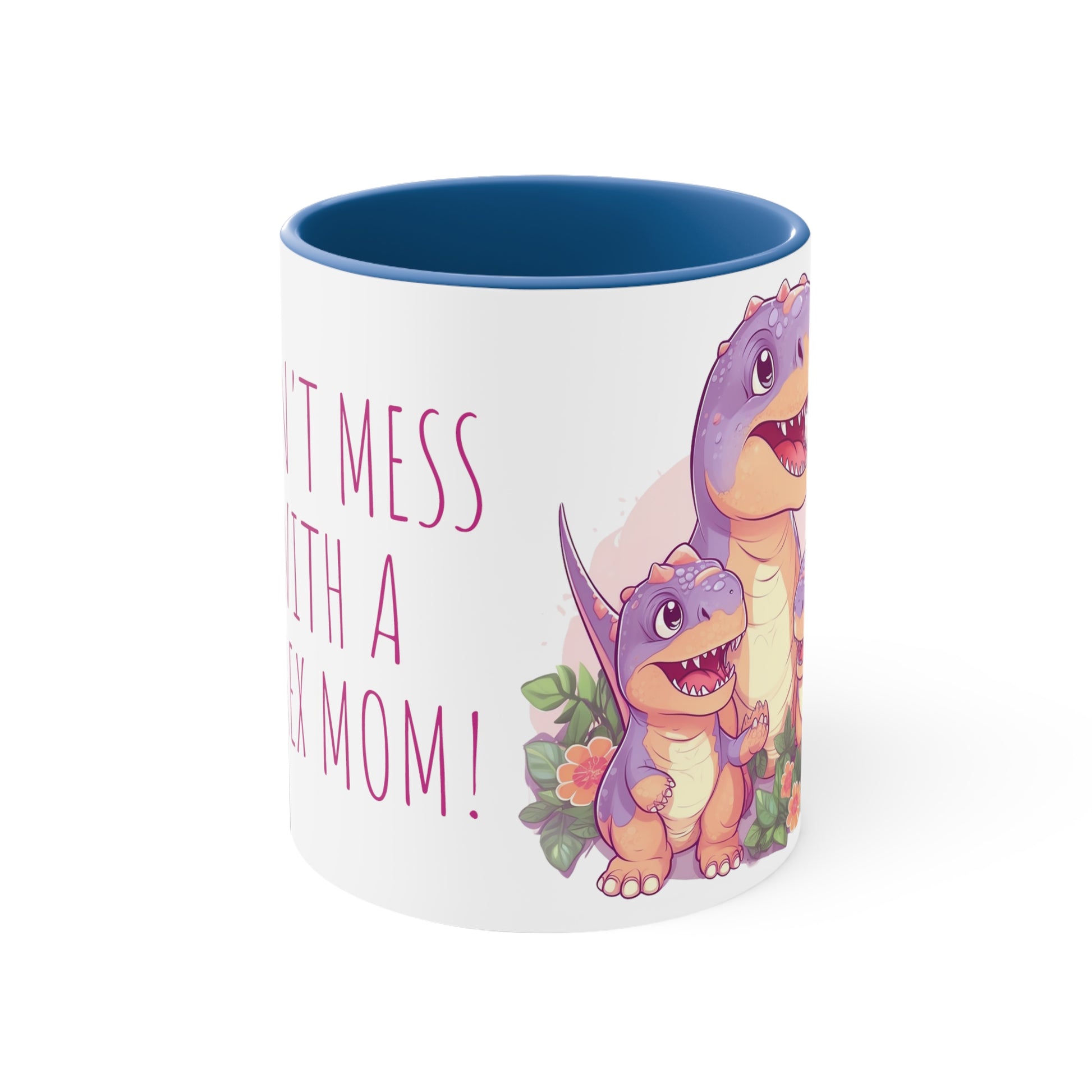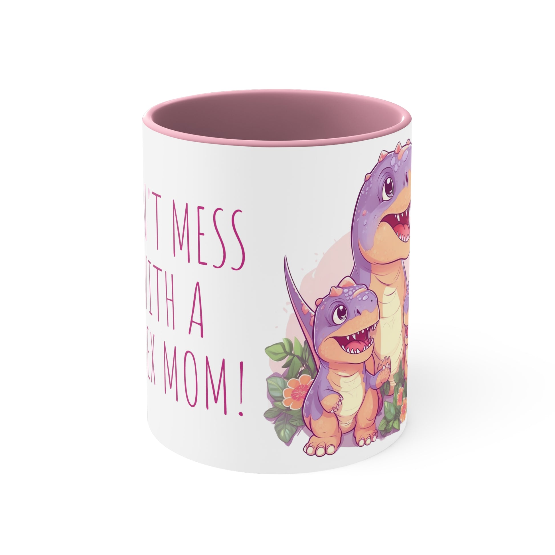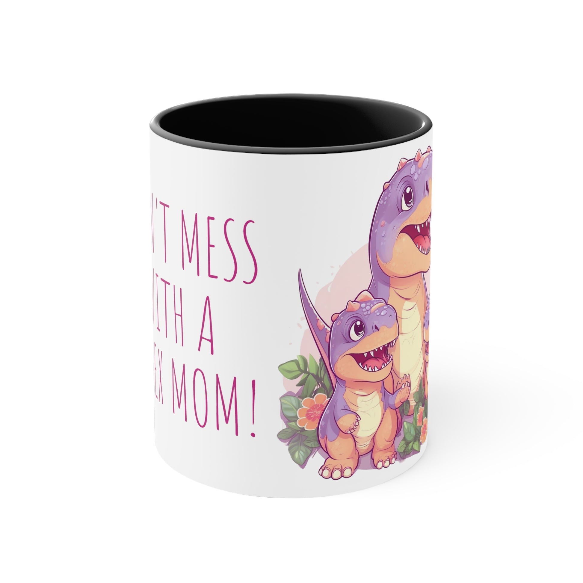 Keywords: Mom T-Rex mug, dinosaur family, prehistoric motherhood, fierce and protective, don't mess with mom, T-Rex mom love, unique gift for moms, dinosaur enthusiast, collectible dinosaur item, mighty and nurturing, ancient family bond, jurassic-themed merchandise, motherly strength, prehistoric love.