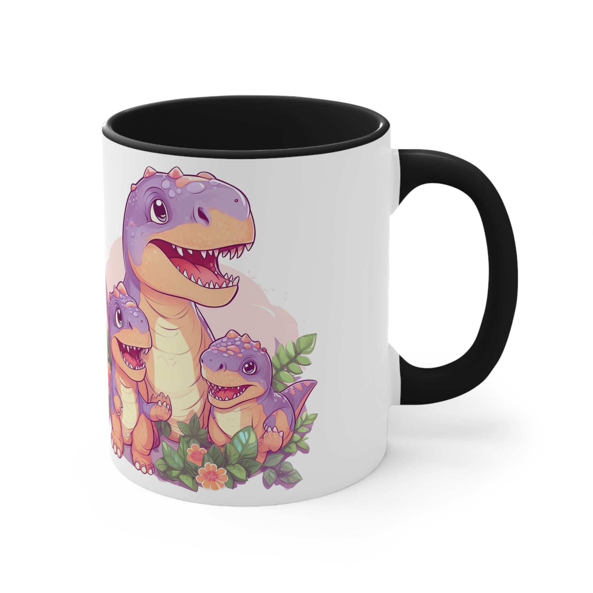 This 11 oz bicolor mug features a fierce and protective Mom T-Rex with her adorable little ones. With the phrase "Don't Mess with a T-Rex Mom!" it celebrates the strength and love of mothers in the prehistoric world. The design captures the mighty presence of the T-Rex while showcasing the nurturing side of this ancient creature. Whether you're a dinosaur enthusiast or looking for a unique gift for a mom, this mug combines the power and tenderness of motherhood.