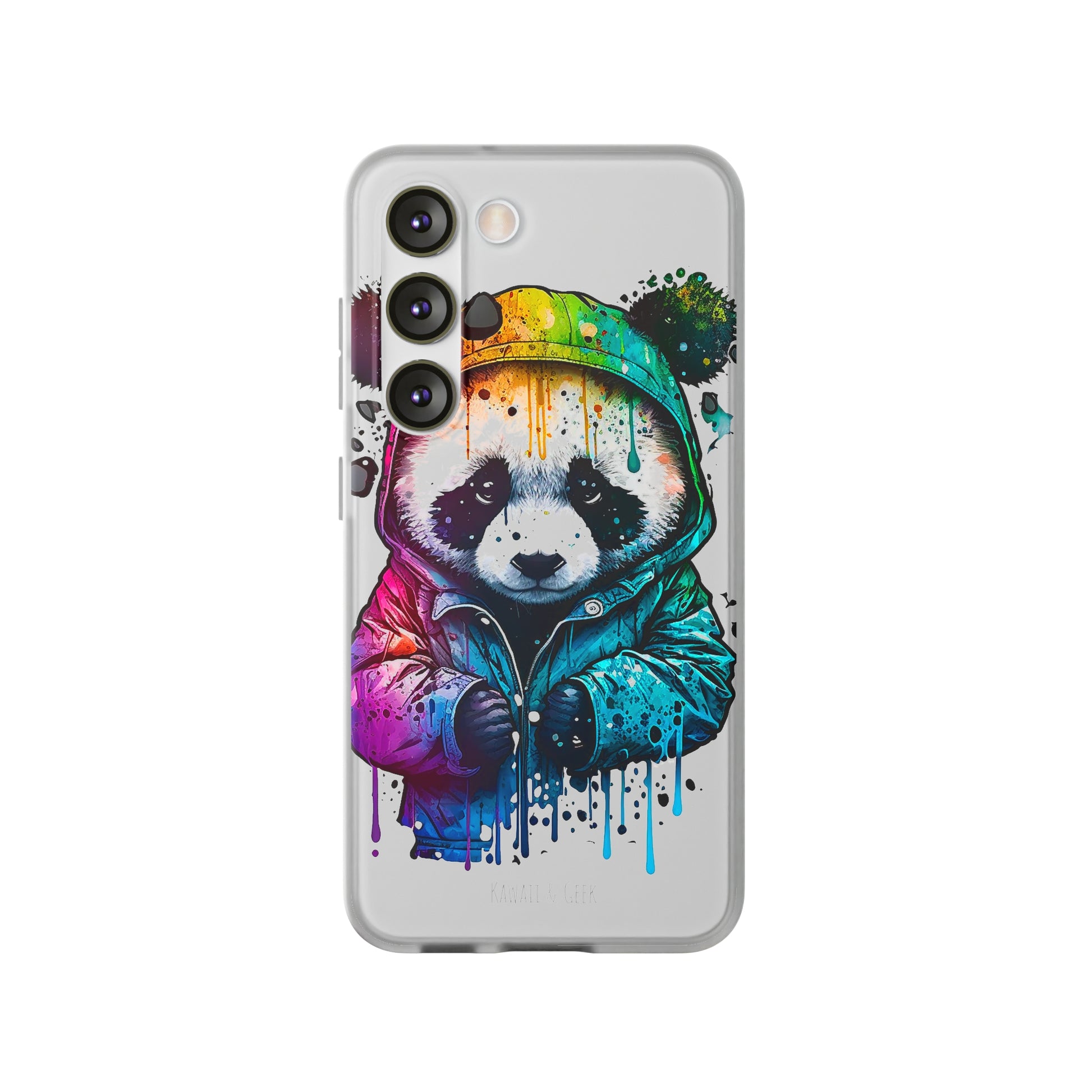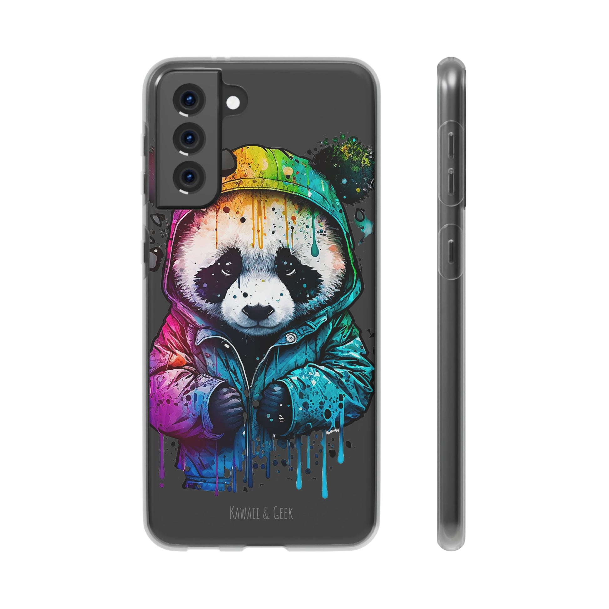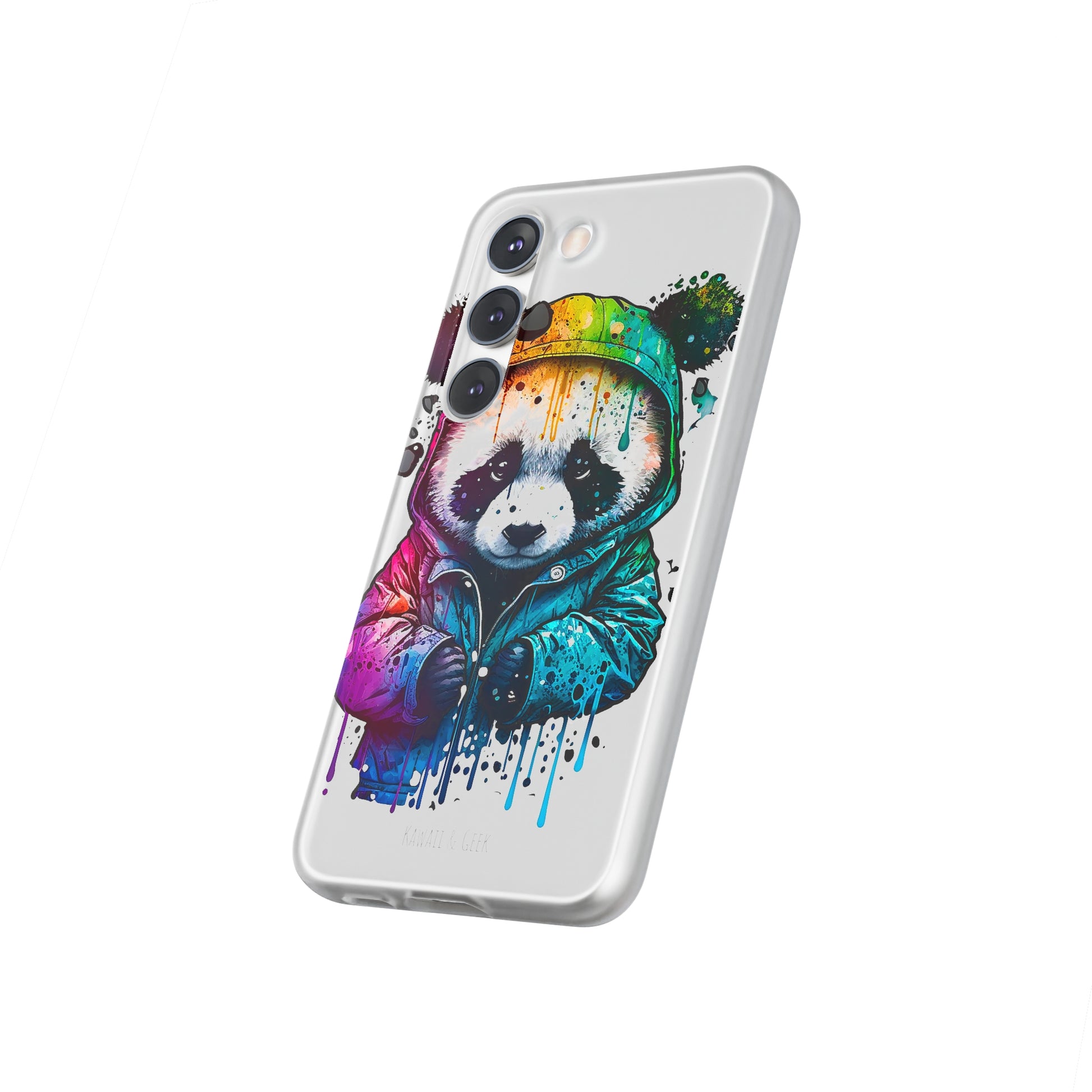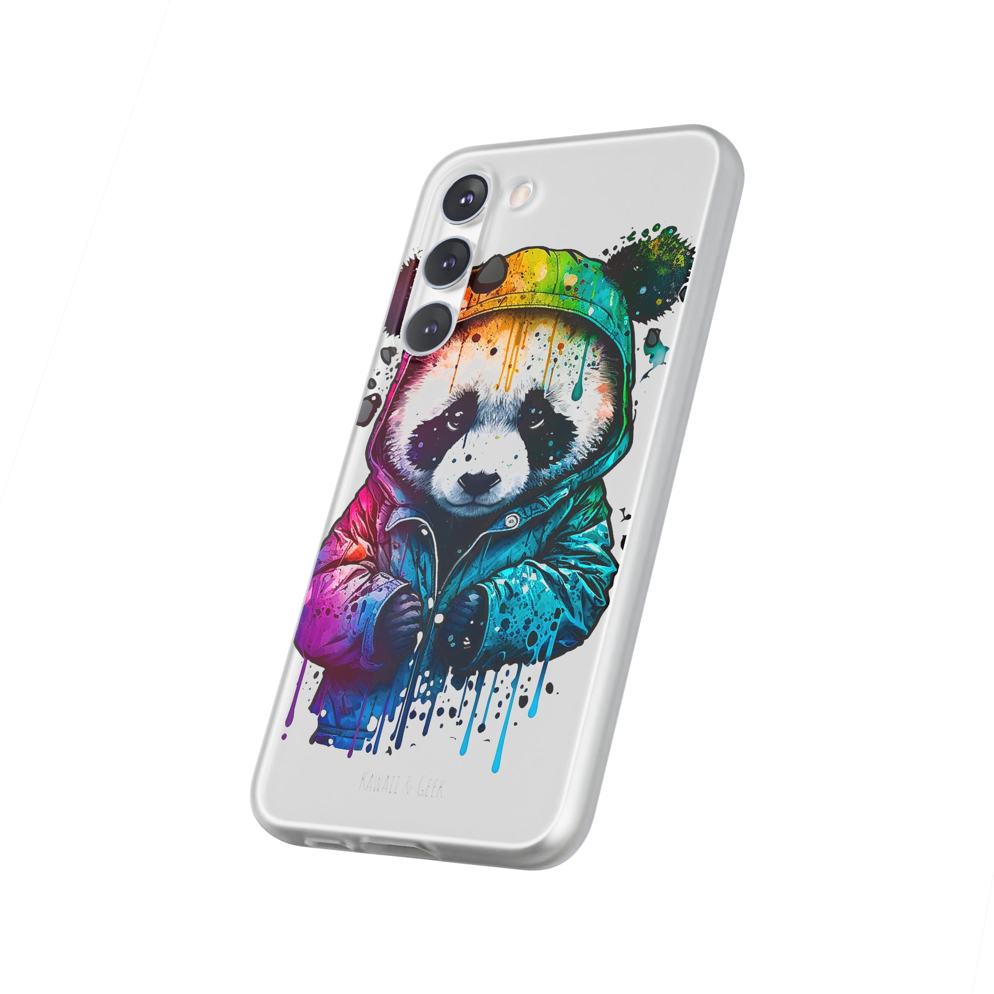 This smartphone case features a cute panda wearing a hoodie in a pop-art style design. The high-quality and detailed design adds a unique and adorable touch to this case, making it stand out from other smartphone cases on the market. This case is perfect for anyone who loves pandas and wants to add some unique and adorable style to their phone while also protecting it from scratches and drops.