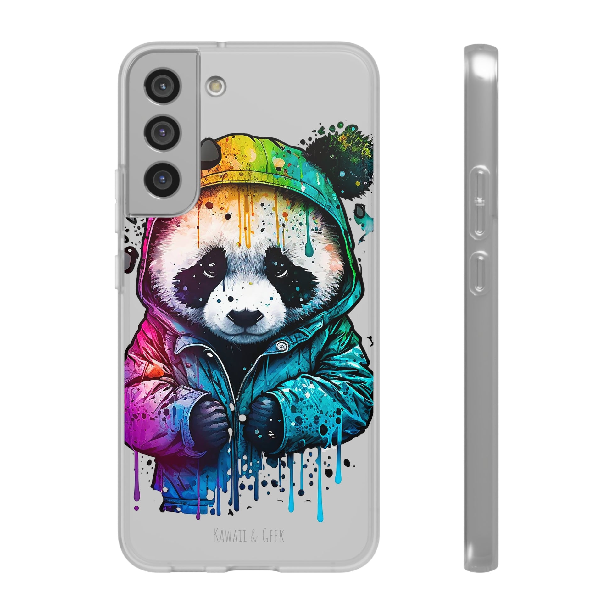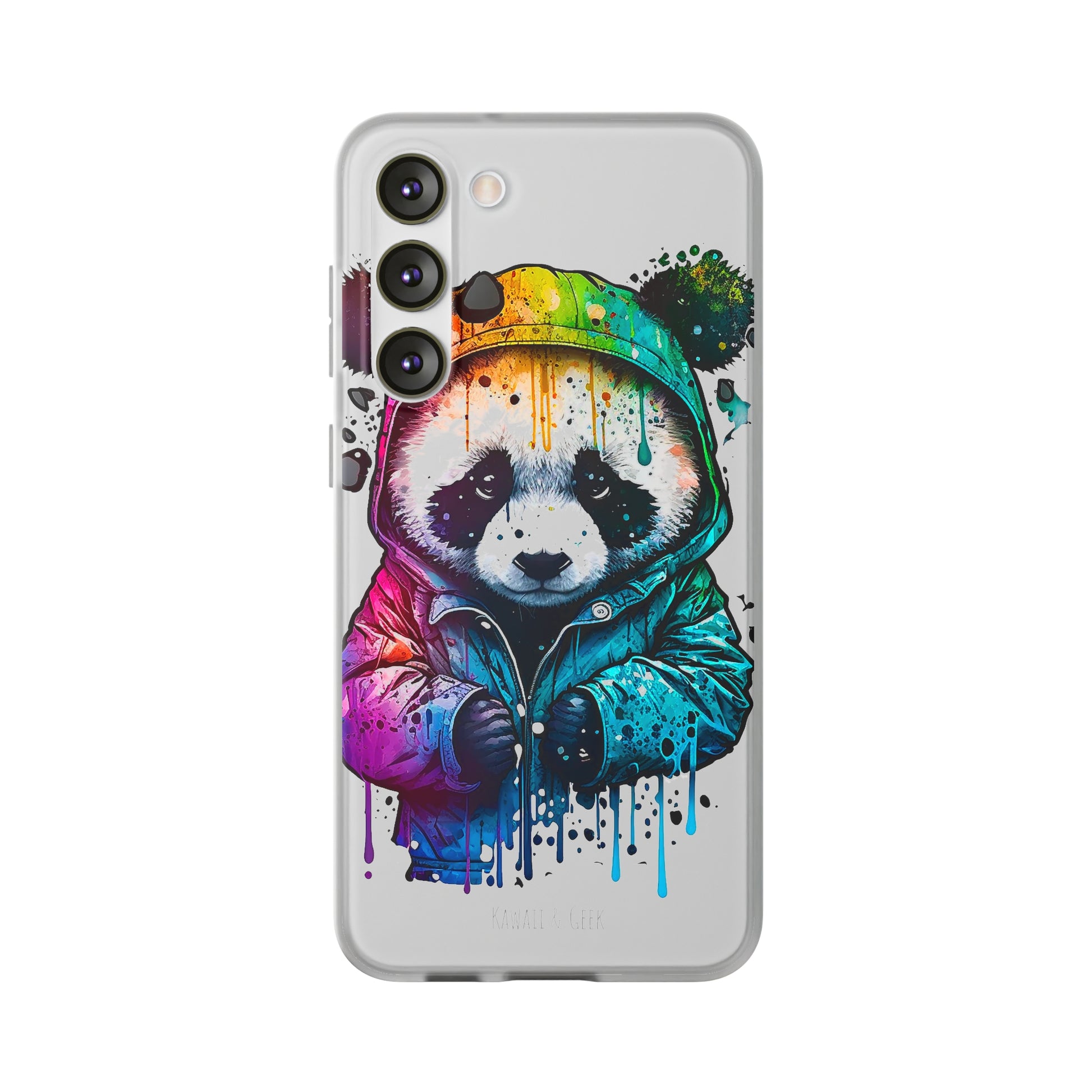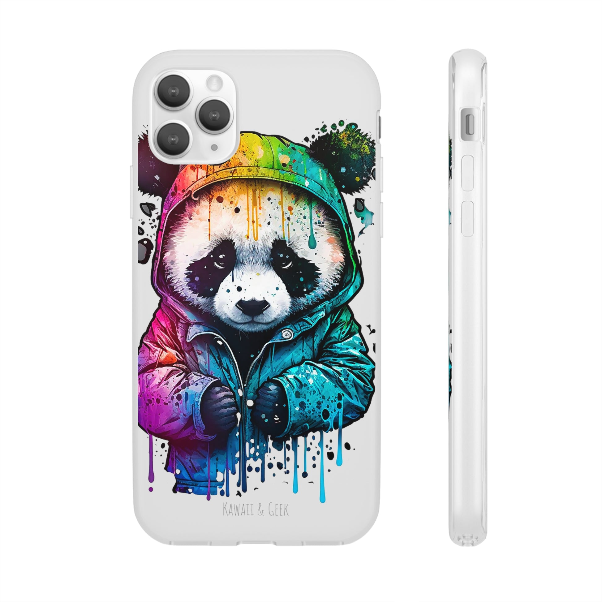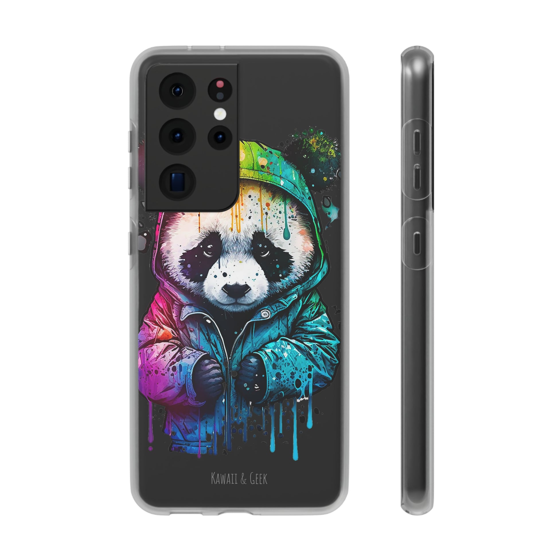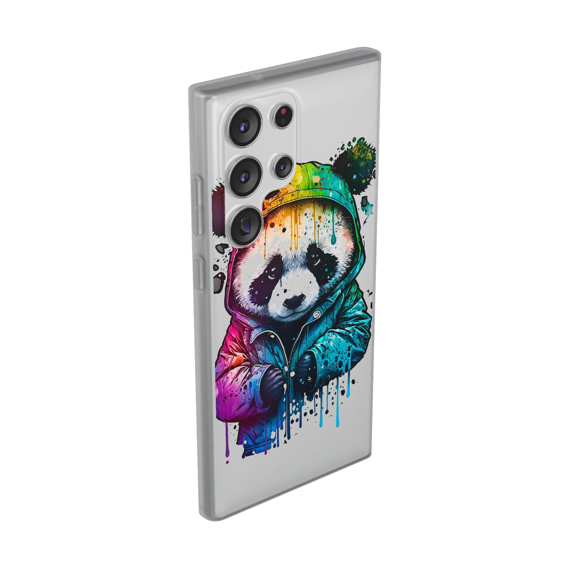 This smartphone case features a cute panda wearing a hoodie in a pop-art style design. The high-quality and detailed design adds a unique and adorable touch to this case, making it stand out from other smartphone cases on the market. This case is perfect for anyone who loves pandas and wants to add some unique and adorable style to their phone while also protecting it from scratches and drops.