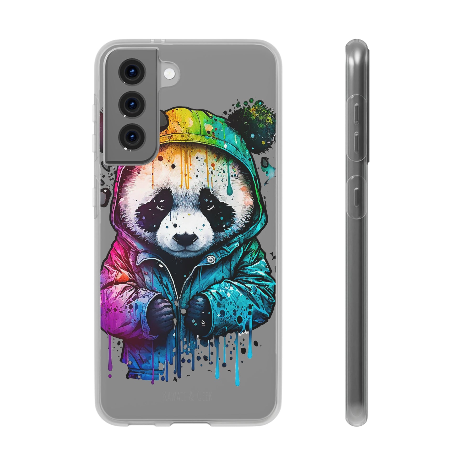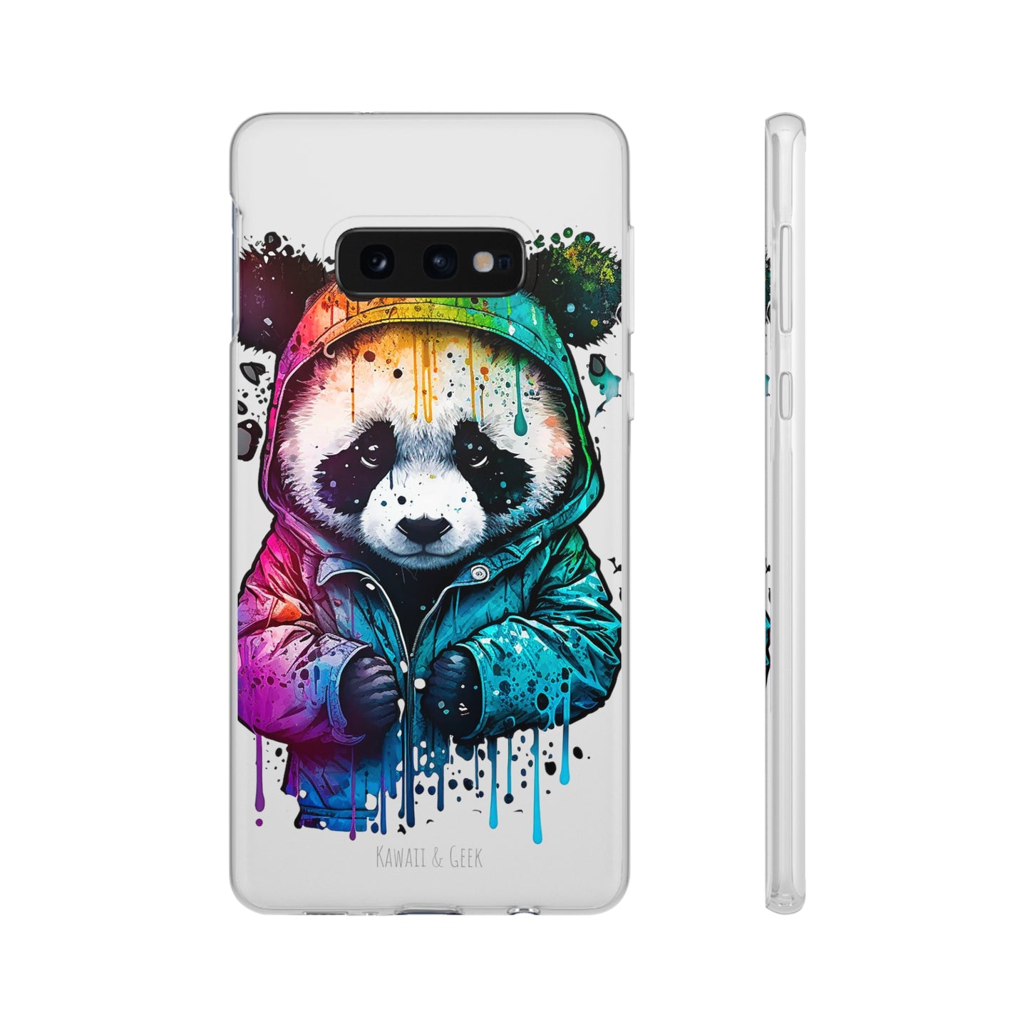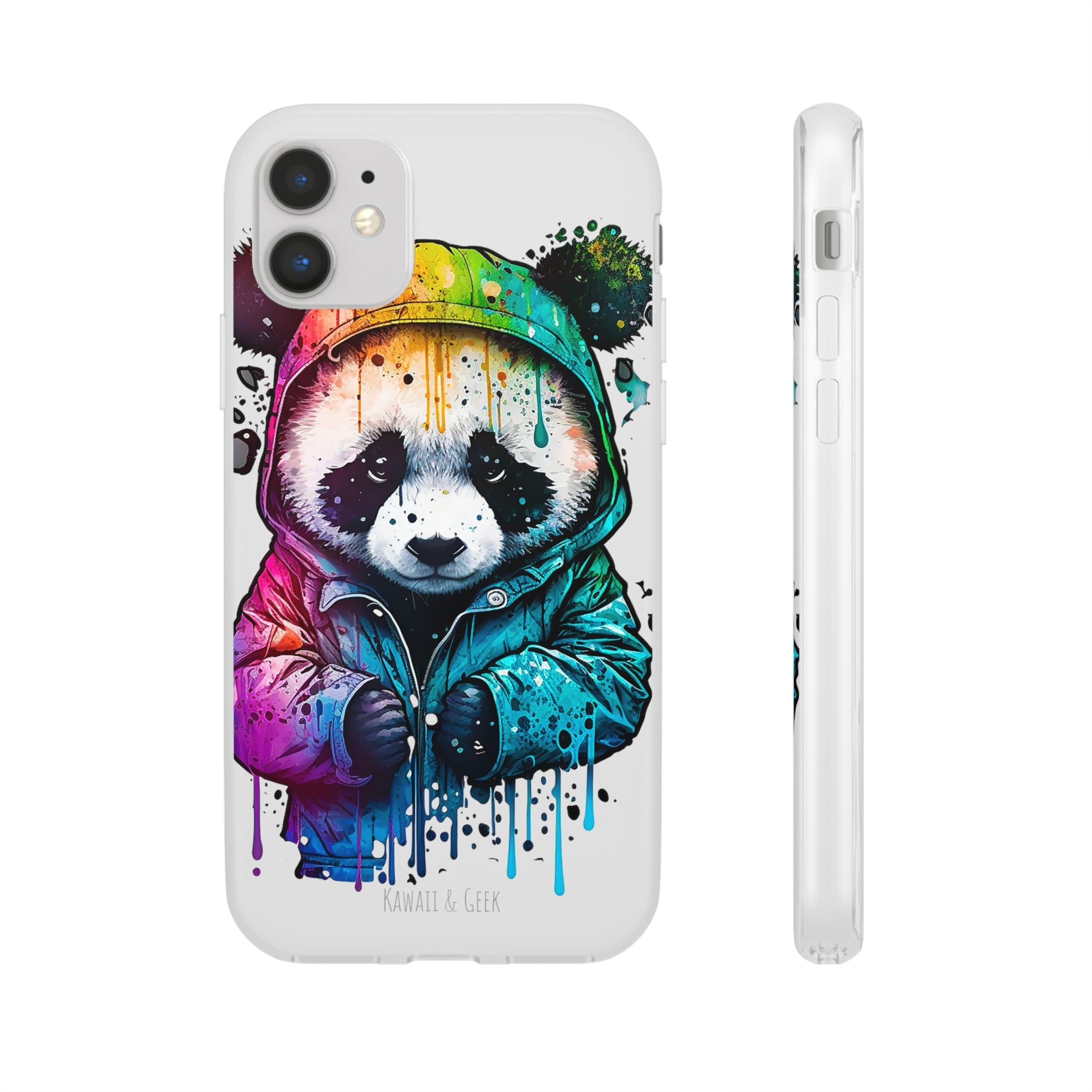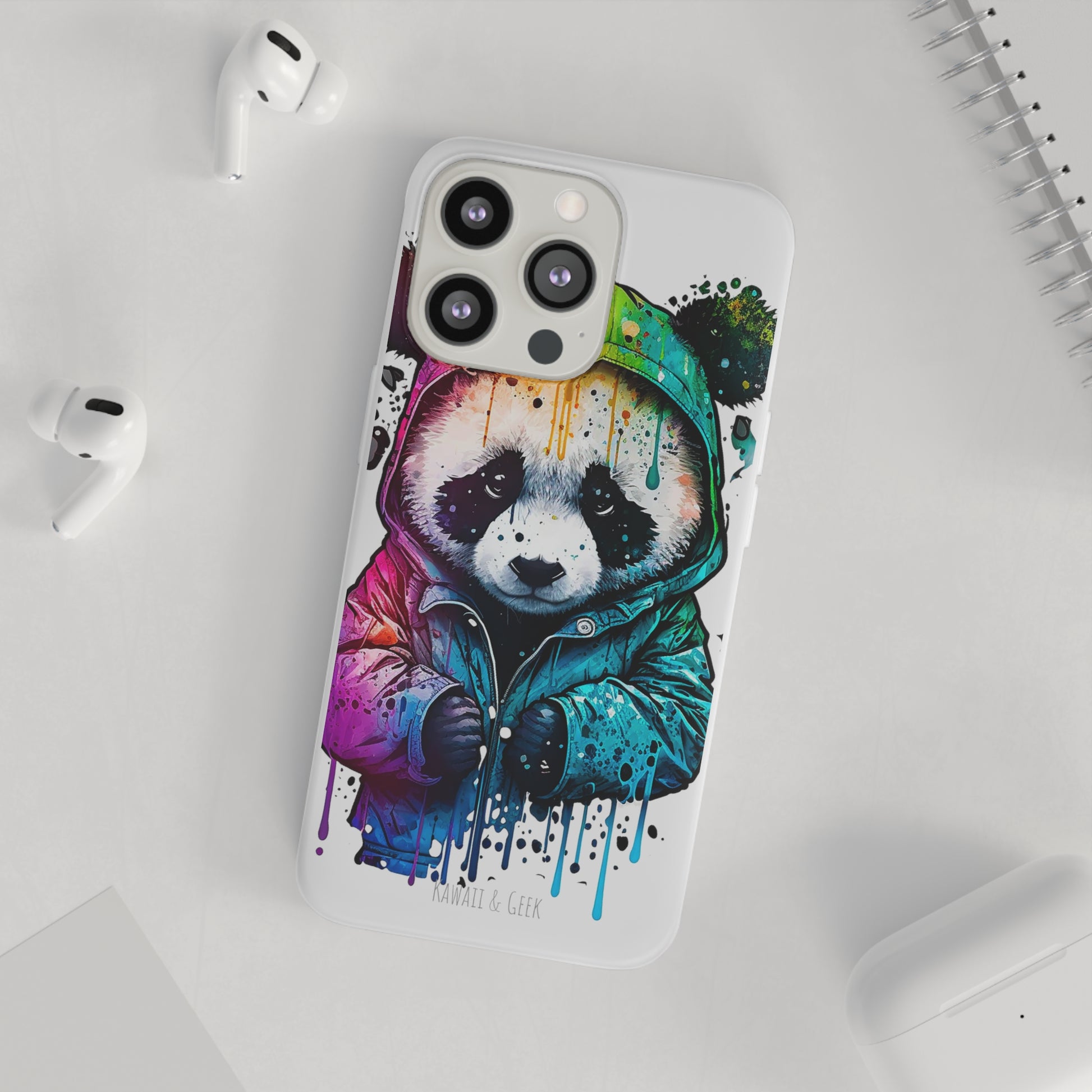 This smartphone case features a cute panda wearing a hoodie in a pop-art style design. The high-quality and detailed design adds a unique and adorable touch to this case, making it stand out from other smartphone cases on the market. This case is perfect for anyone who loves pandas and wants to add some unique and adorable style to their phone while also protecting it from scratches and drops.