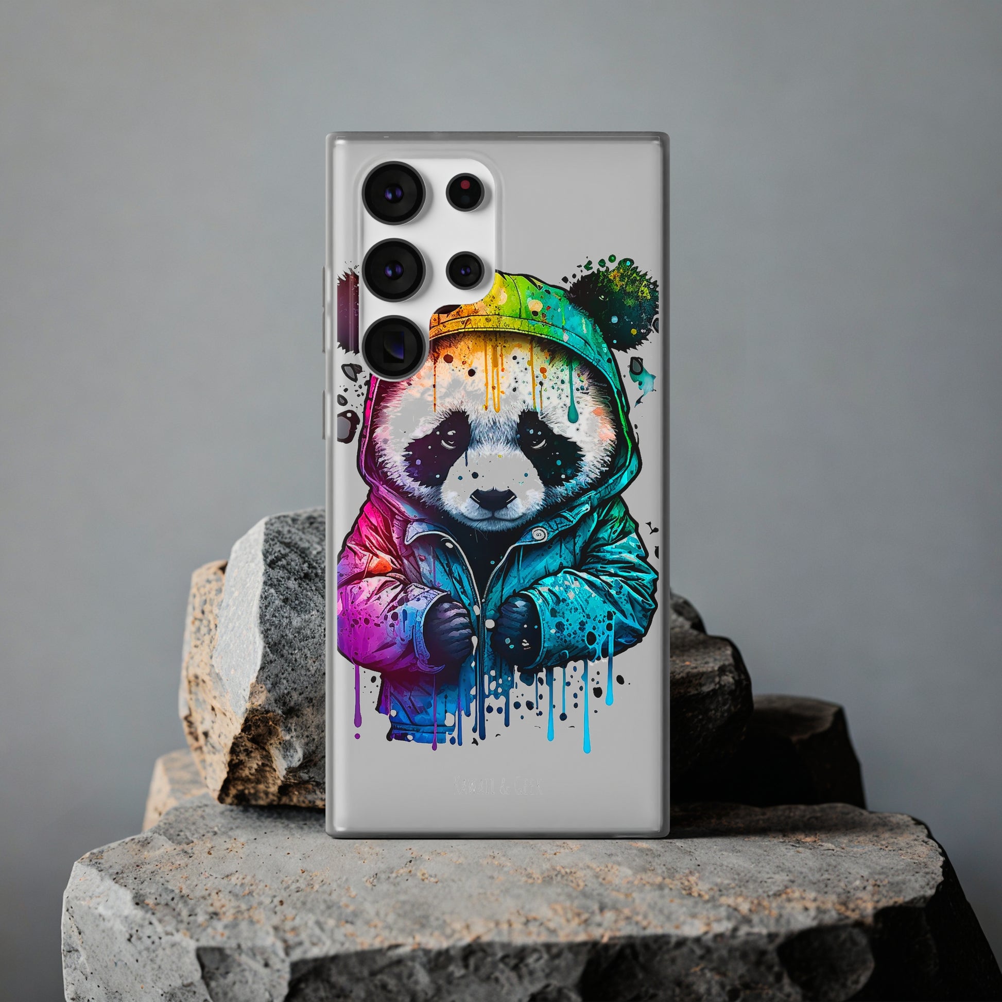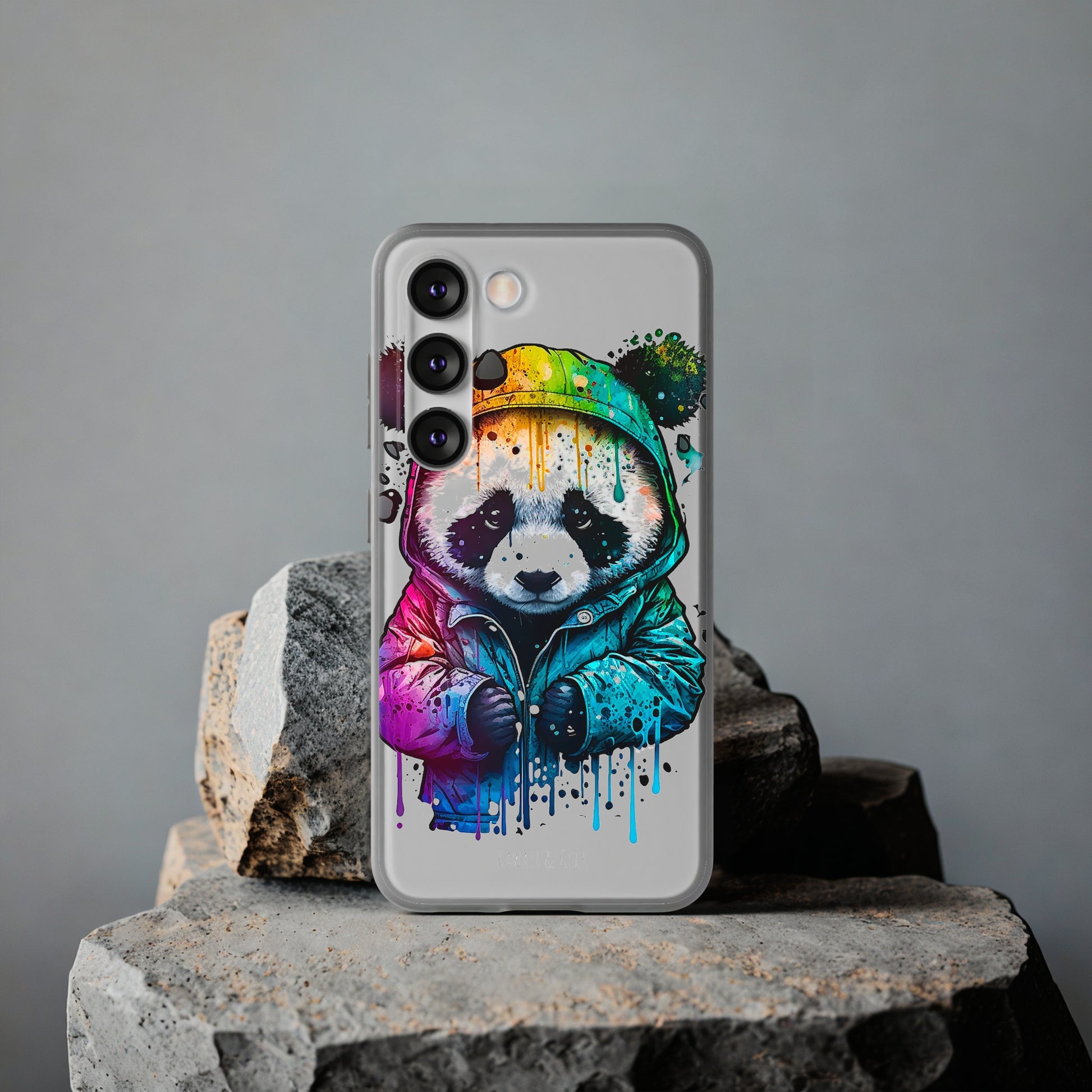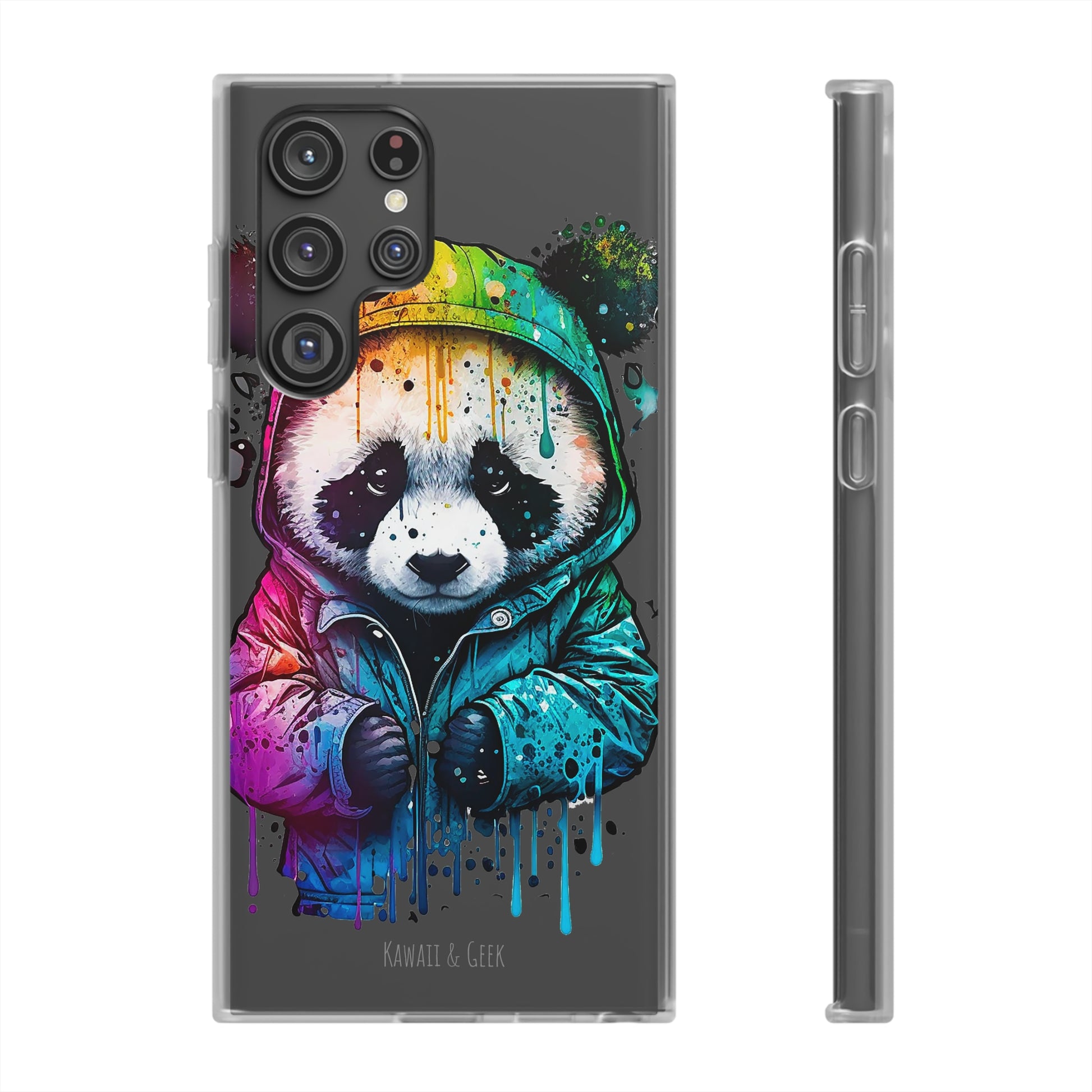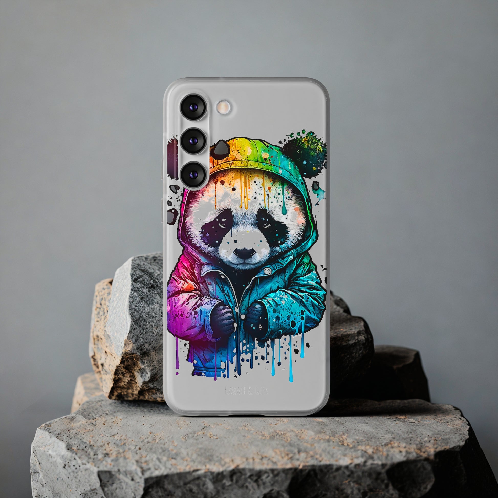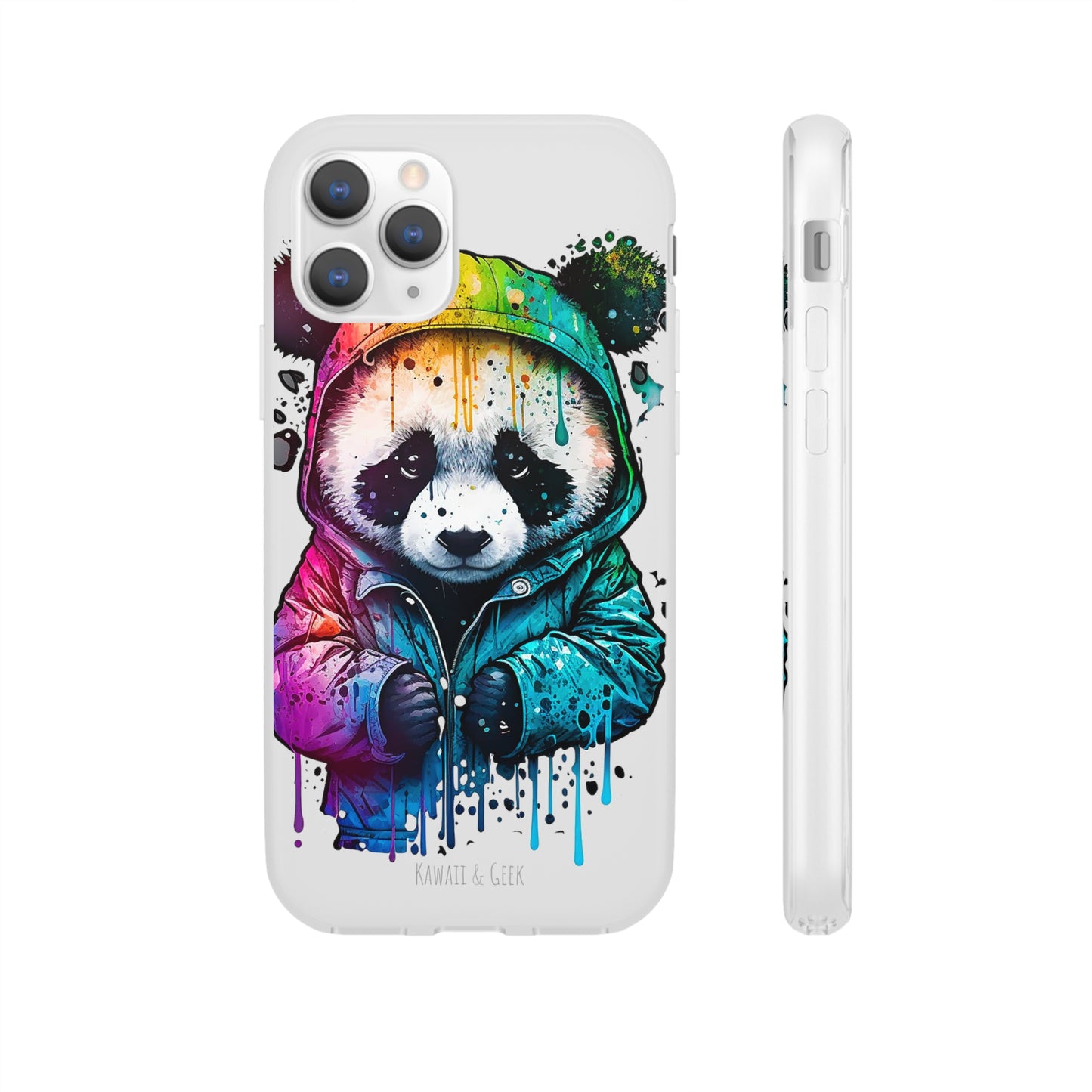 This smartphone case features a cute panda wearing a hoodie in a pop-art style design. The high-quality and detailed design adds a unique and adorable touch to this case, making it stand out from other smartphone cases on the market. This case is perfect for anyone who loves pandas and wants to add some unique and adorable style to their phone while also protecting it from scratches and drops.