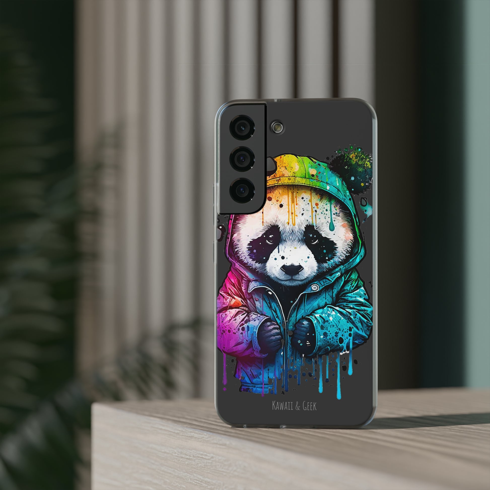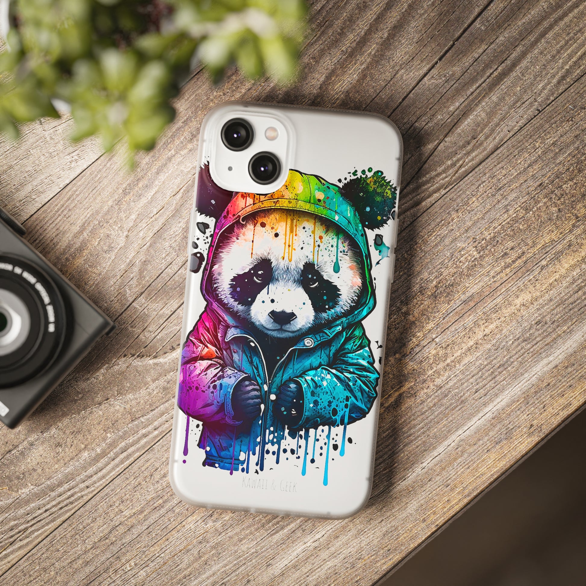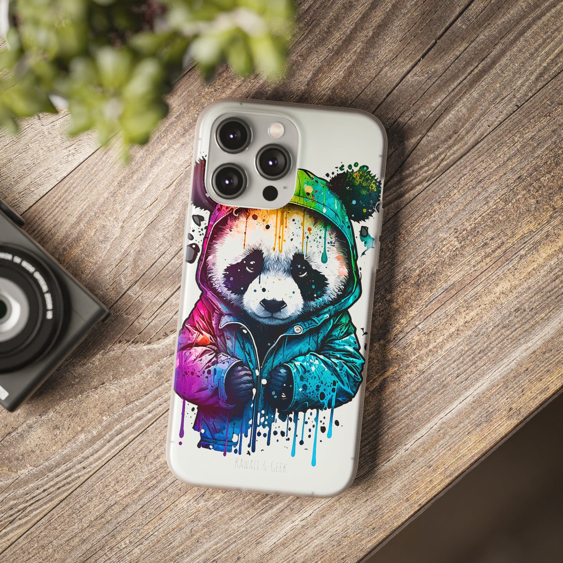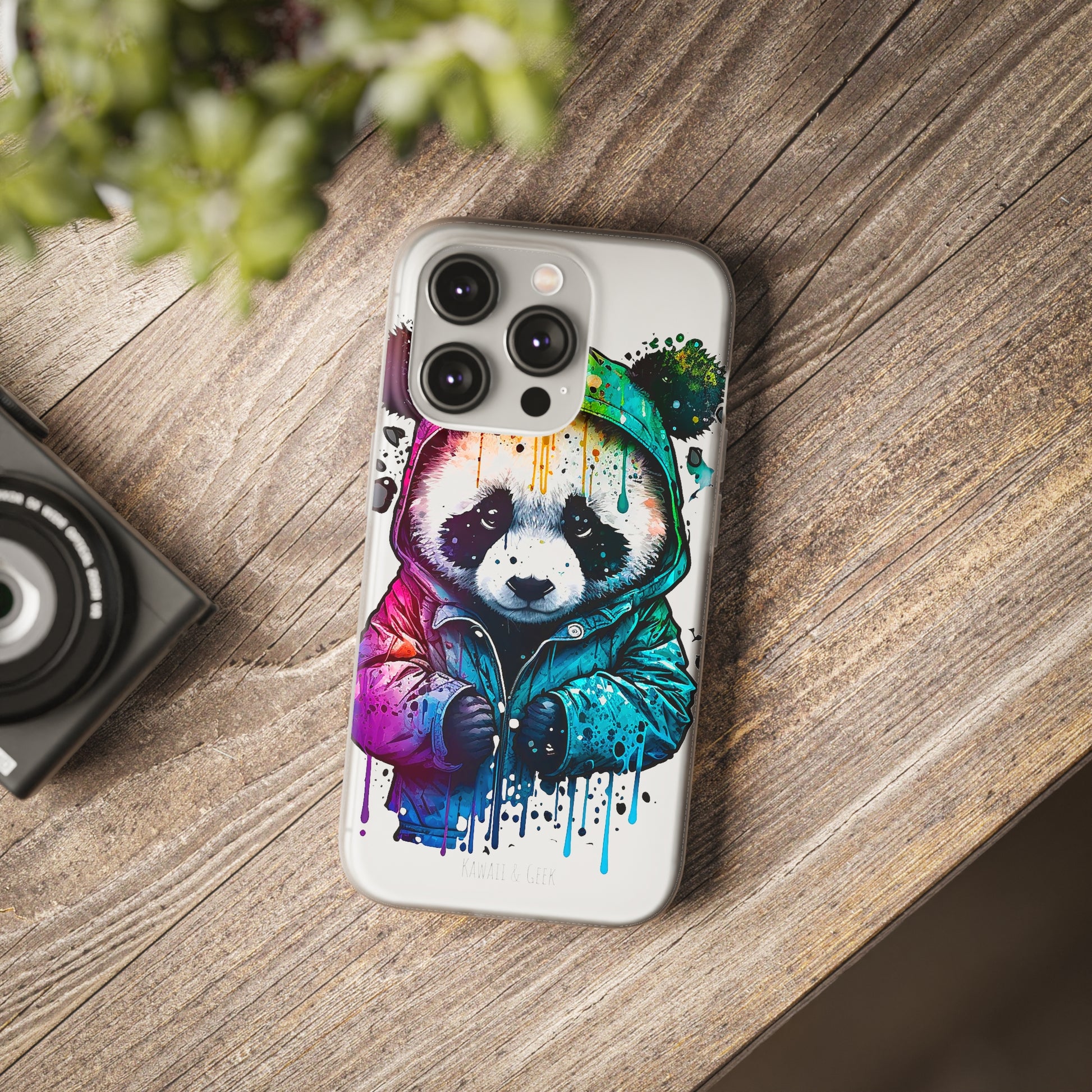 Keywords: Panda smartphone case, pop-art style case, cute smartphone case, unique smartphone case, high-quality smartphone case, adorable smartphone case, hoodie smartphone case.