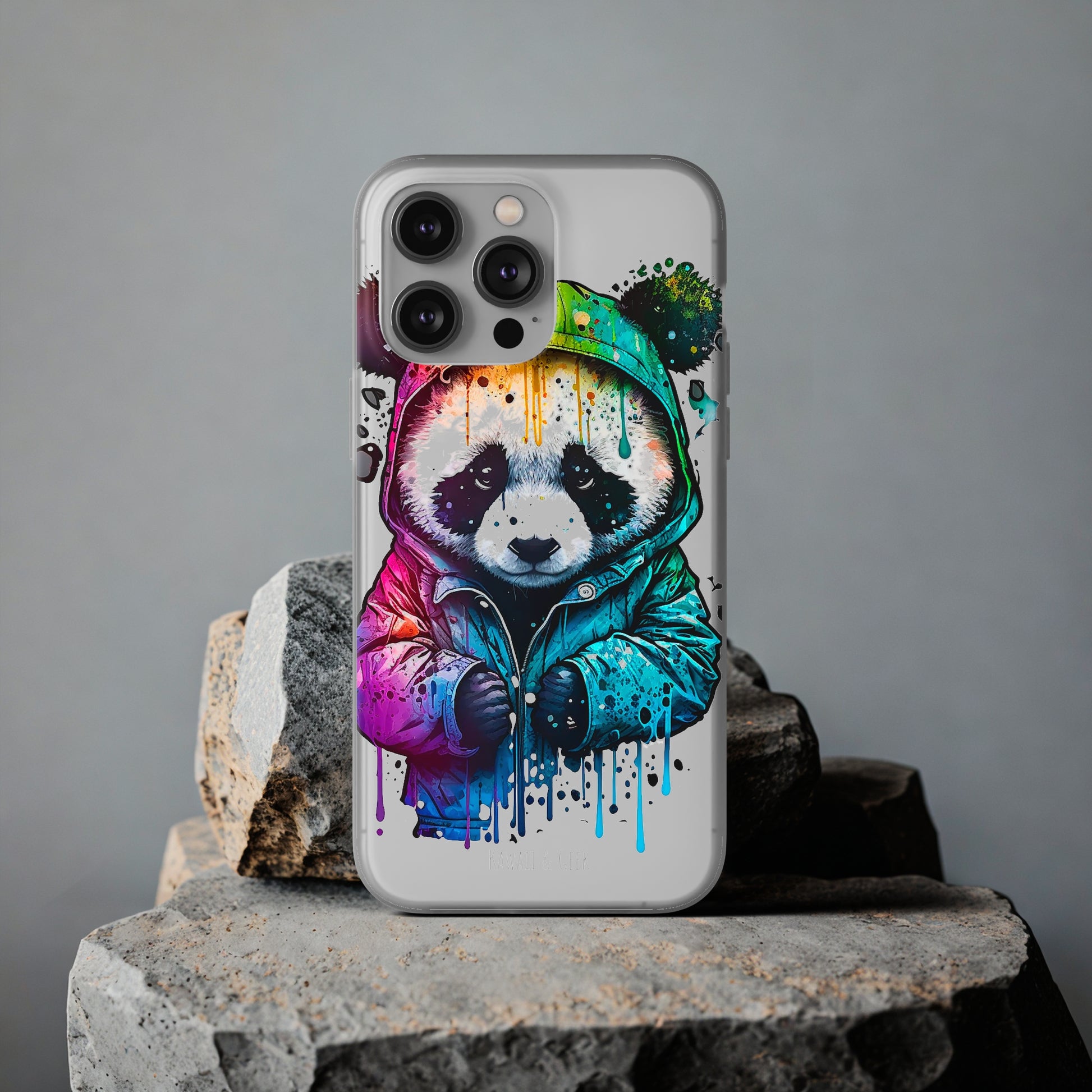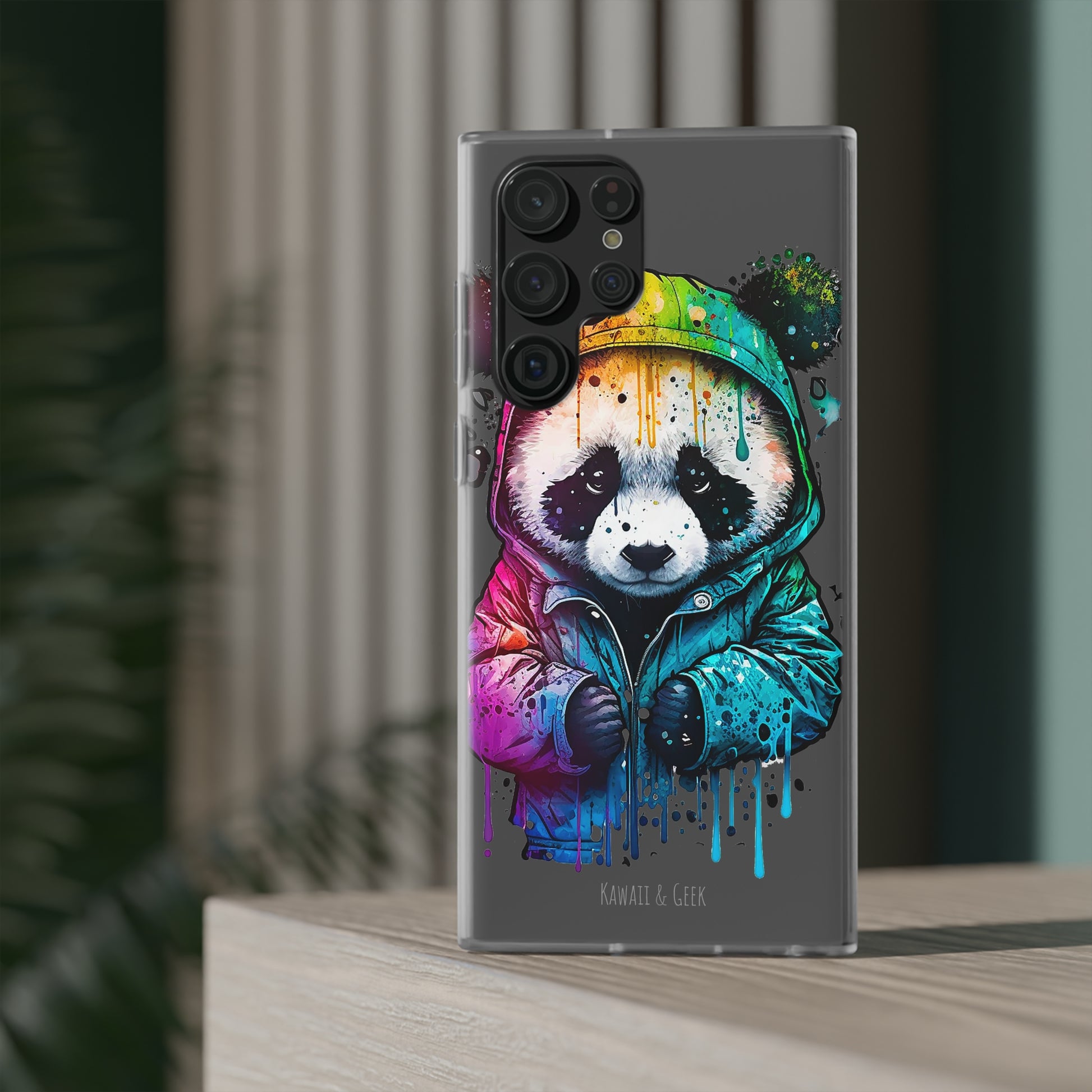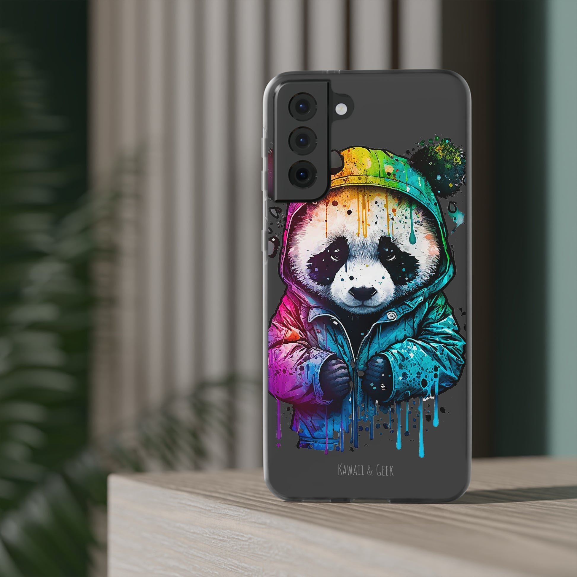 Keywords: Panda smartphone case, pop-art style case, cute smartphone case, unique smartphone case, high-quality smartphone case, adorable smartphone case, hoodie smartphone case.