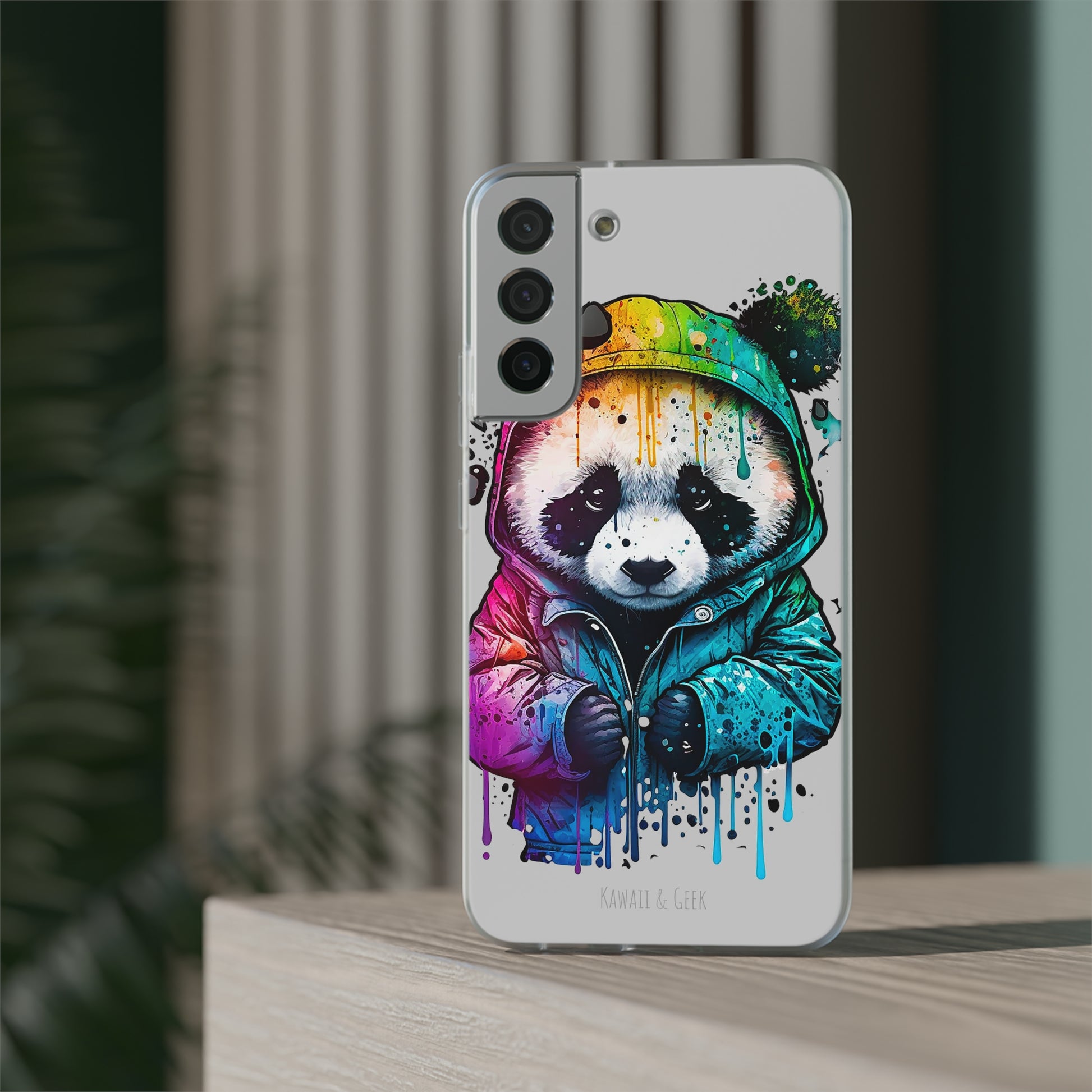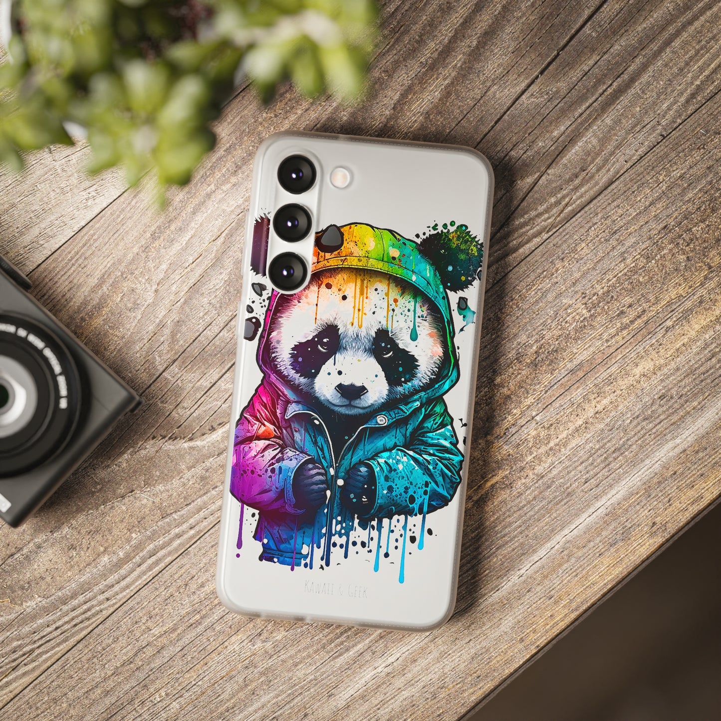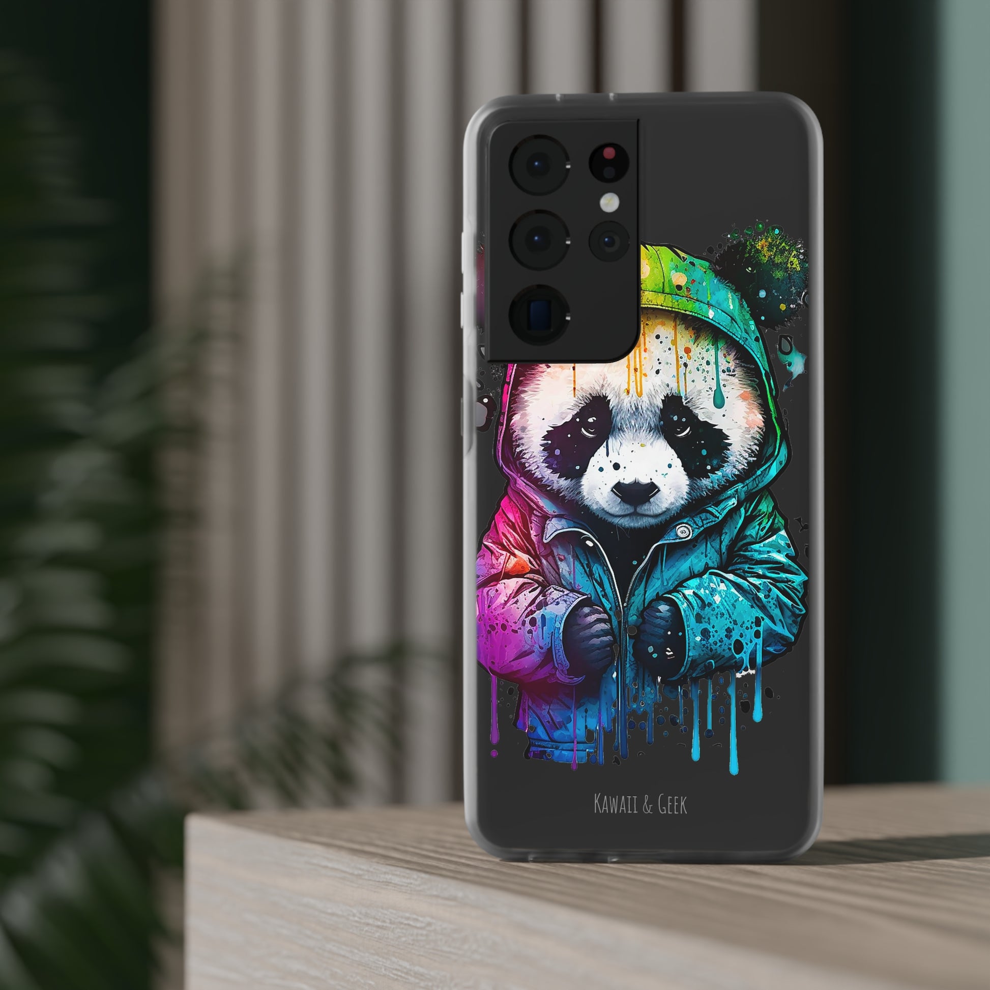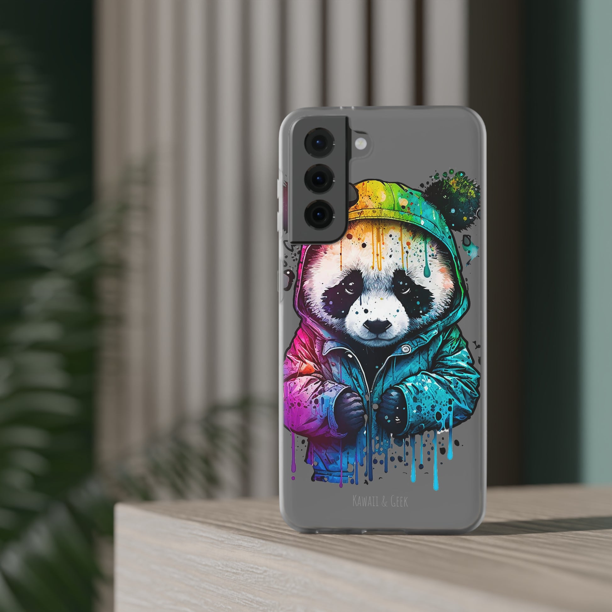 Keywords: Panda smartphone case, pop-art style case, cute smartphone case, unique smartphone case, high-quality smartphone case, adorable smartphone case, hoodie smartphone case.