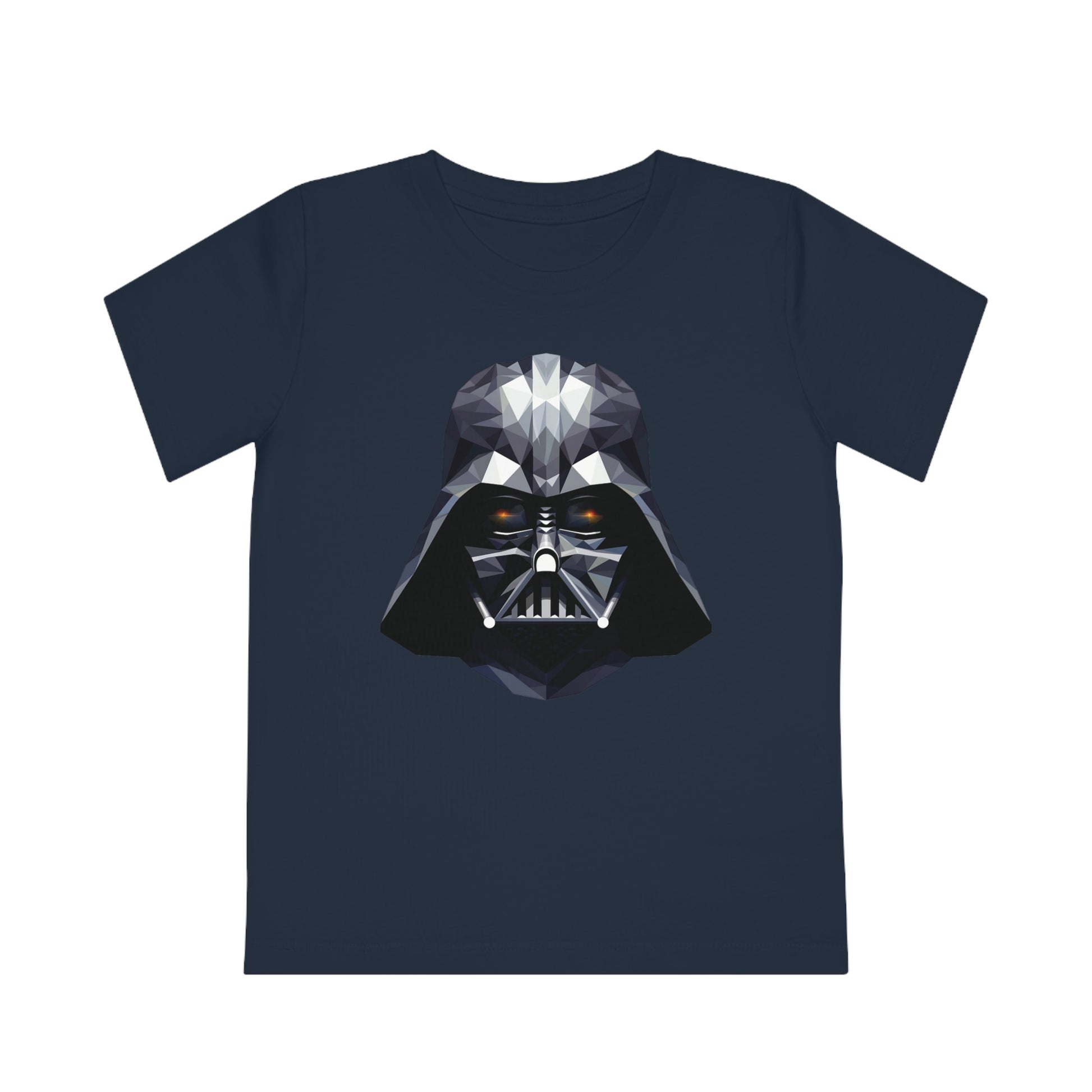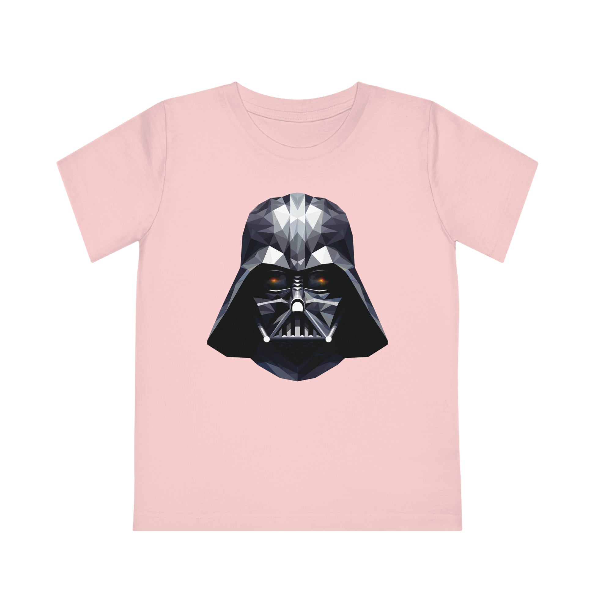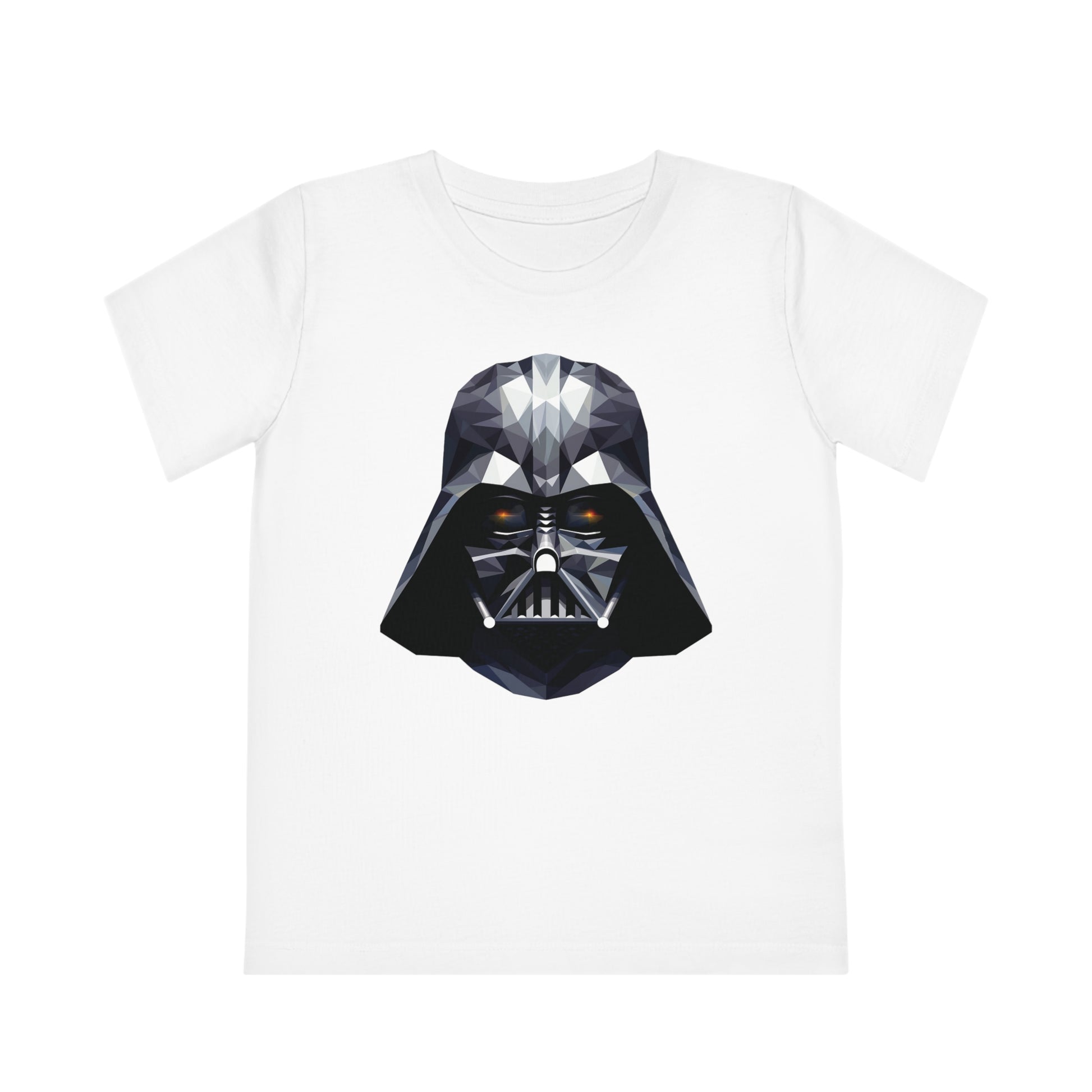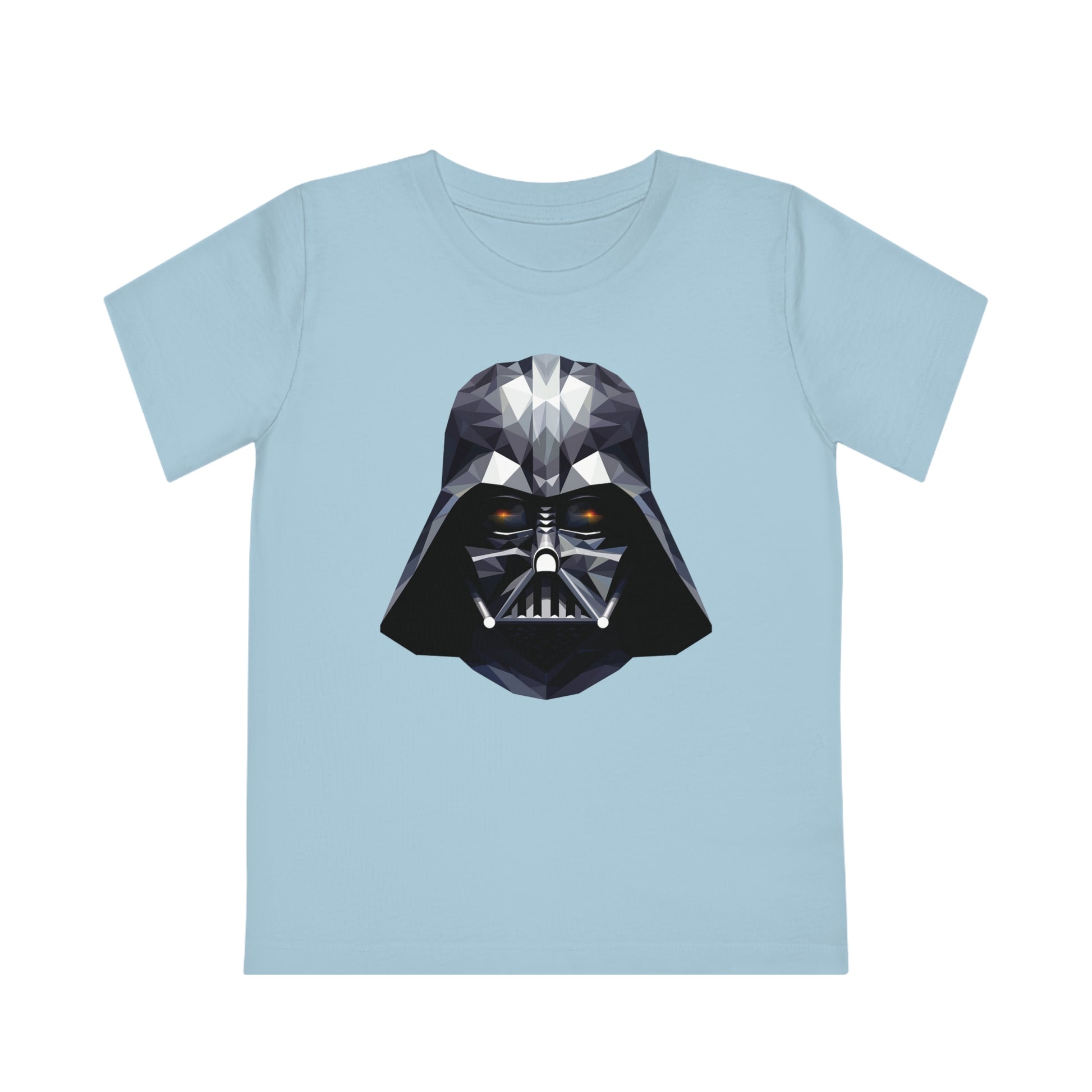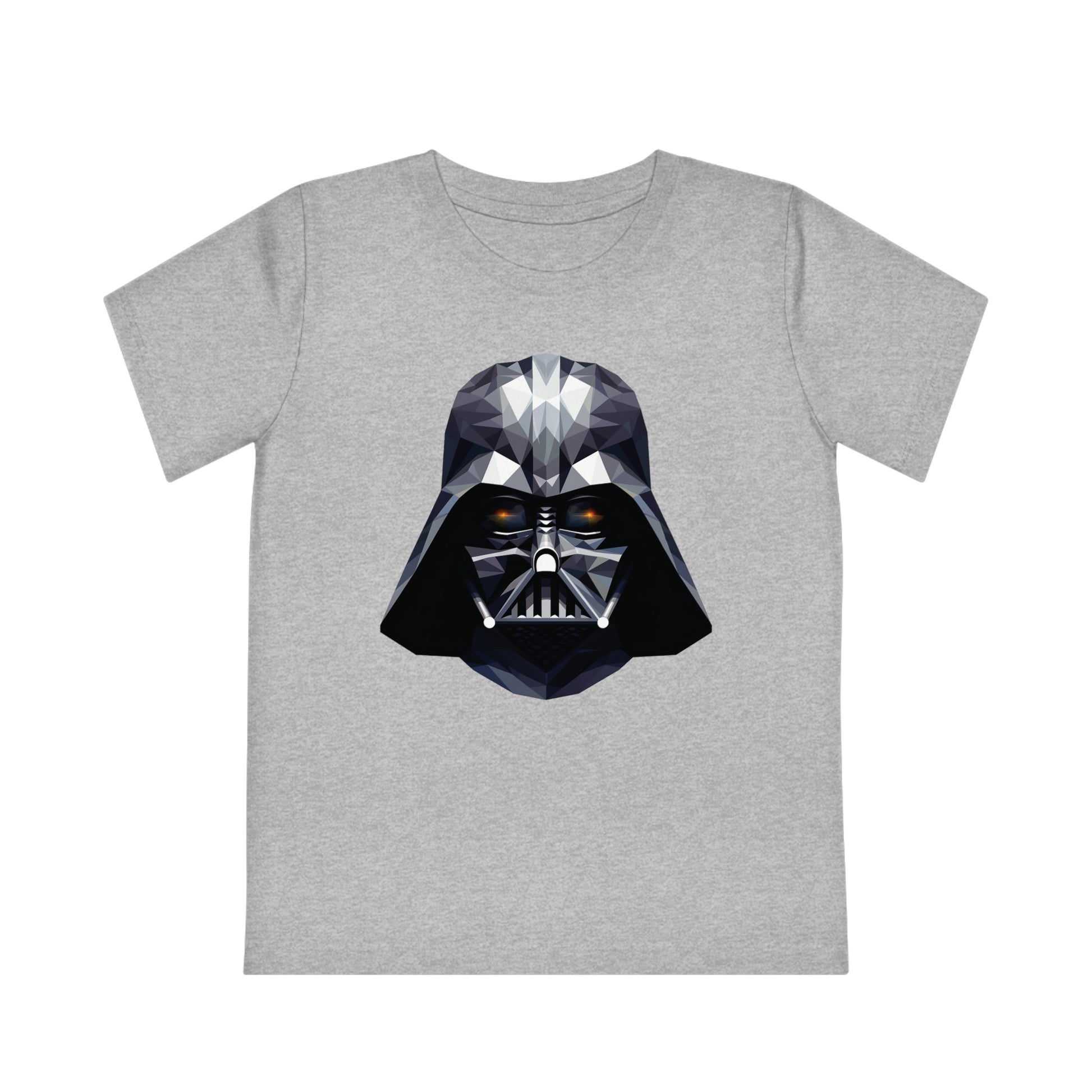Keywords: Darth Vader kids t-shirt, polygonal geometric style, eco-friendly materials, dark side, iconic design, unique style, Star Wars fan, sustainable fashion.