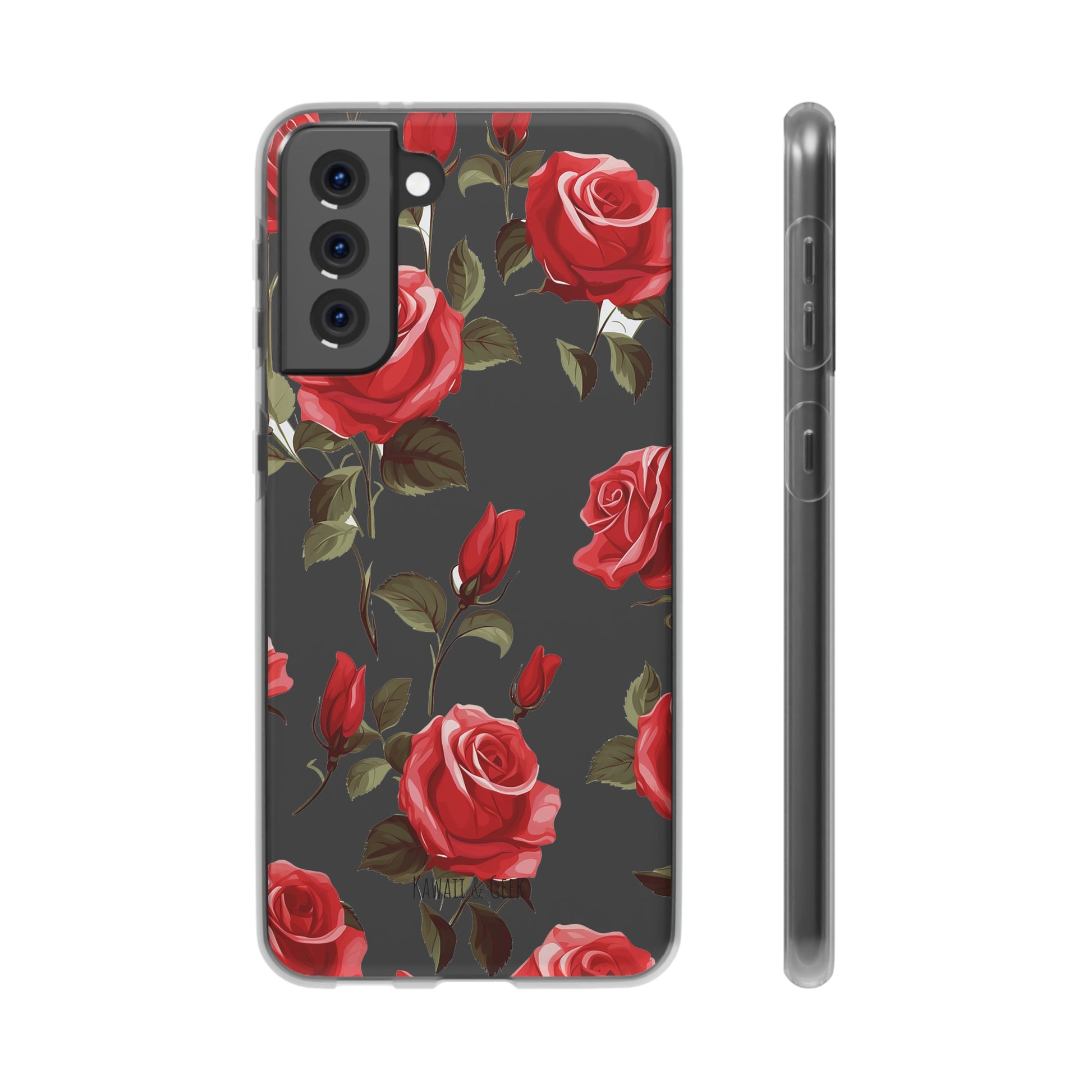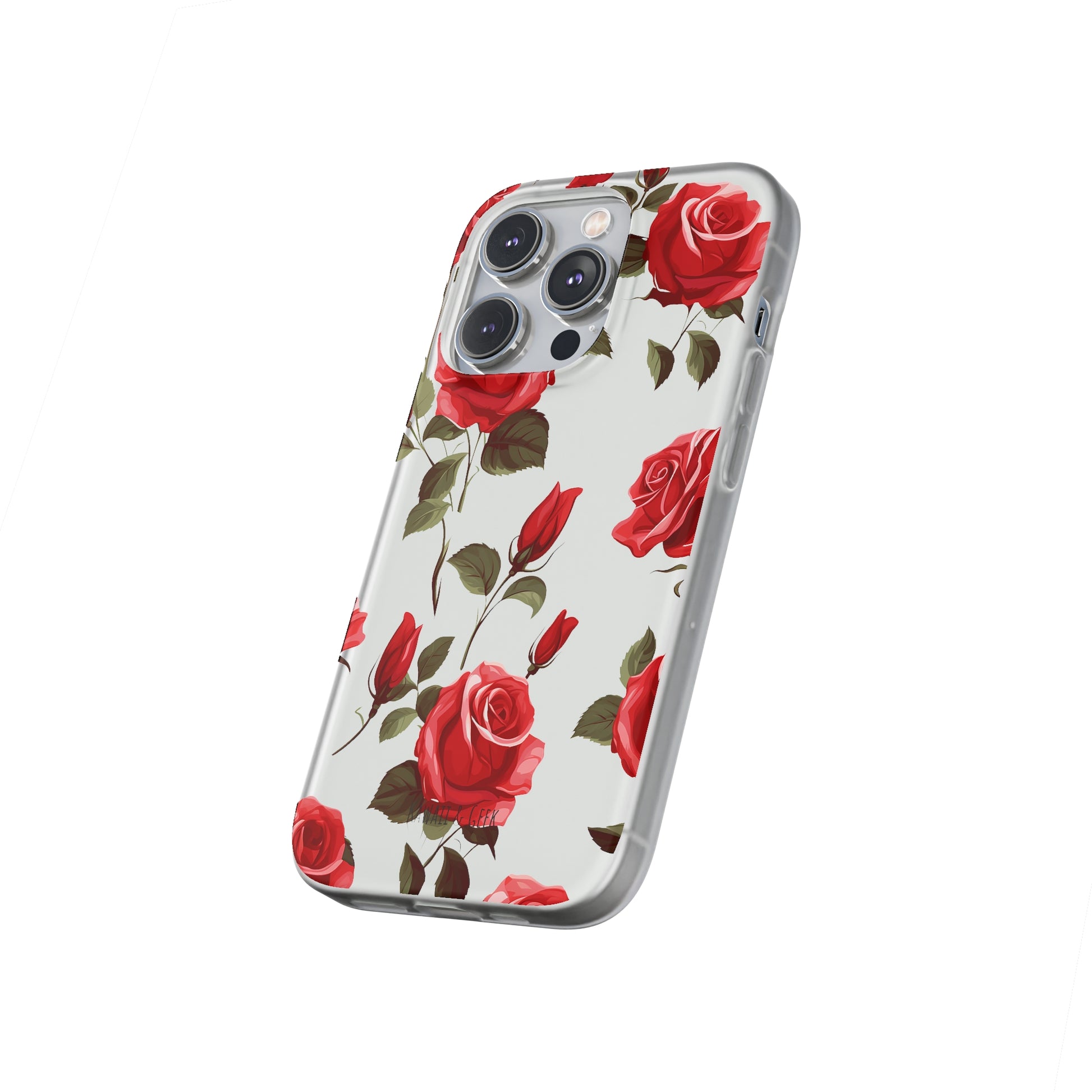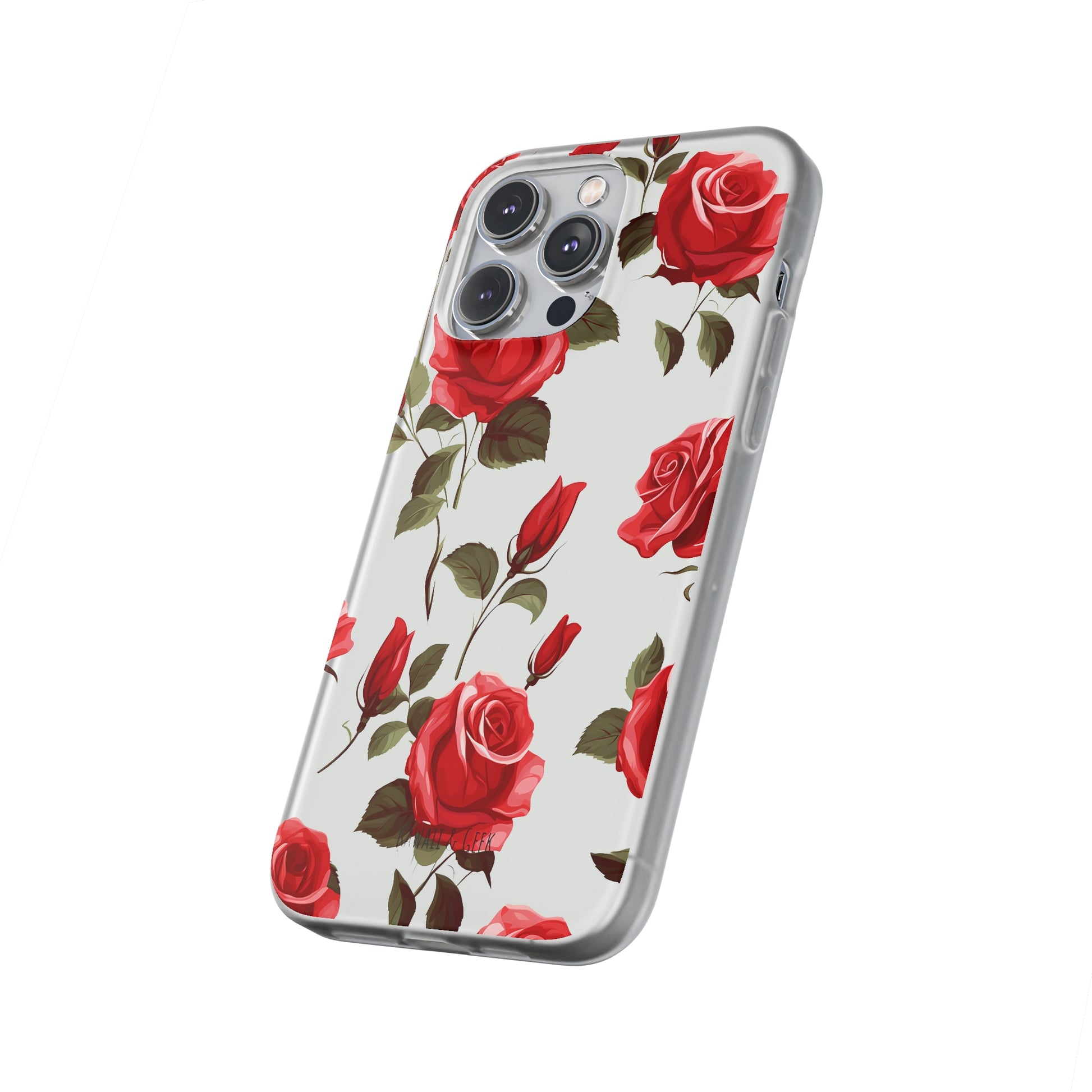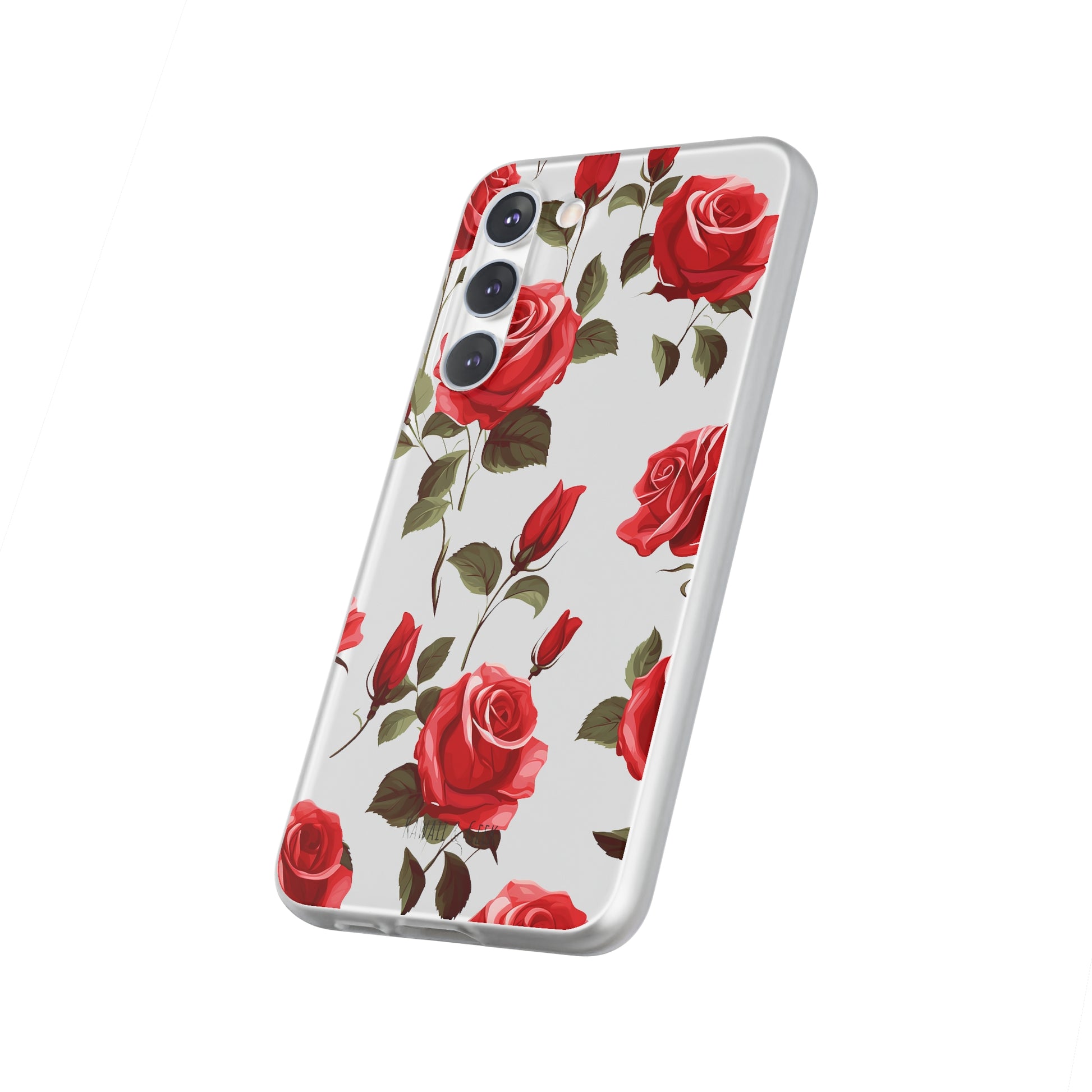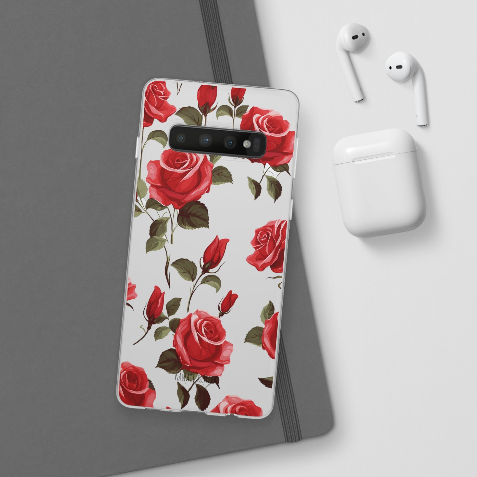 Keywords: roses, floral design, flexible case, delicate roses, phone protection, timeless elegance, rose pattern, smartphone accessory, botanical beauty, nature-inspired, slim-fit case, floral phone cover.