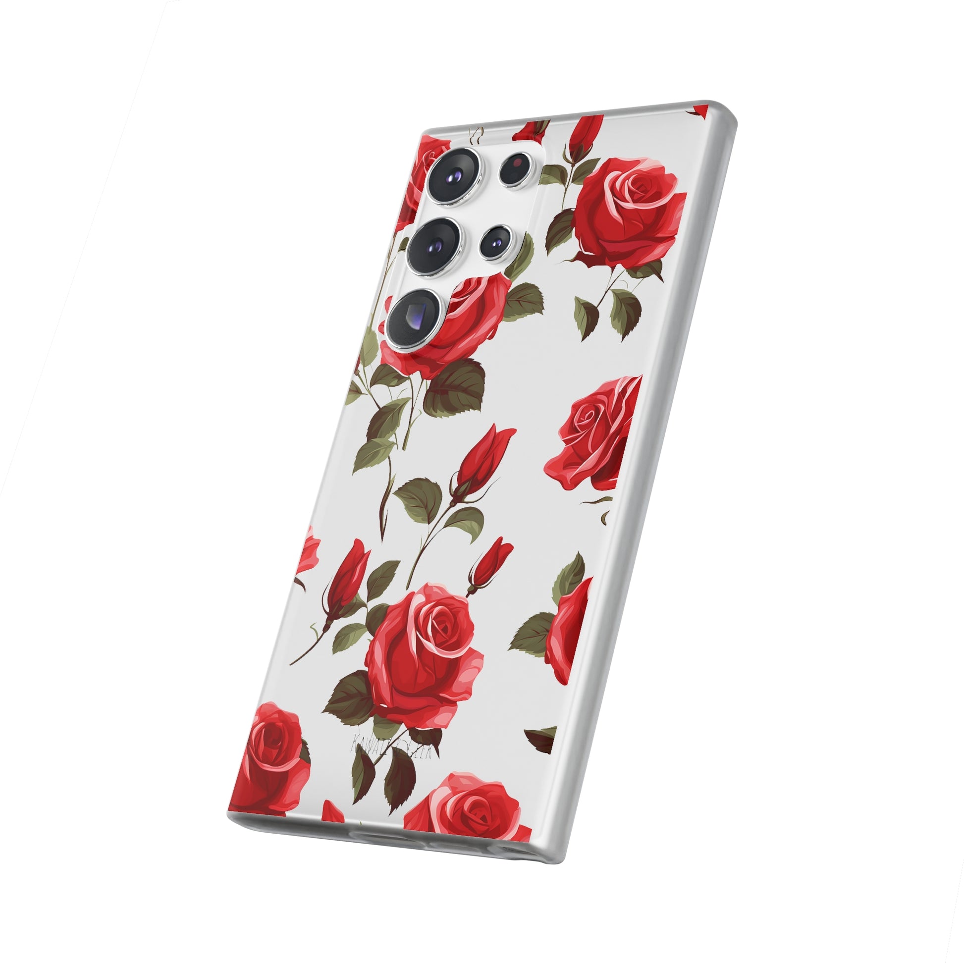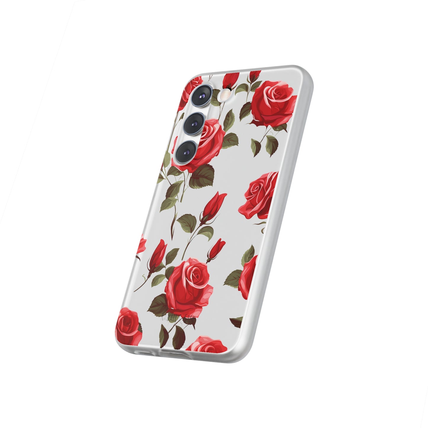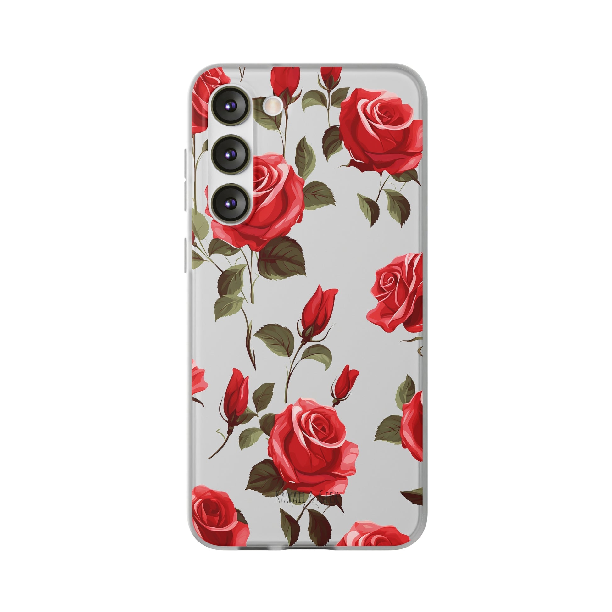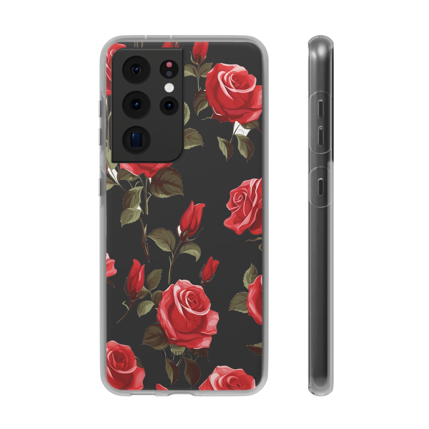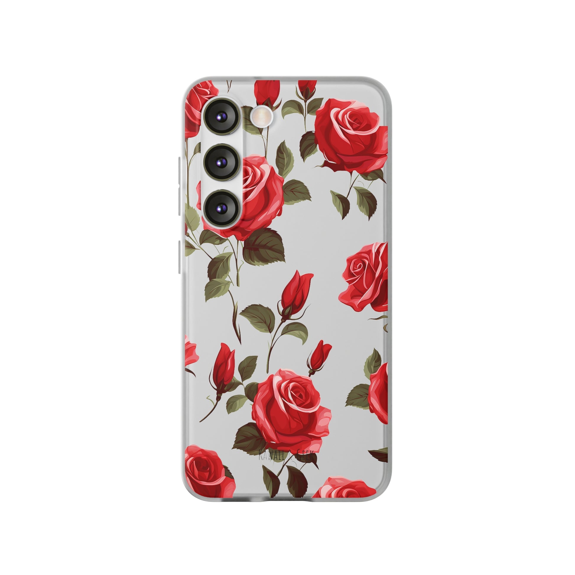 Keywords: roses, floral design, flexible case, delicate roses, phone protection, timeless elegance, rose pattern, smartphone accessory, botanical beauty, nature-inspired, slim-fit case, floral phone cover.