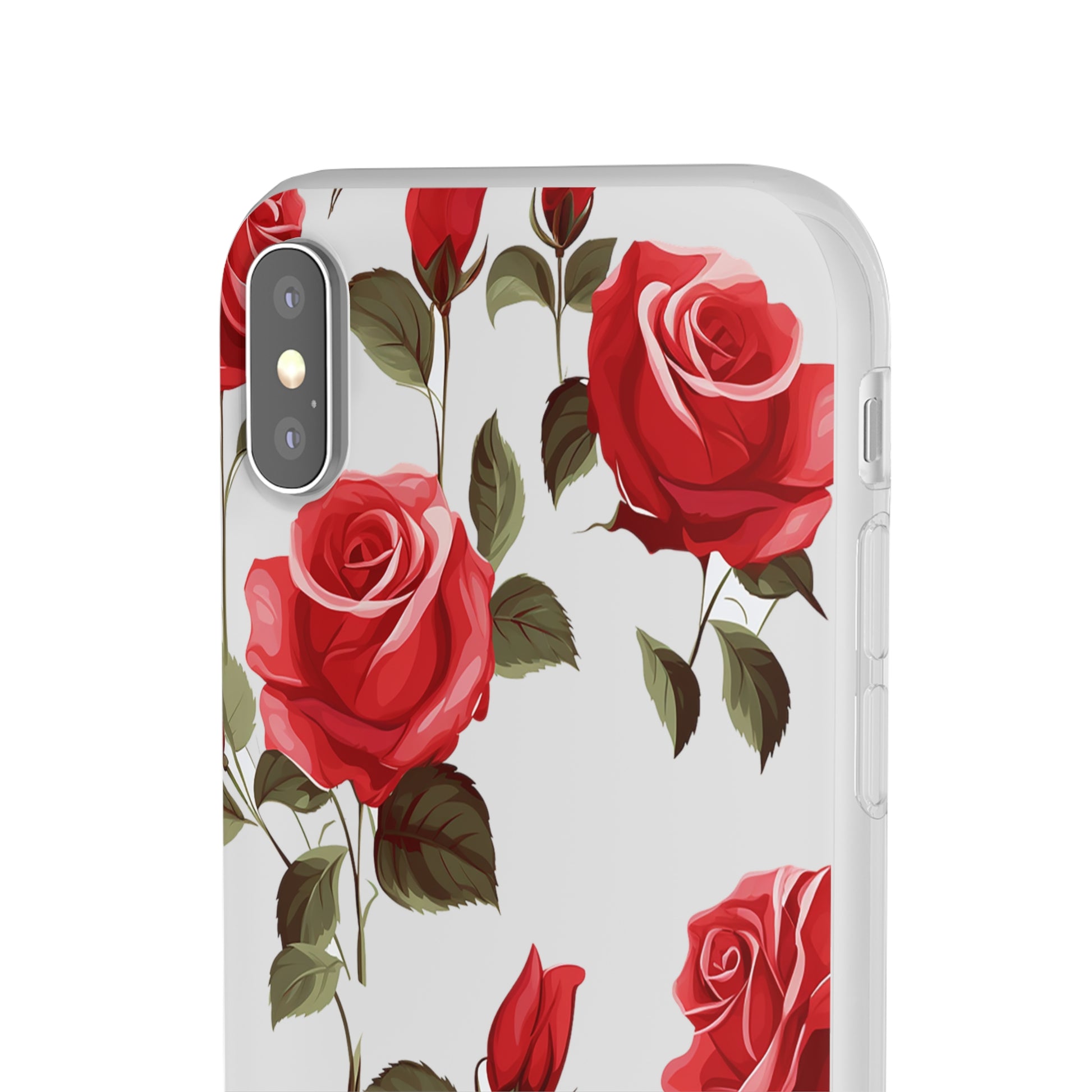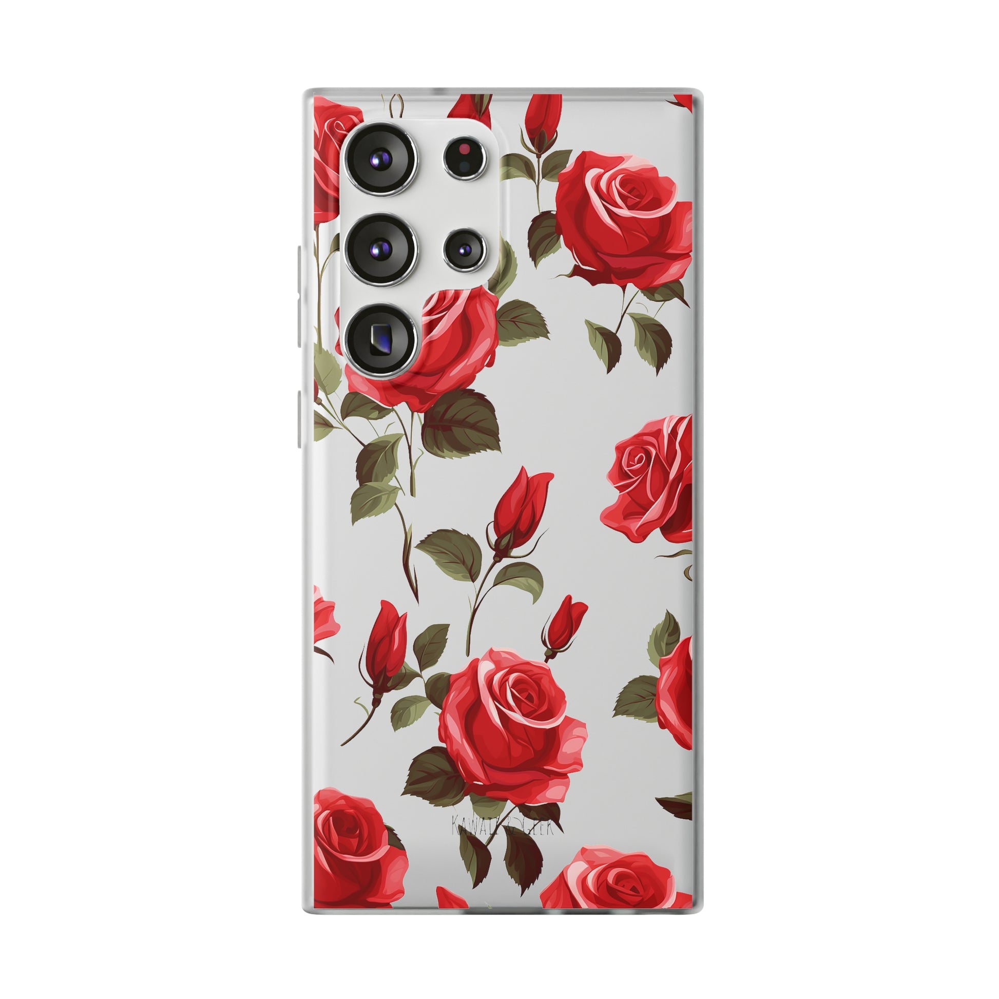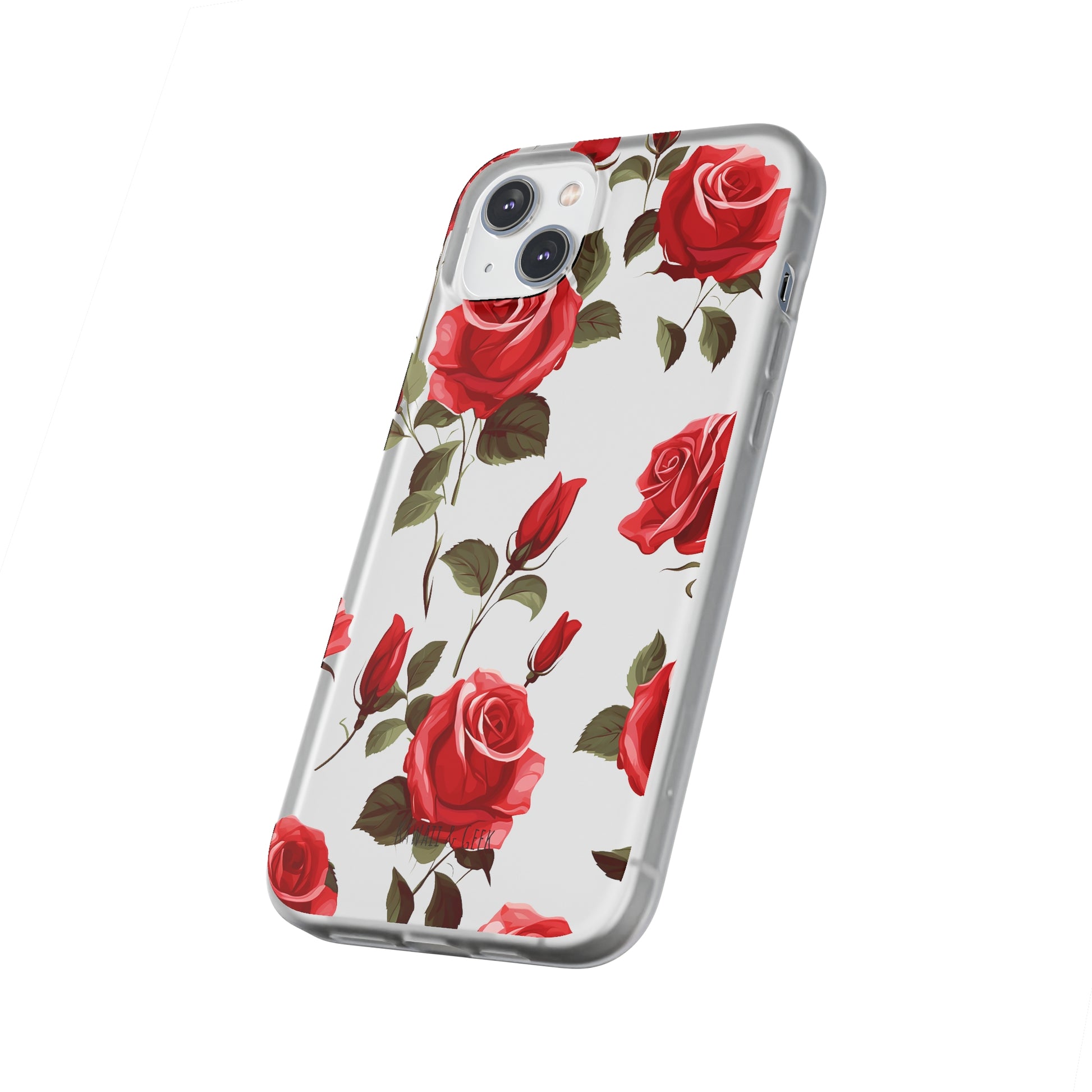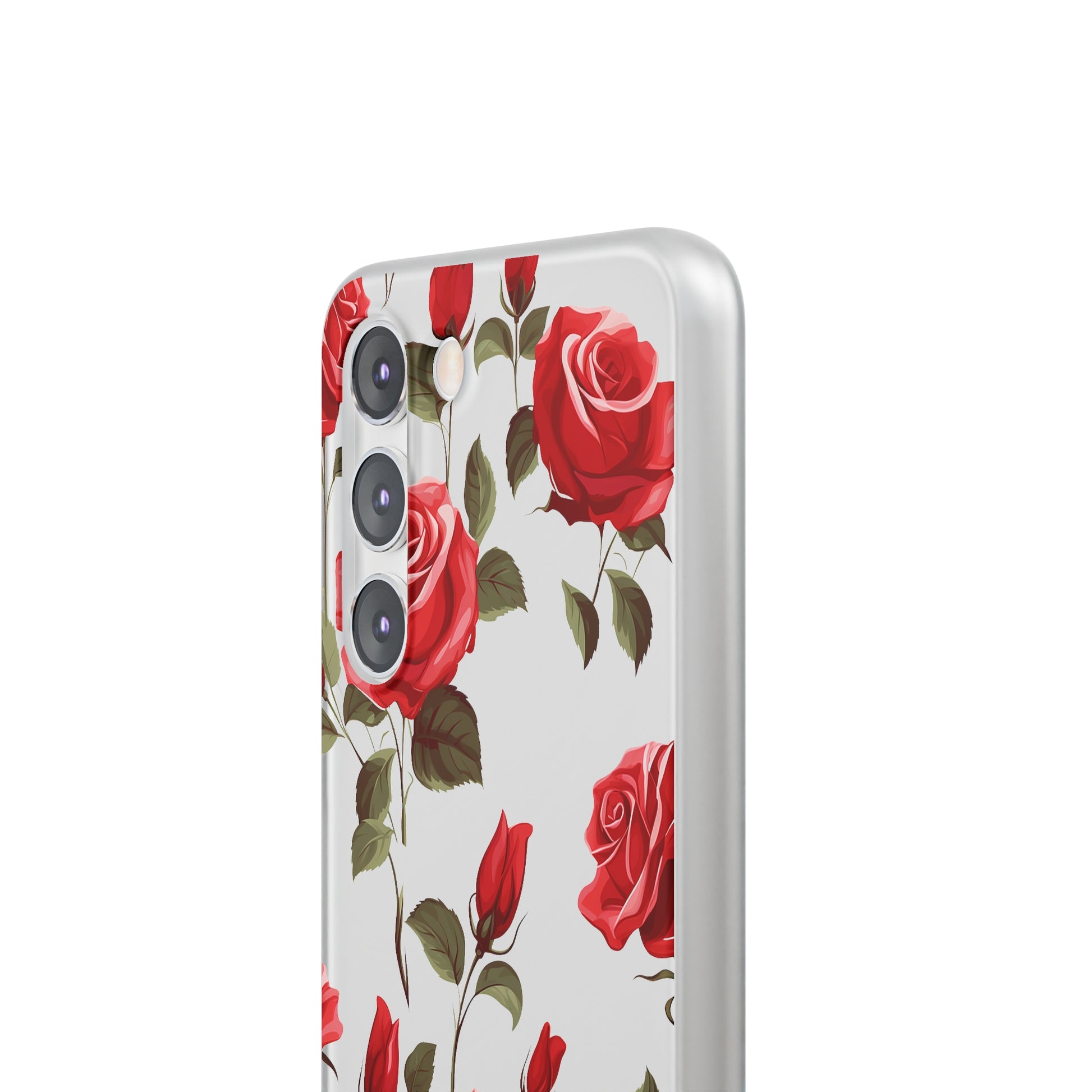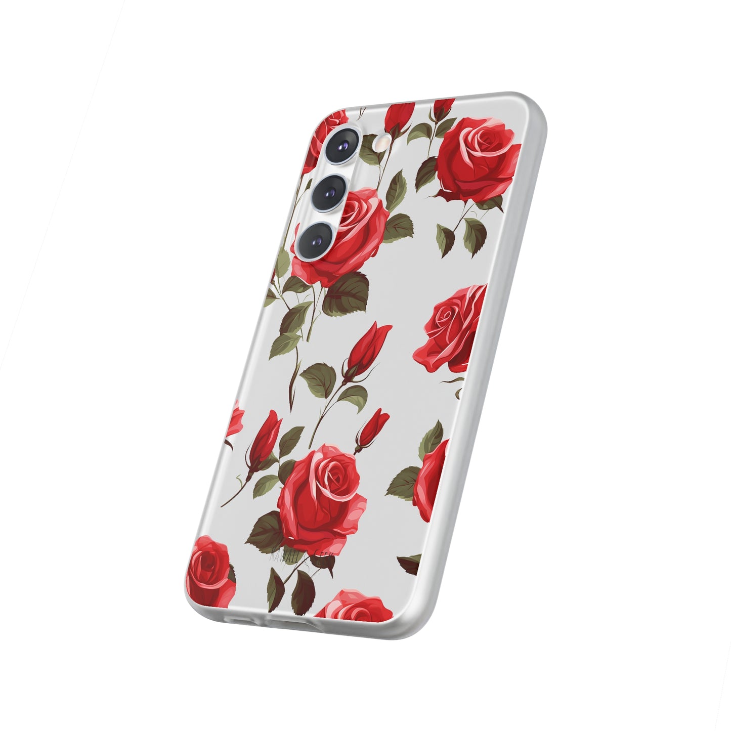 Keywords: roses, floral design, flexible case, delicate roses, phone protection, timeless elegance, rose pattern, smartphone accessory, botanical beauty, nature-inspired, slim-fit case, floral phone cover.