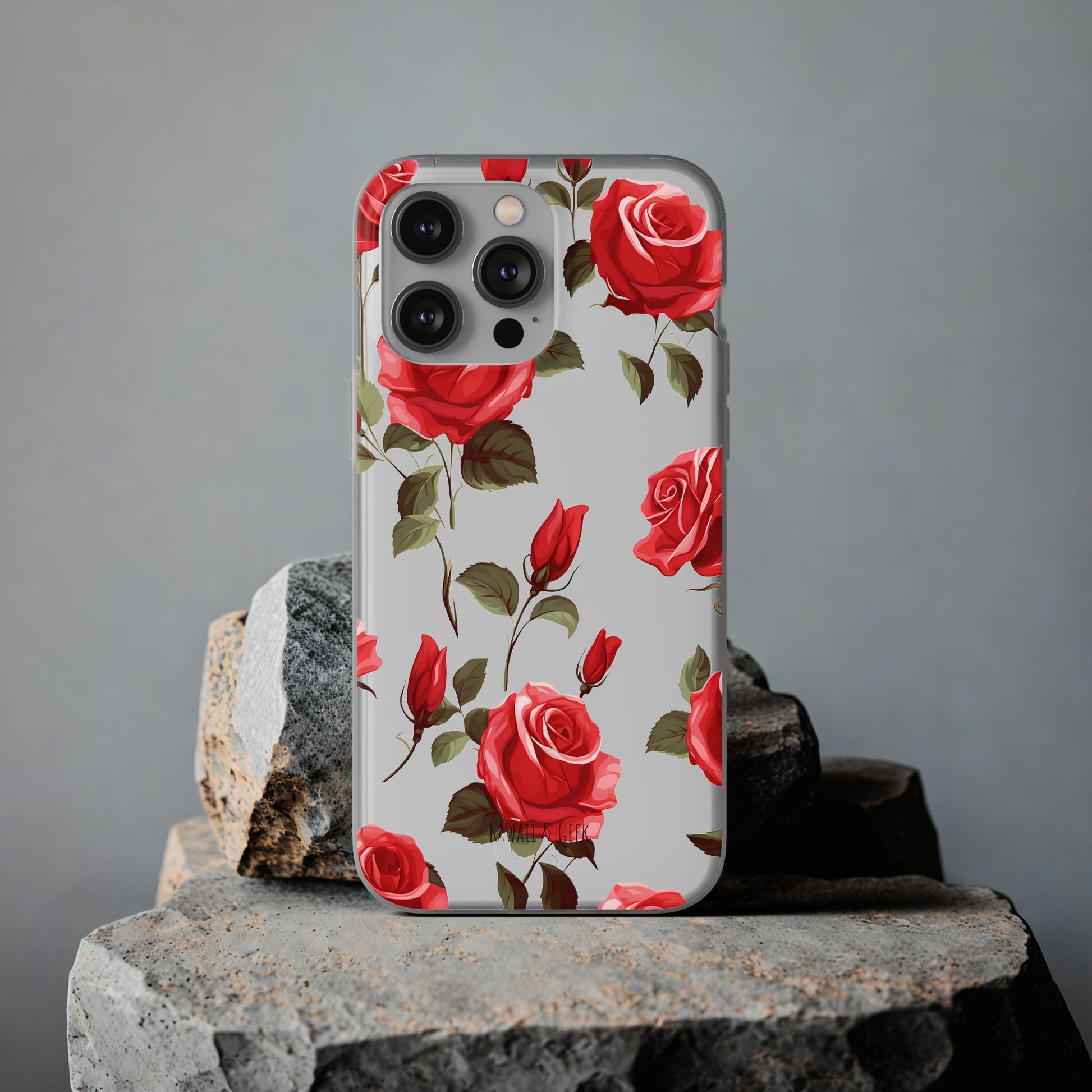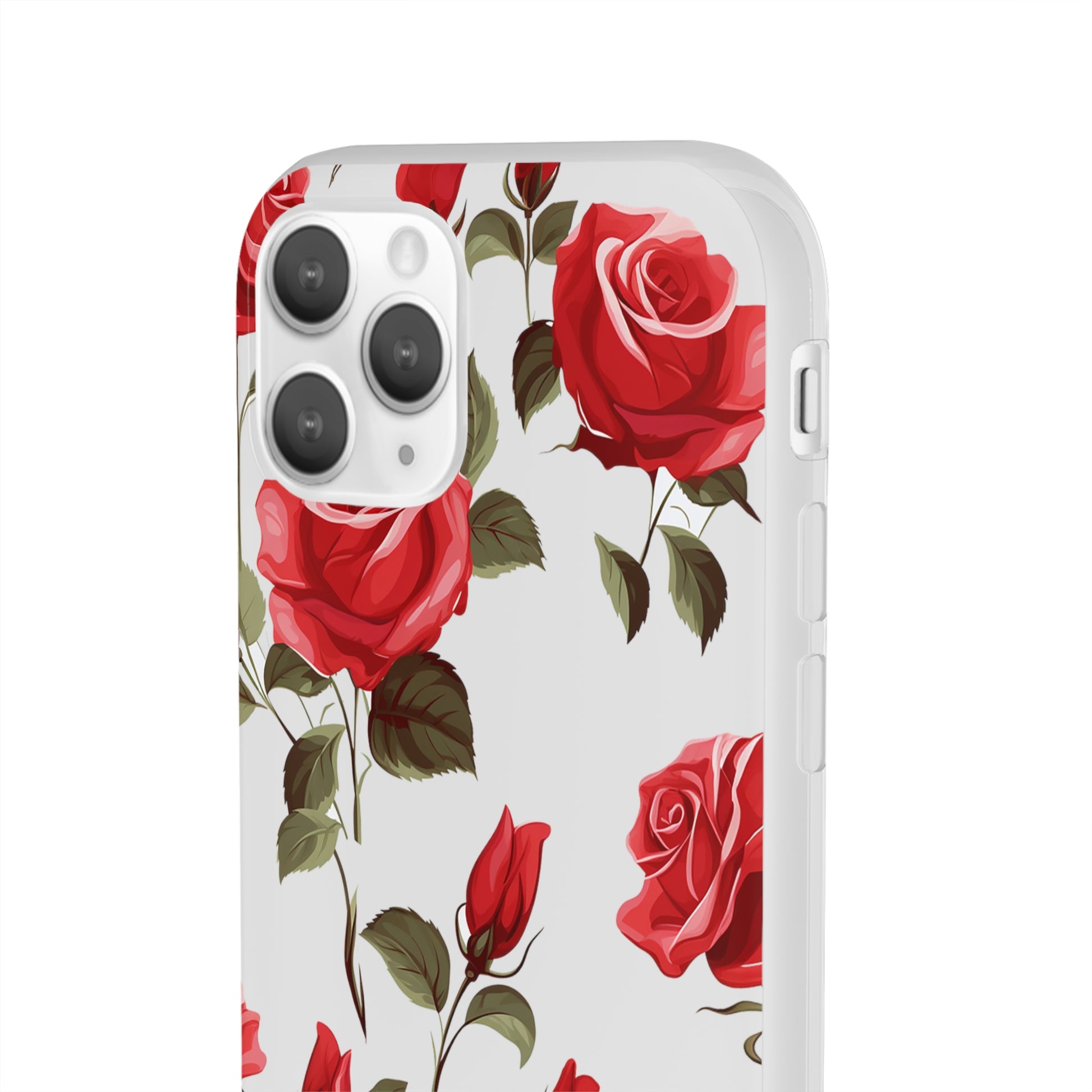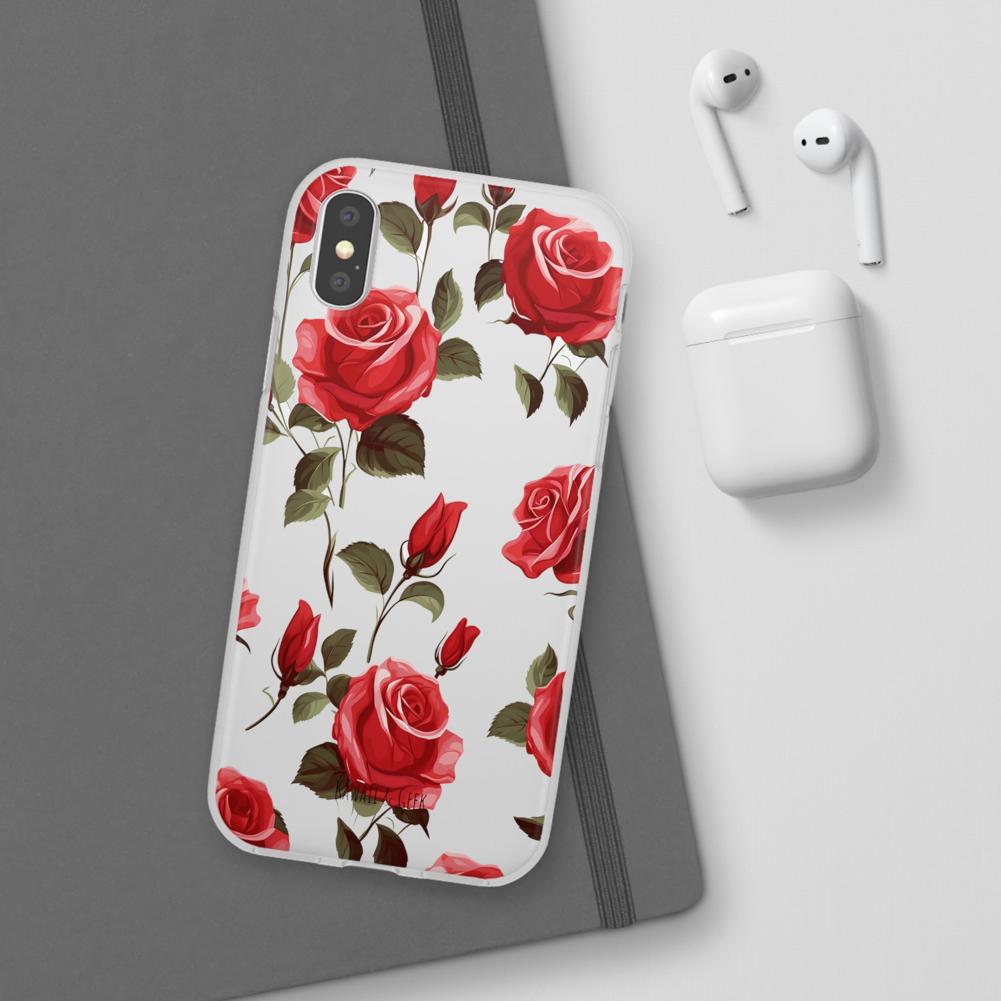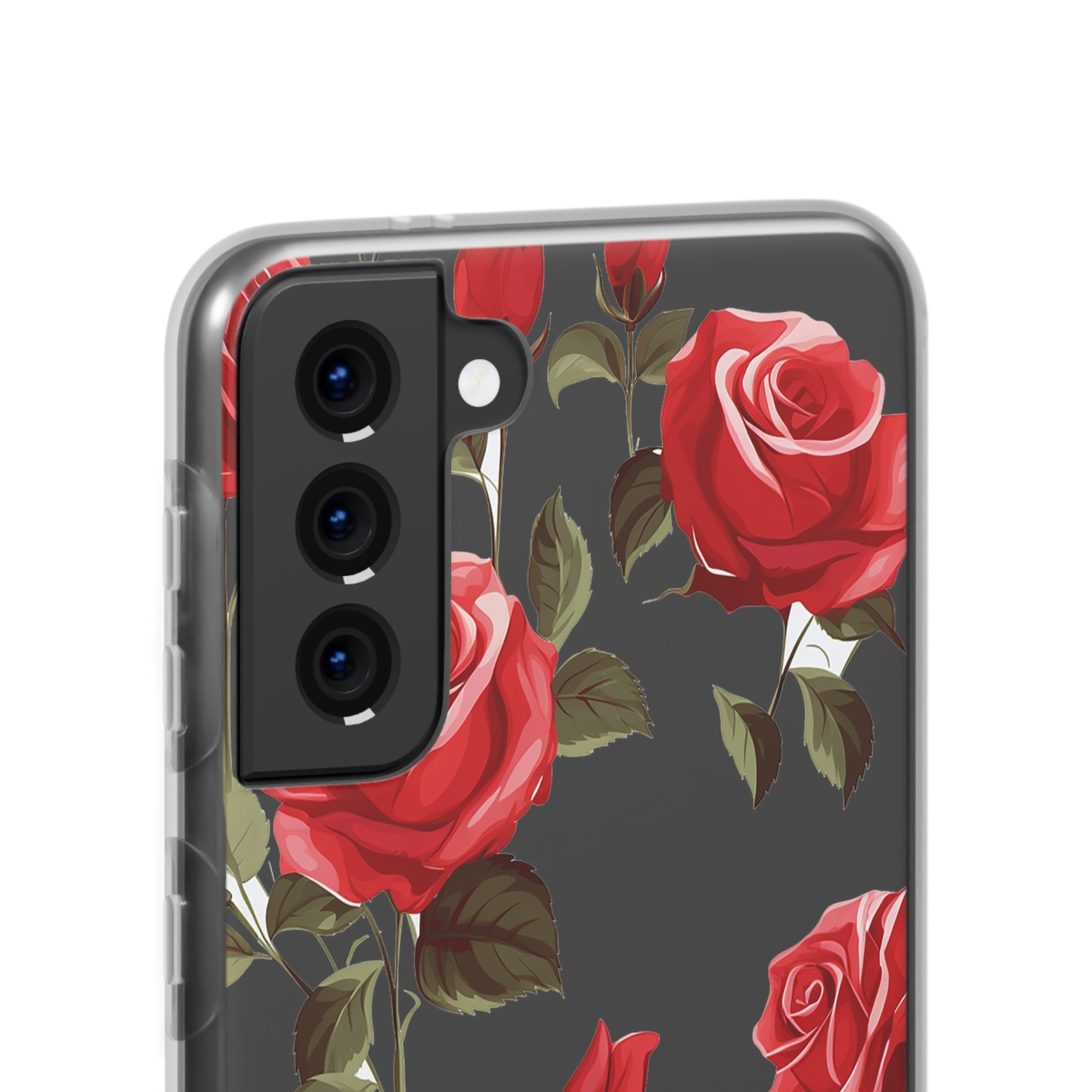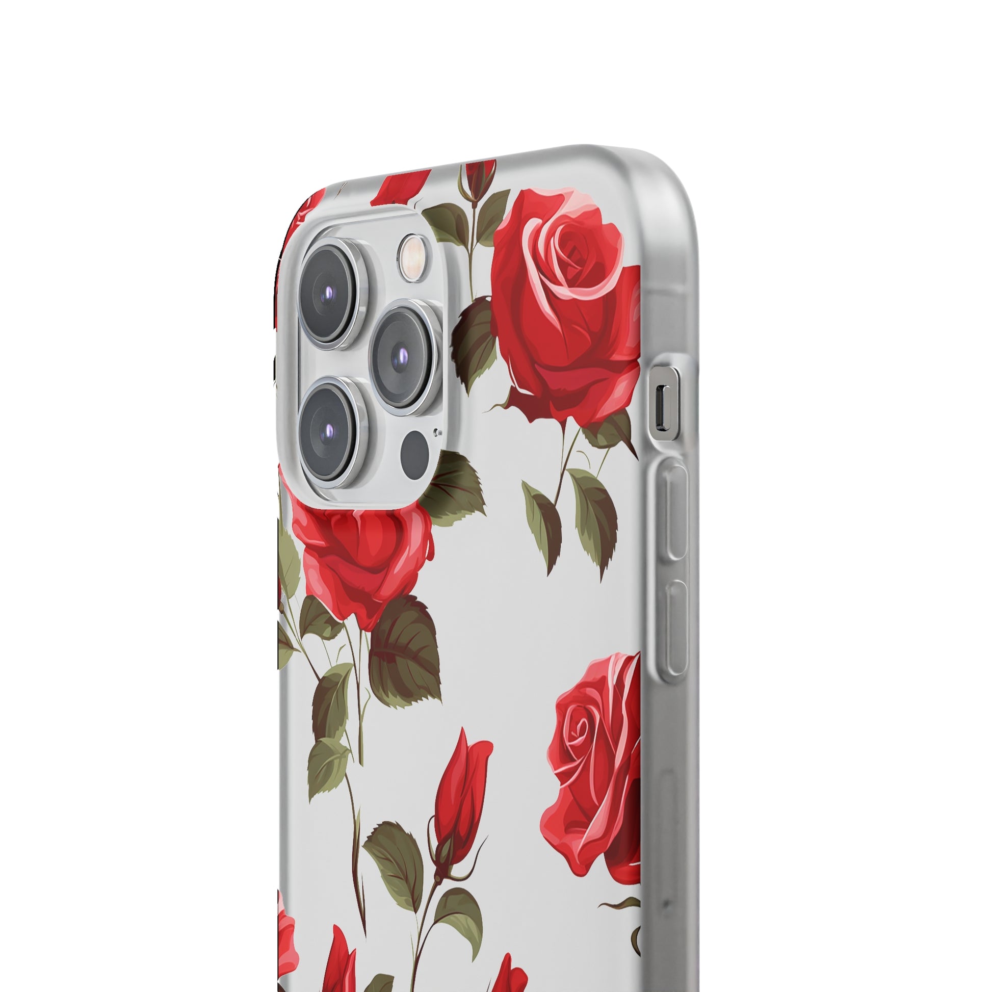 Keywords: roses, floral design, flexible case, delicate roses, phone protection, timeless elegance, rose pattern, smartphone accessory, botanical beauty, nature-inspired, slim-fit case, floral phone cover.