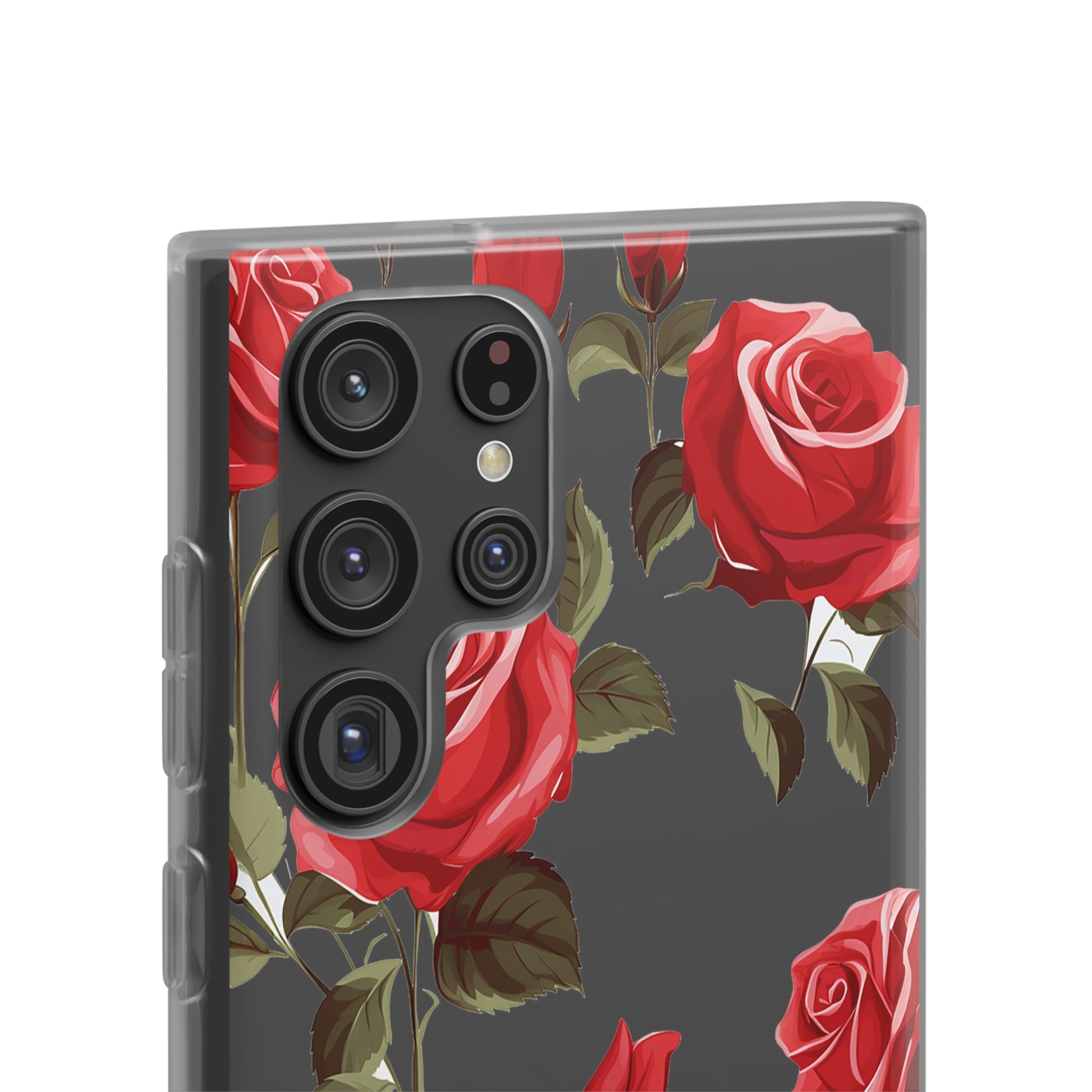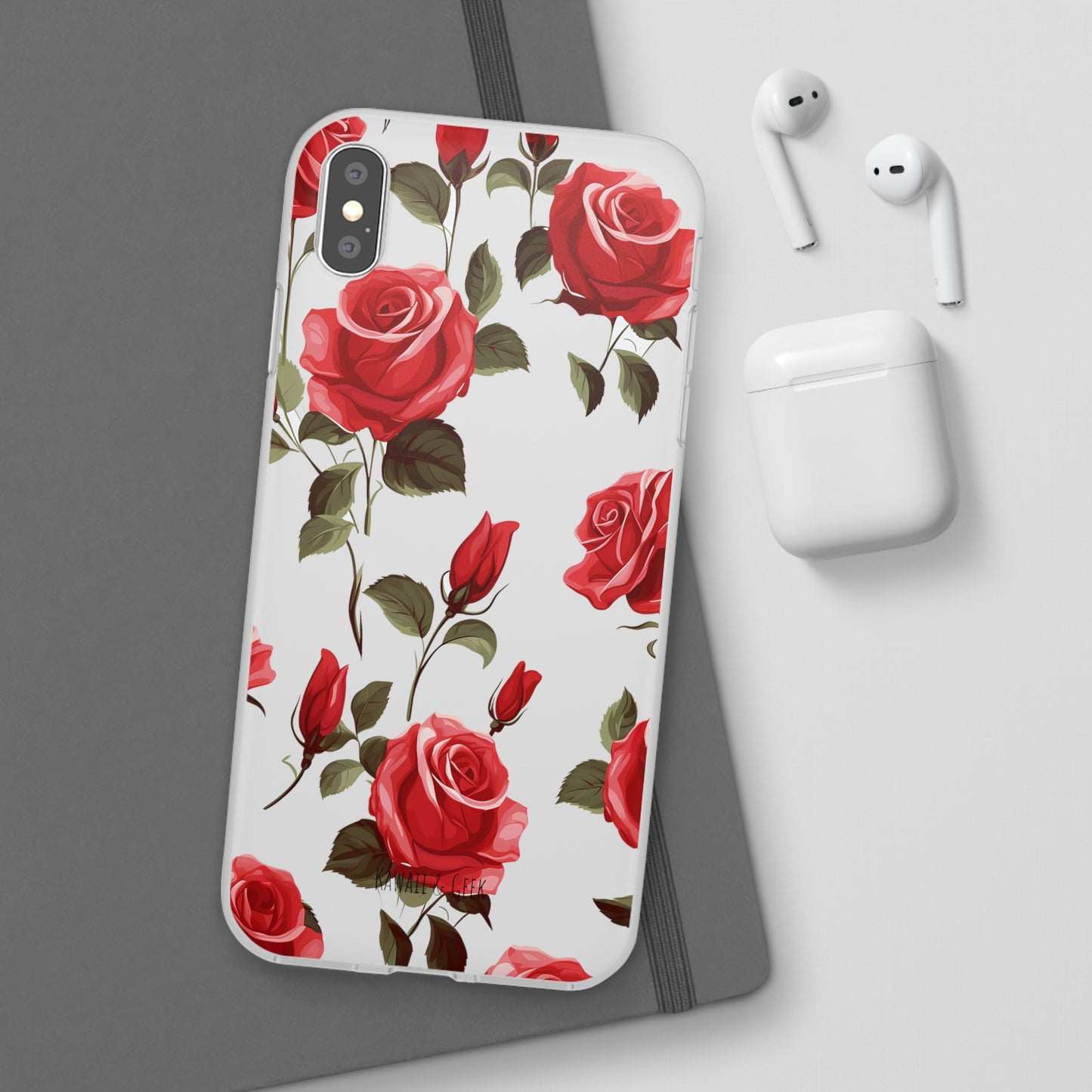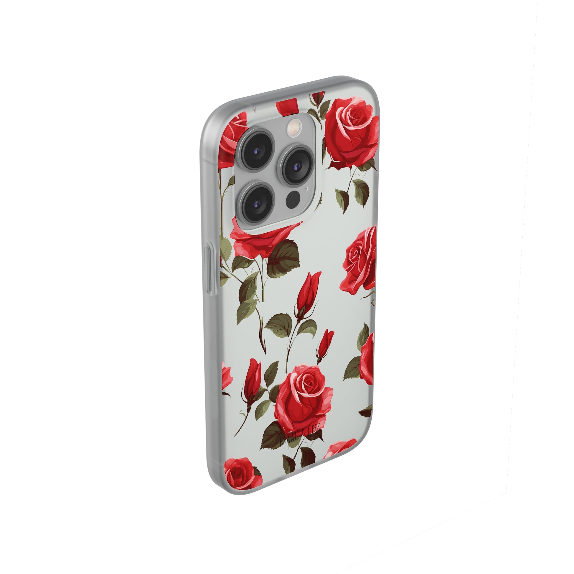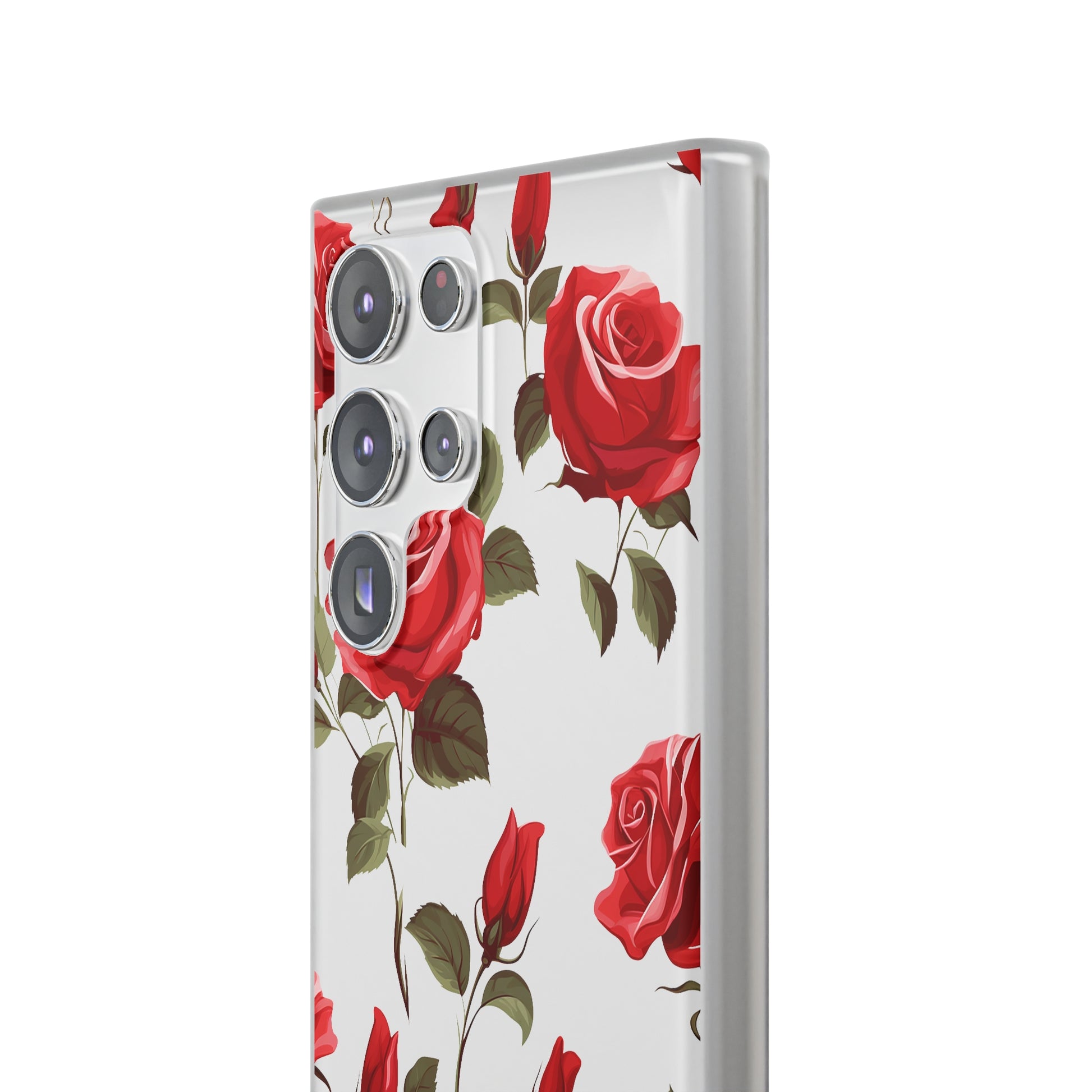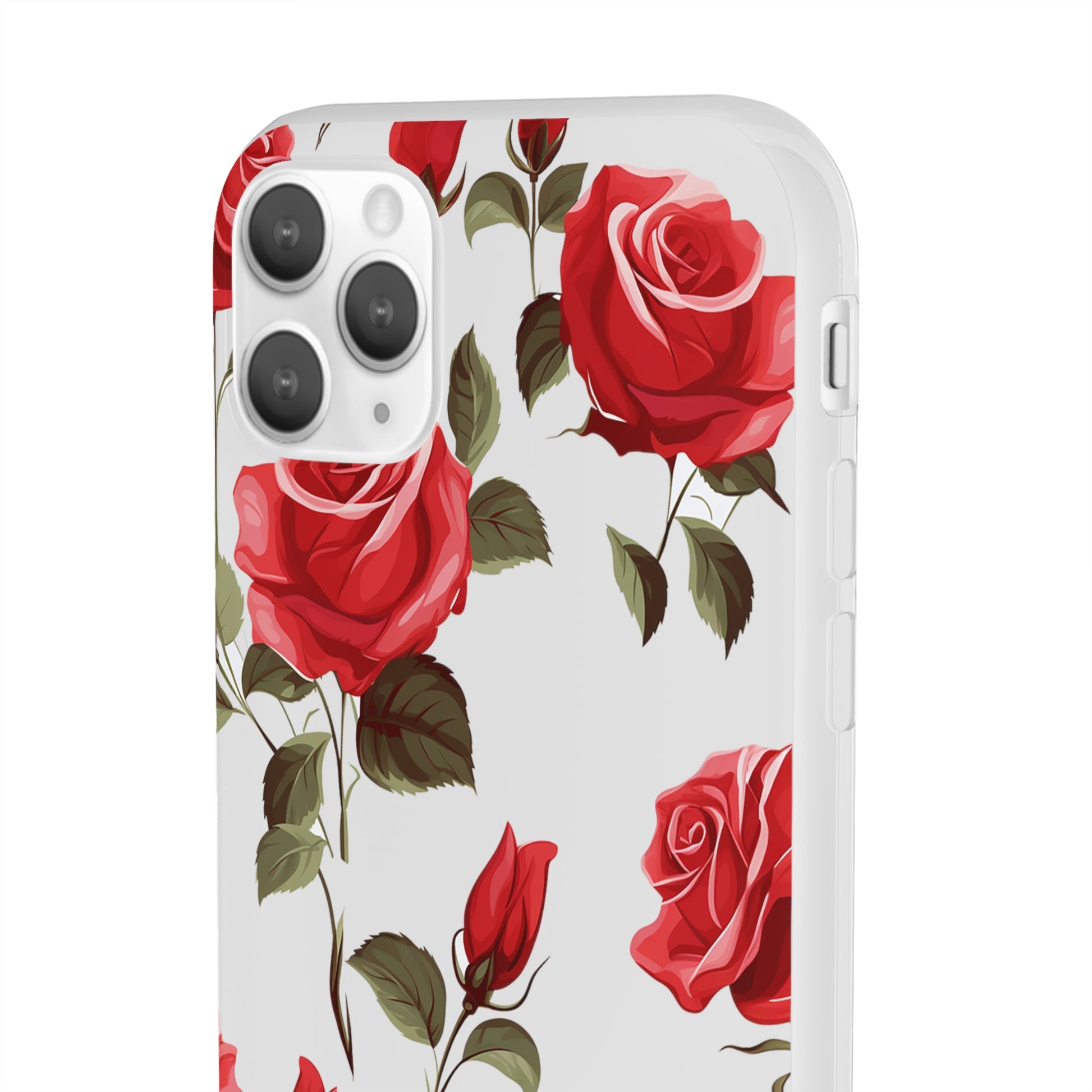 Keywords: roses, floral design, flexible case, delicate roses, phone protection, timeless elegance, rose pattern, smartphone accessory, botanical beauty, nature-inspired, slim-fit case, floral phone cover.
