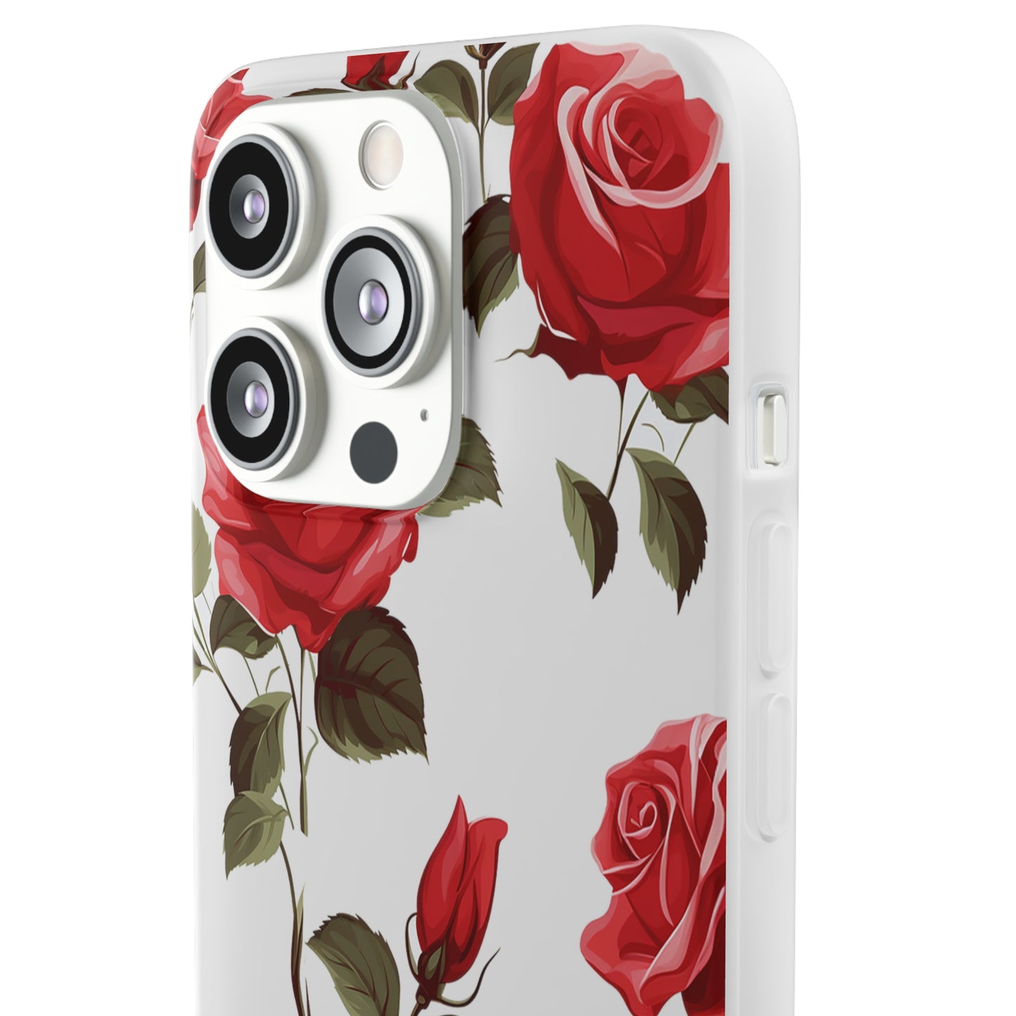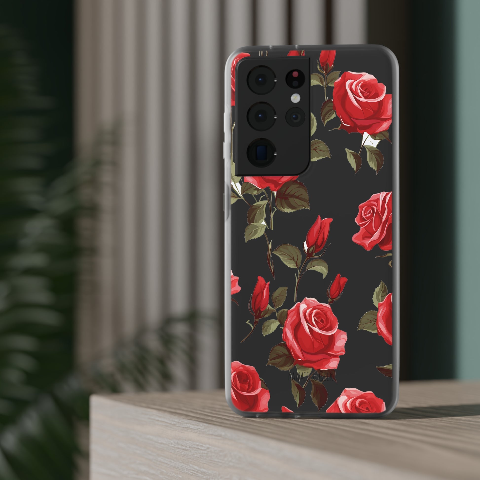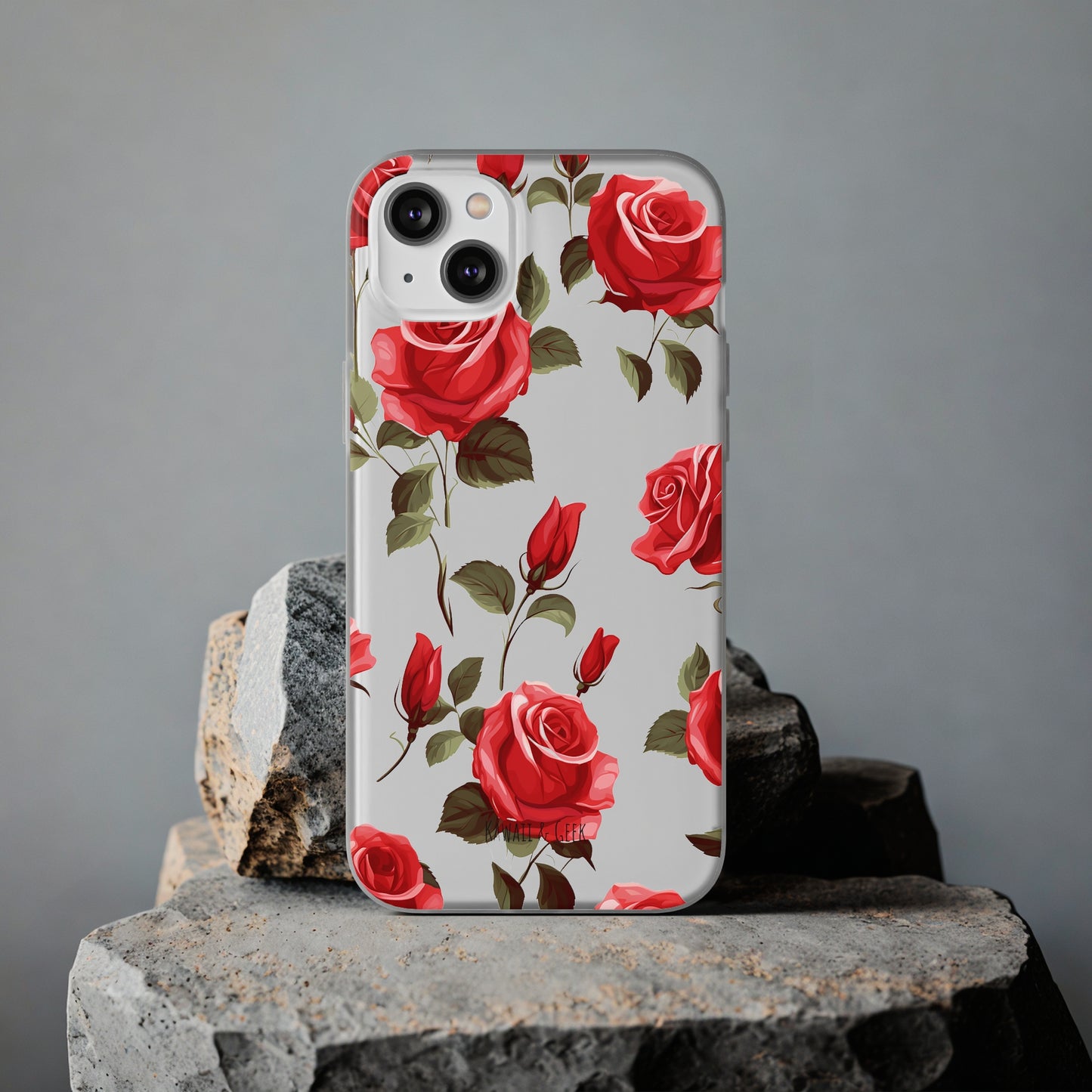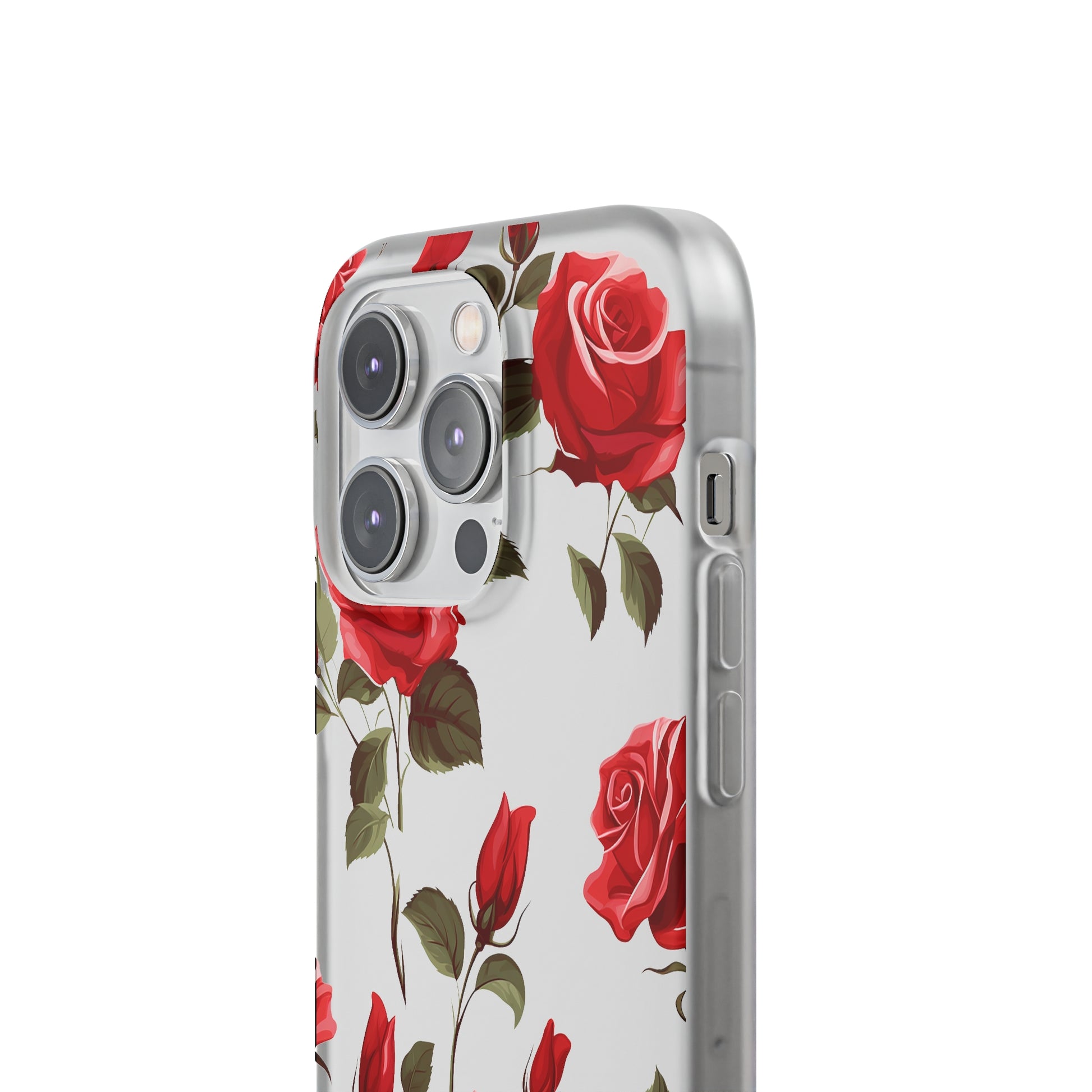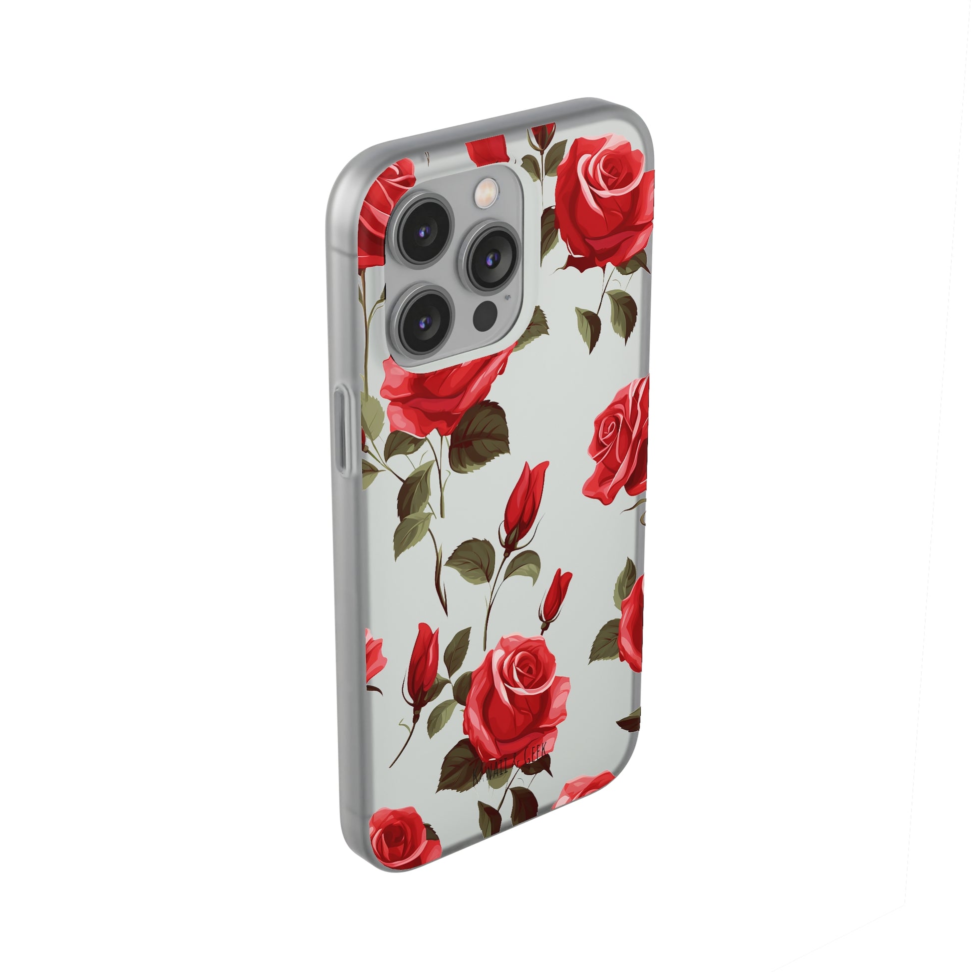 Keywords: roses, floral design, flexible case, delicate roses, phone protection, timeless elegance, rose pattern, smartphone accessory, botanical beauty, nature-inspired, slim-fit case, floral phone cover.