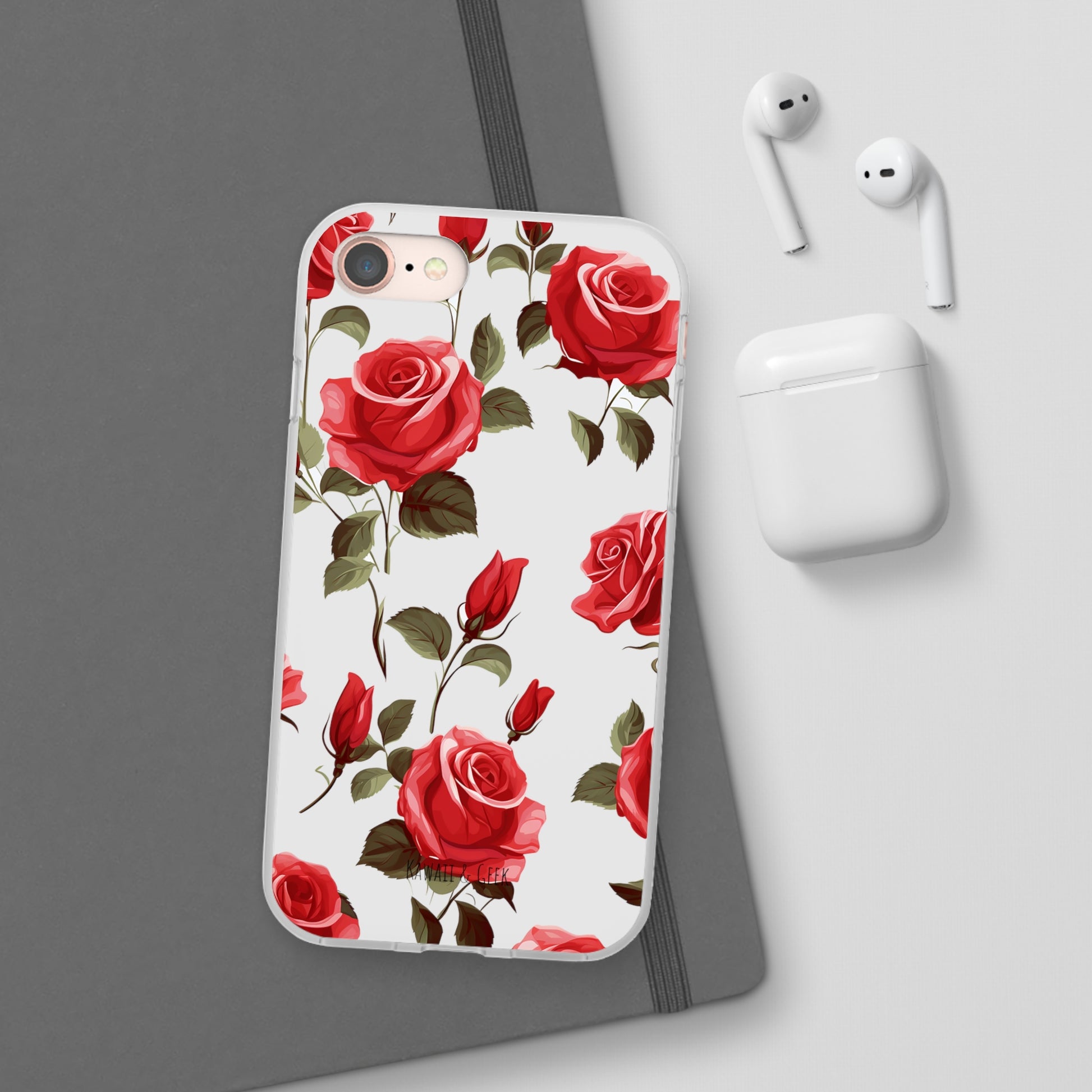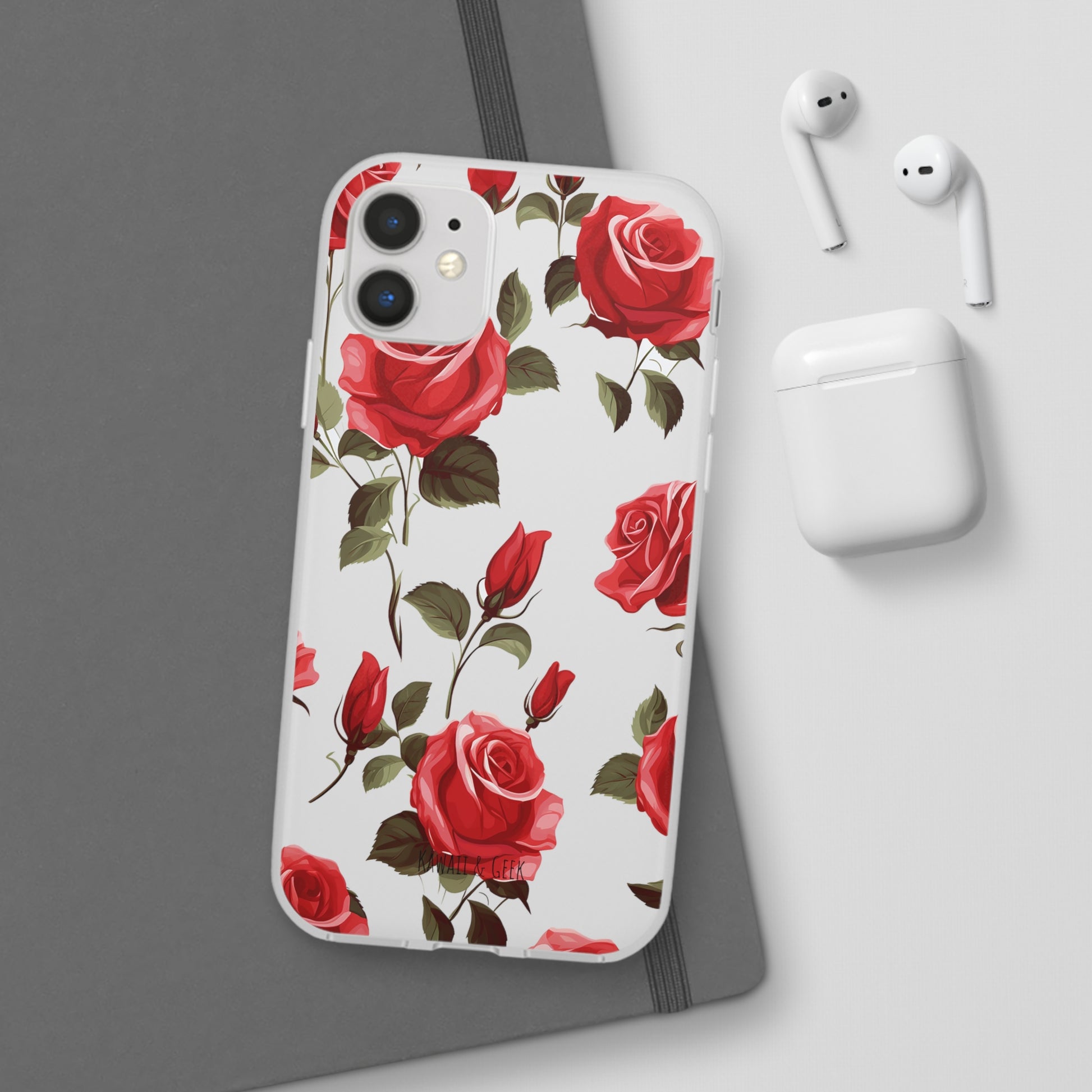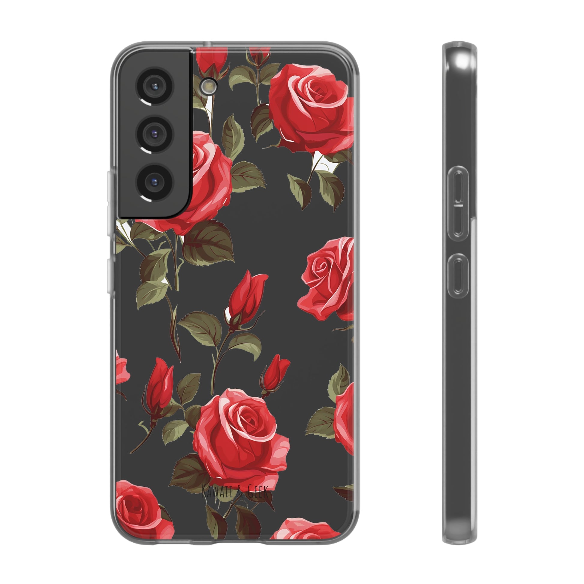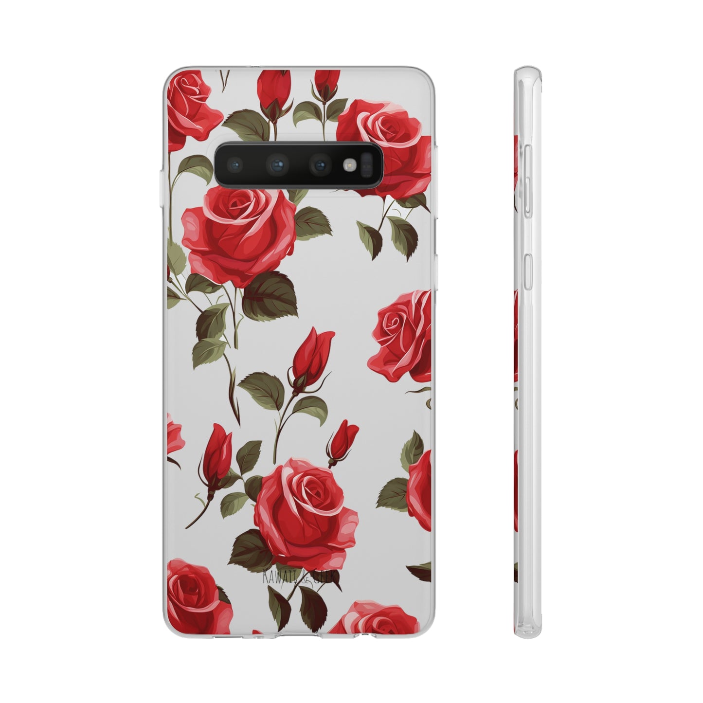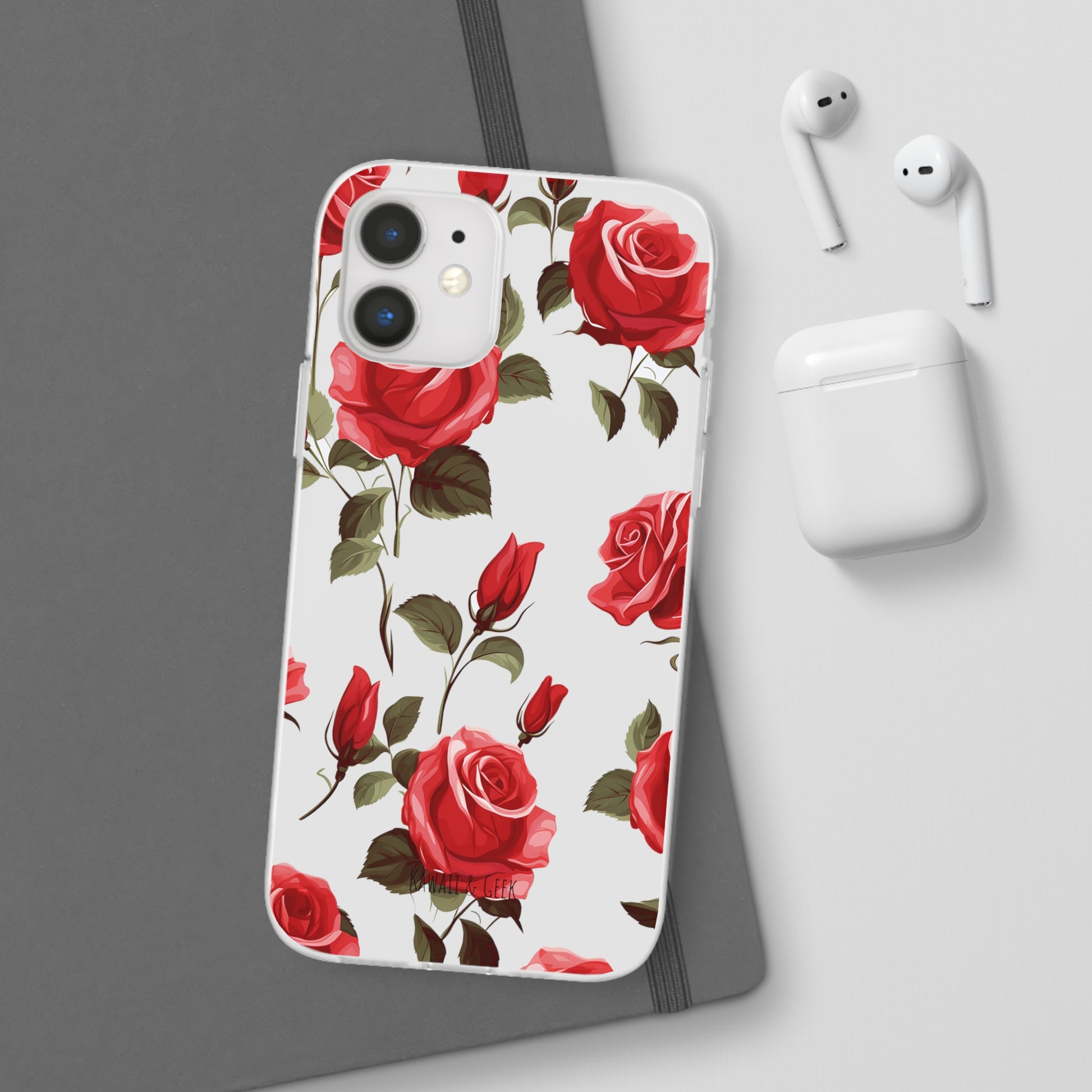 Keywords: roses, floral design, flexible case, delicate roses, phone protection, timeless elegance, rose pattern, smartphone accessory, botanical beauty, nature-inspired, slim-fit case, floral phone cover.