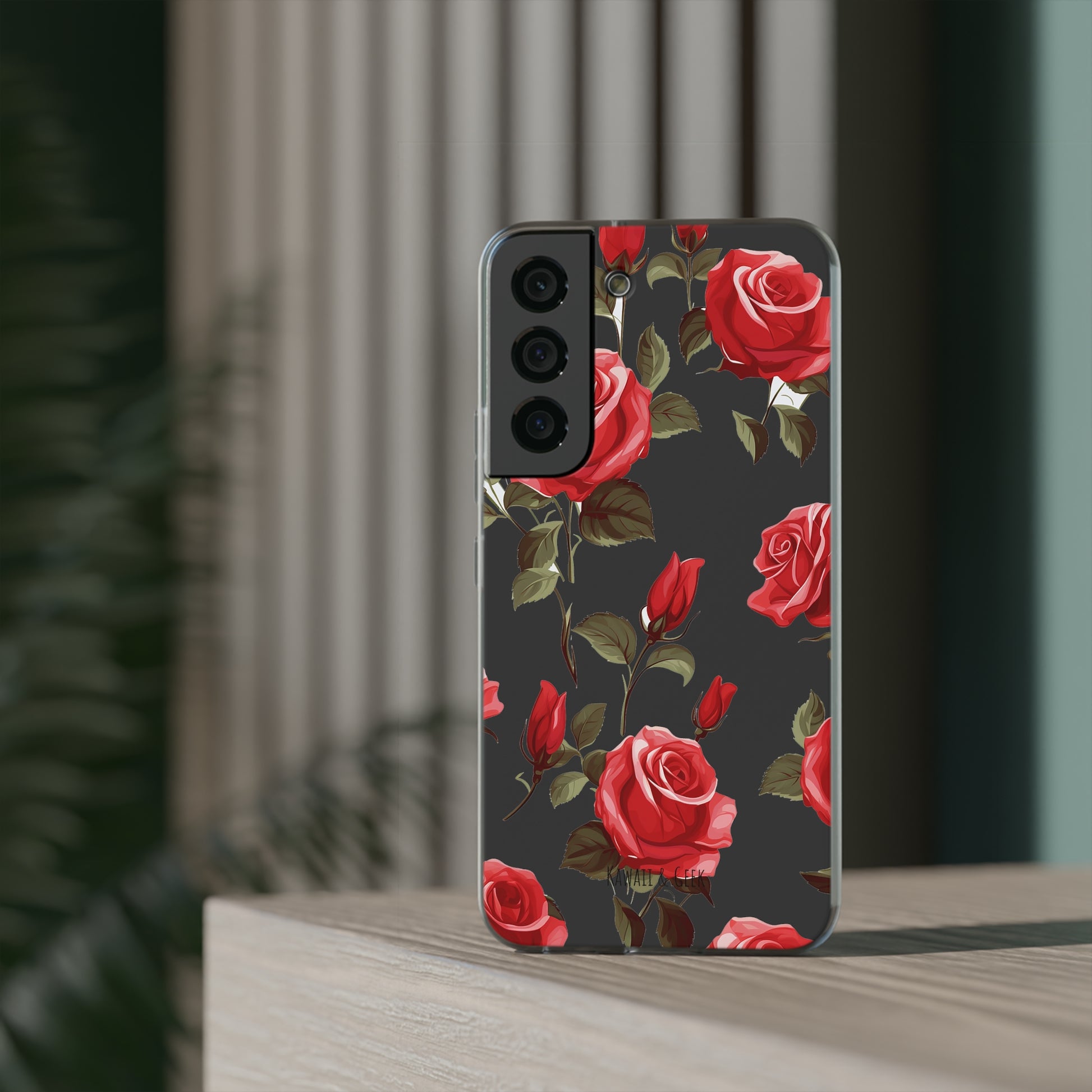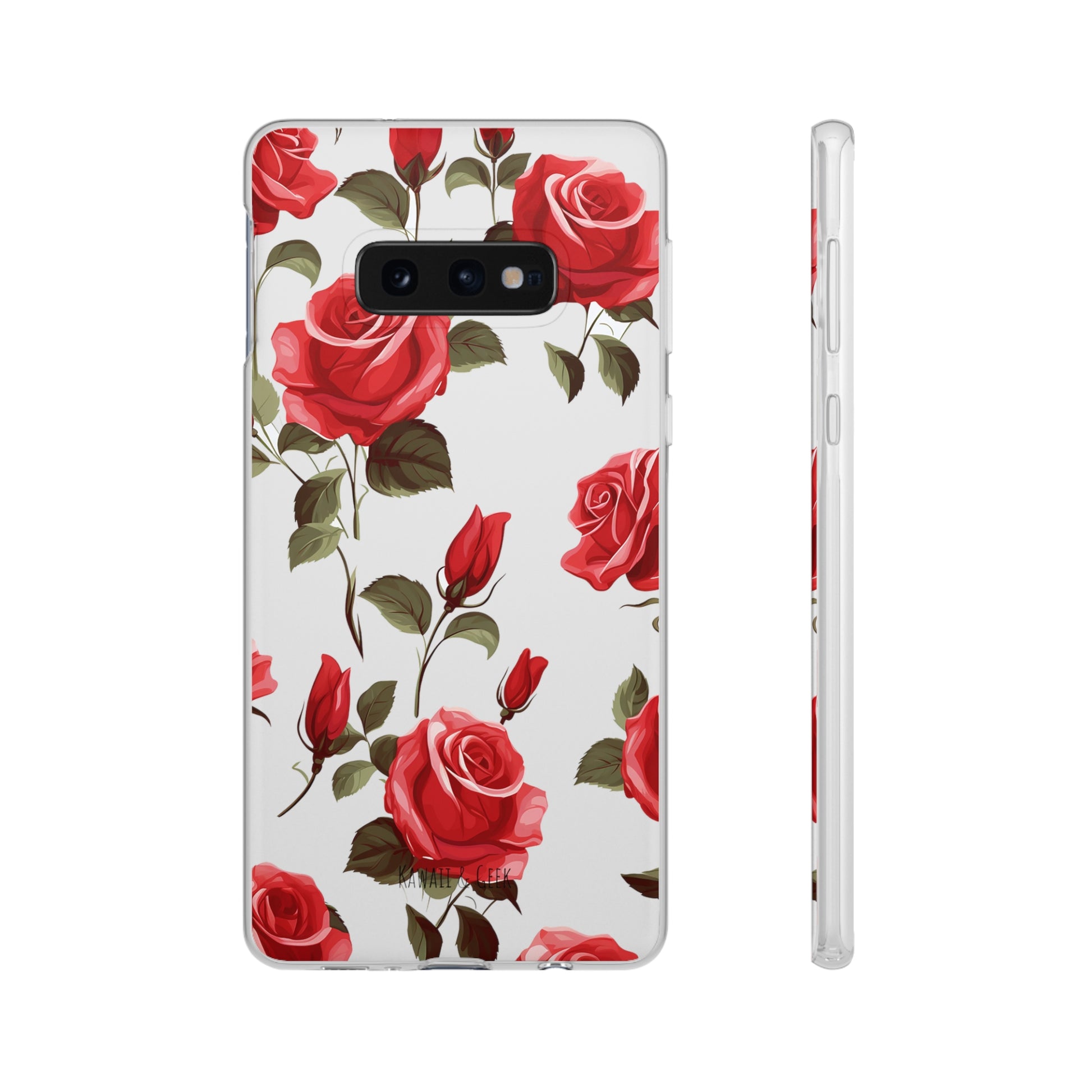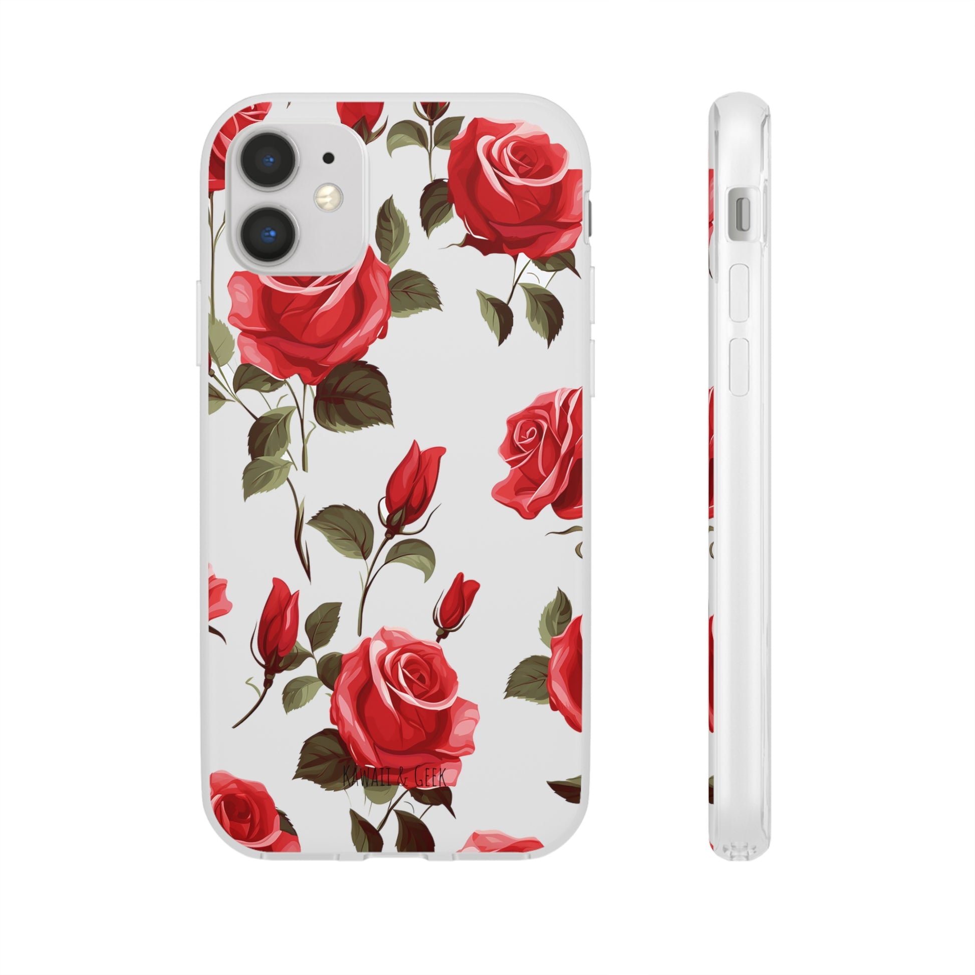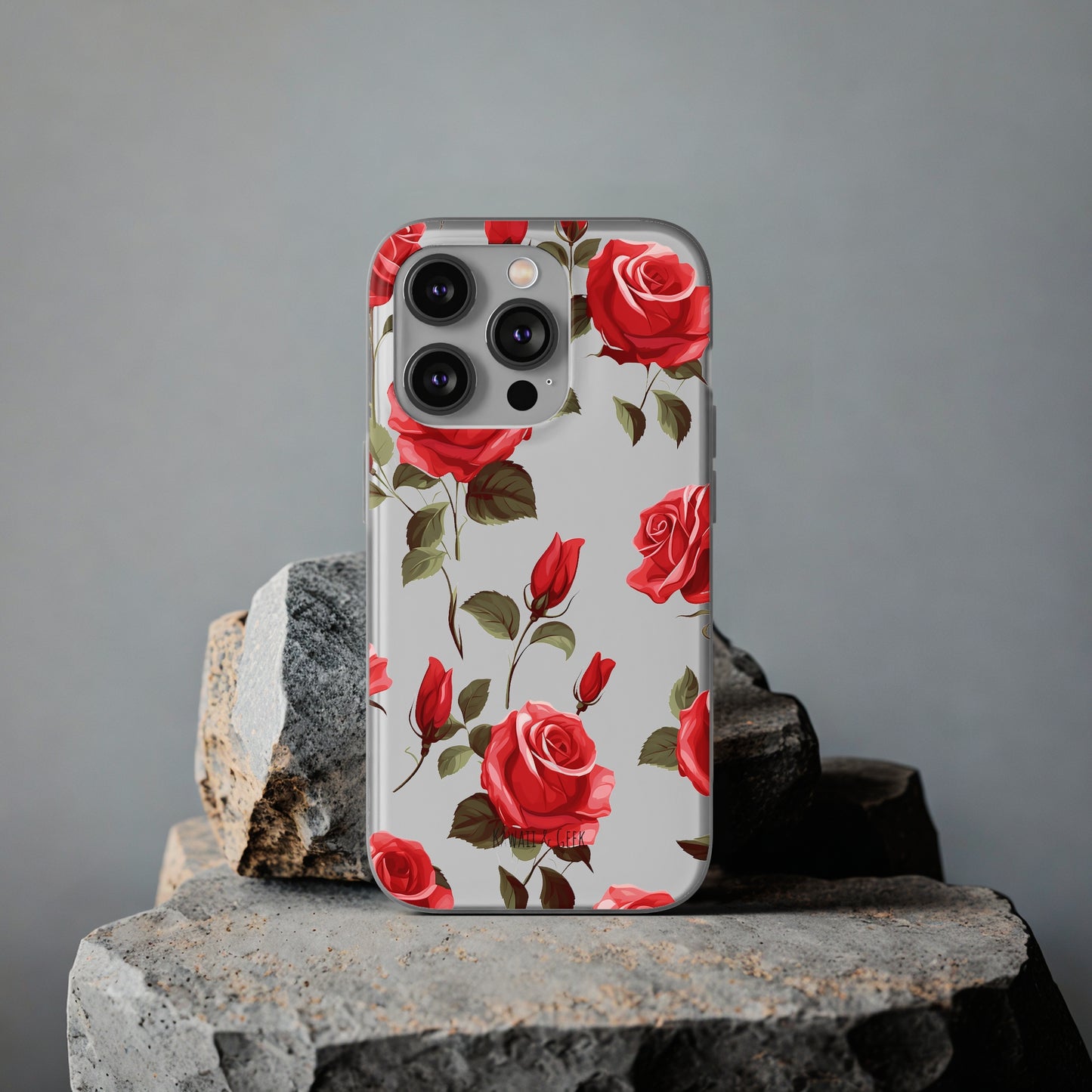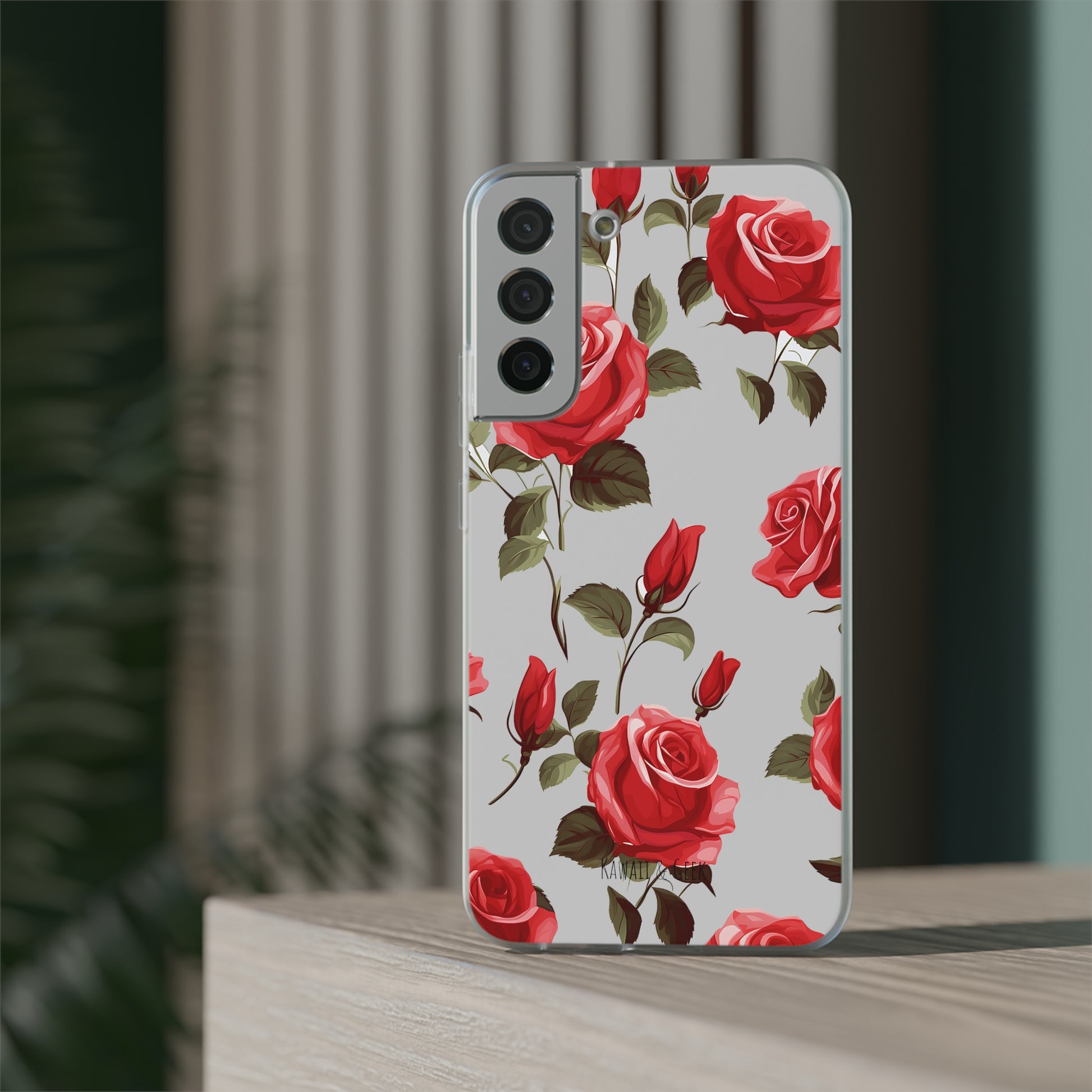 Keywords: roses, floral design, flexible case, delicate roses, phone protection, timeless elegance, rose pattern, smartphone accessory, botanical beauty, nature-inspired, slim-fit case, floral phone cover.