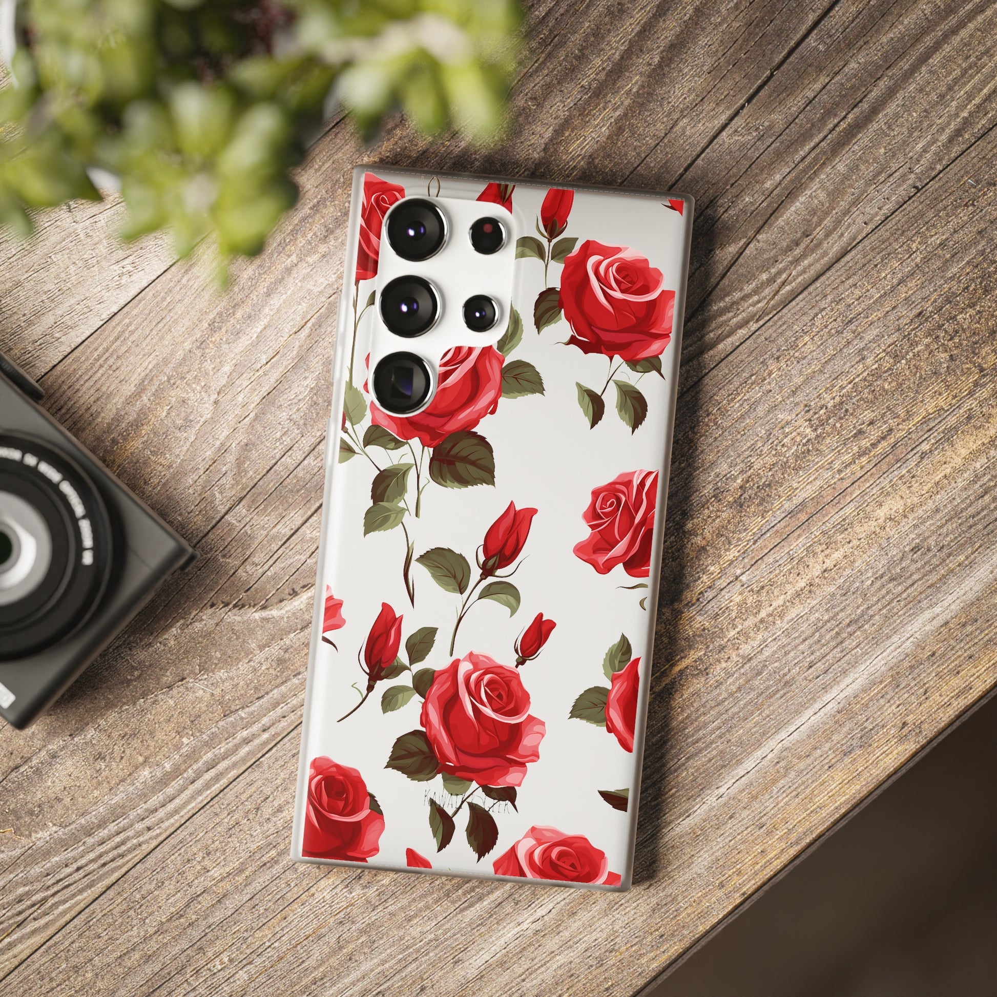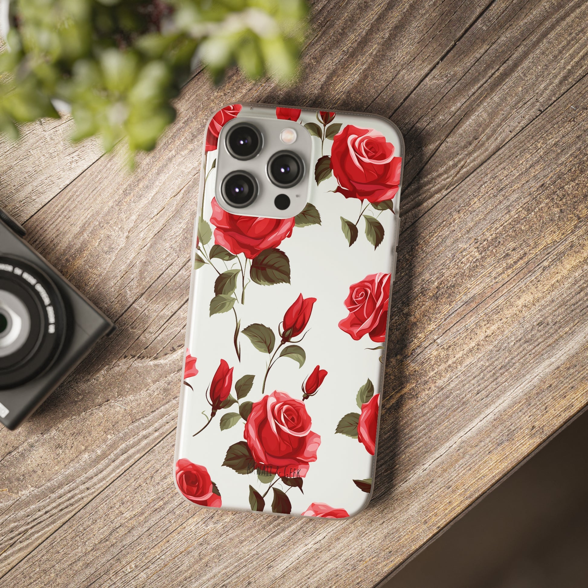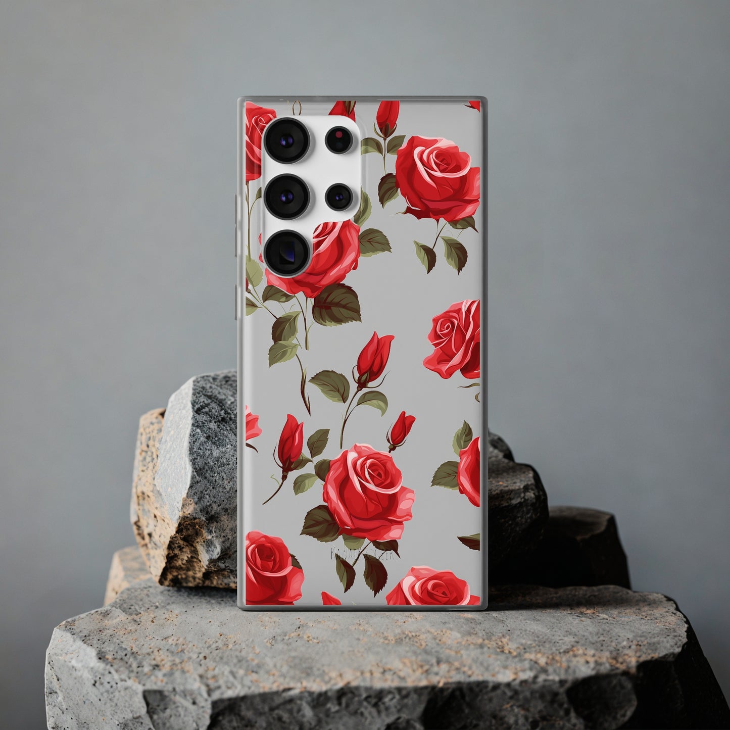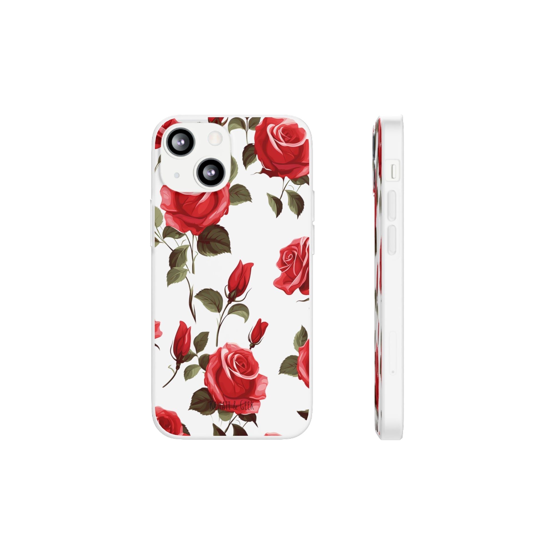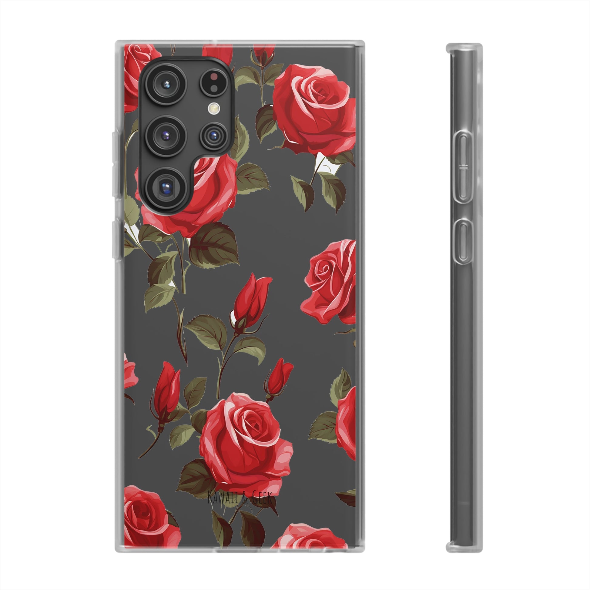 Keywords: roses, floral design, flexible case, delicate roses, phone protection, timeless elegance, rose pattern, smartphone accessory, botanical beauty, nature-inspired, slim-fit case, floral phone cover.