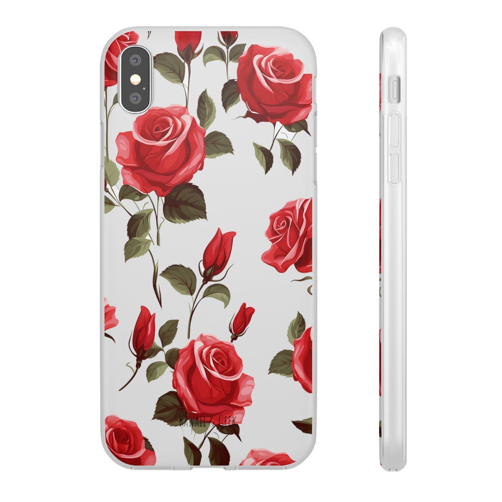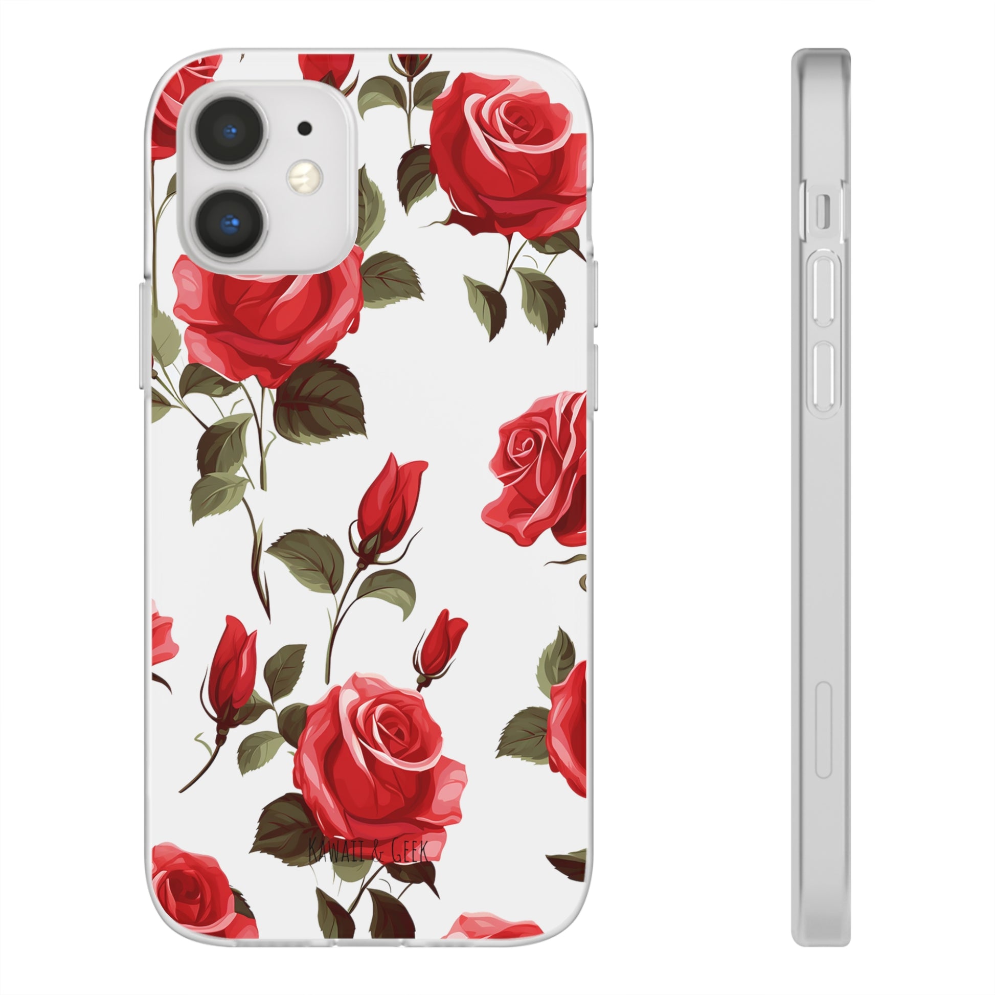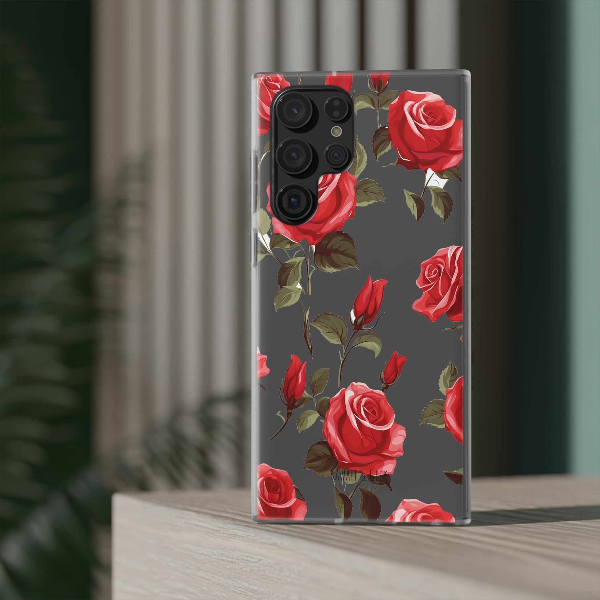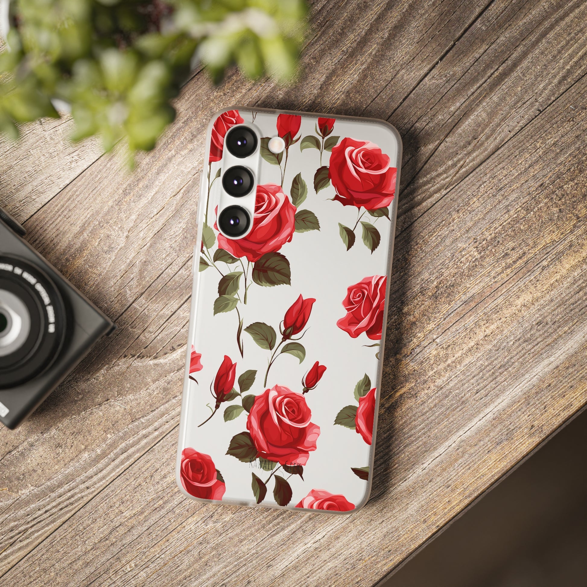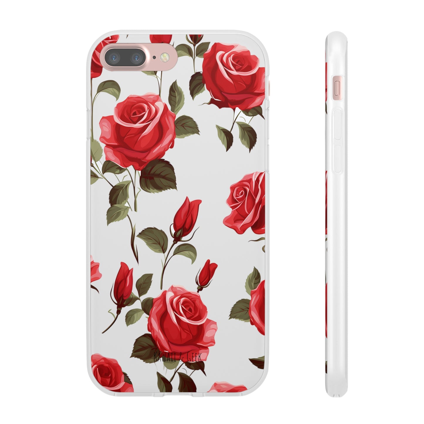 Keywords: roses, floral design, flexible case, delicate roses, phone protection, timeless elegance, rose pattern, smartphone accessory, botanical beauty, nature-inspired, slim-fit case, floral phone cover.