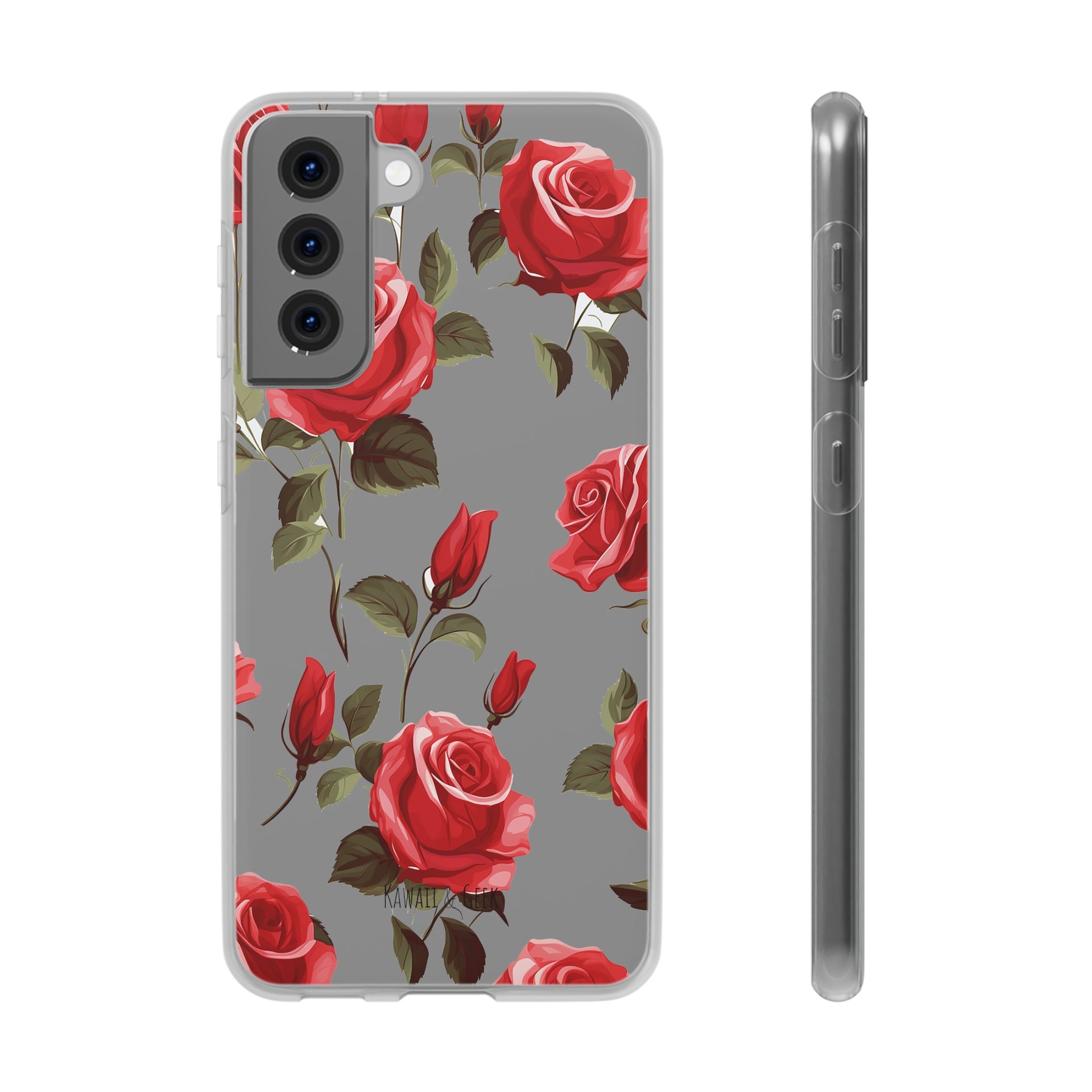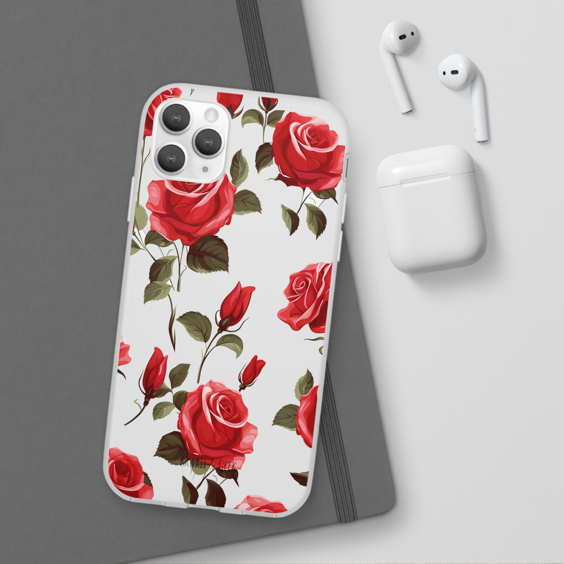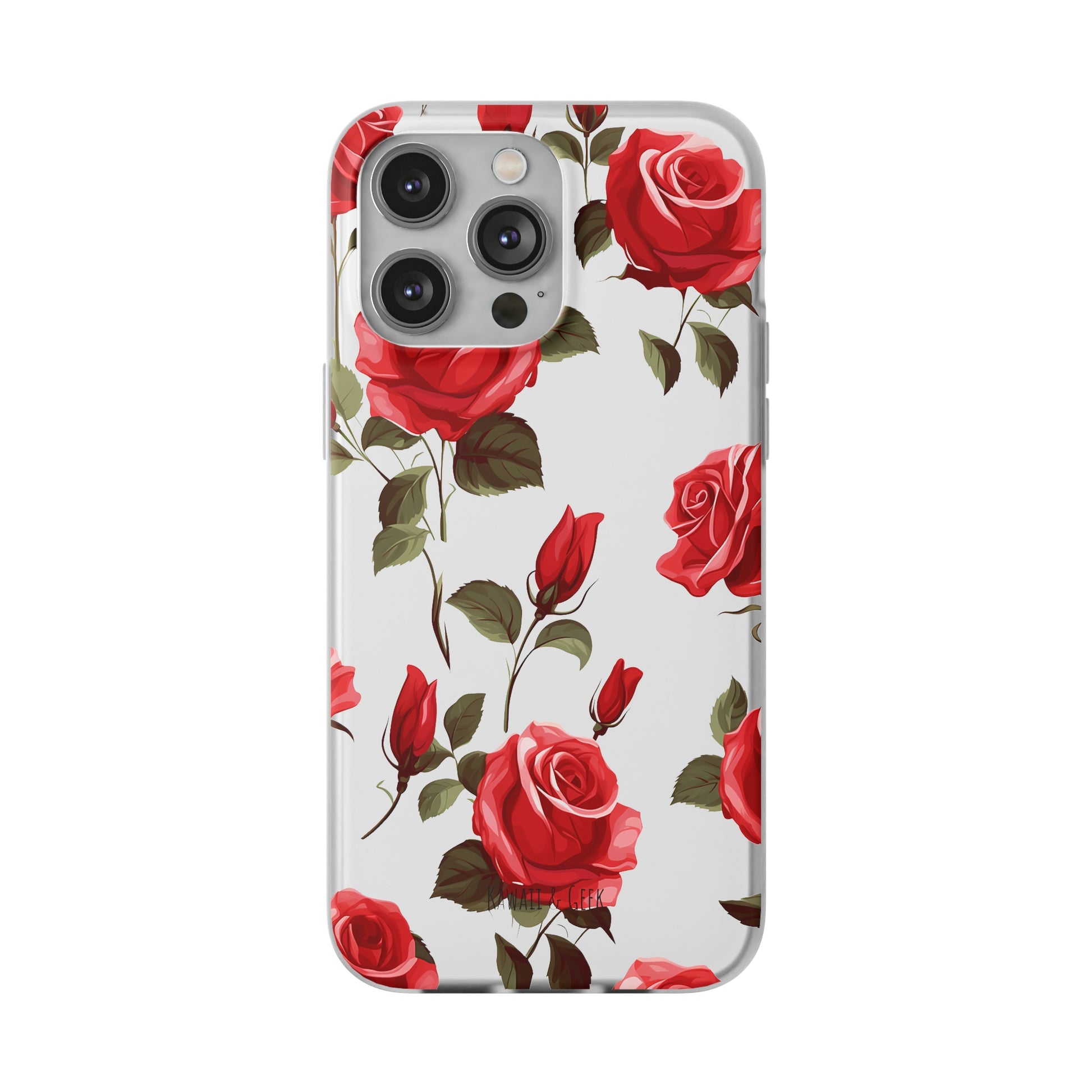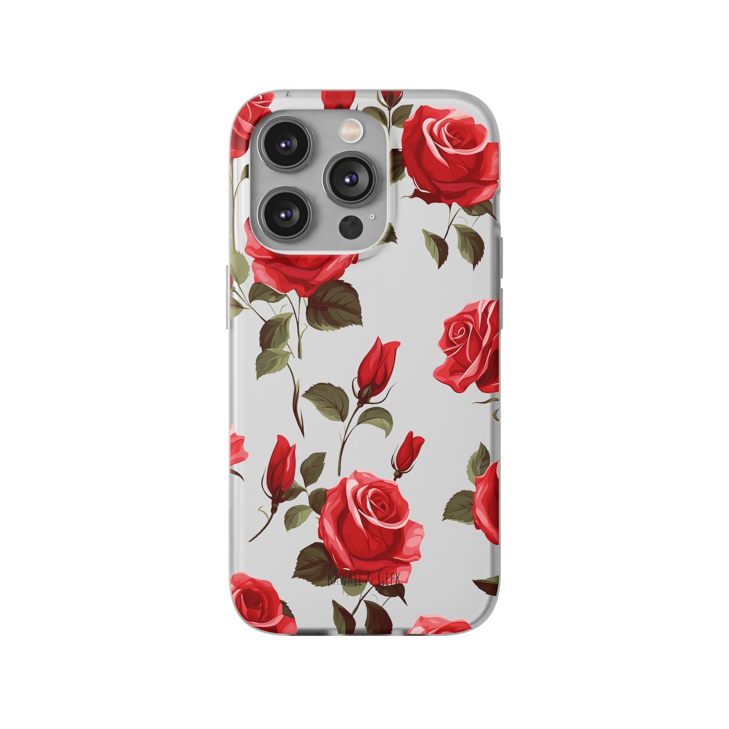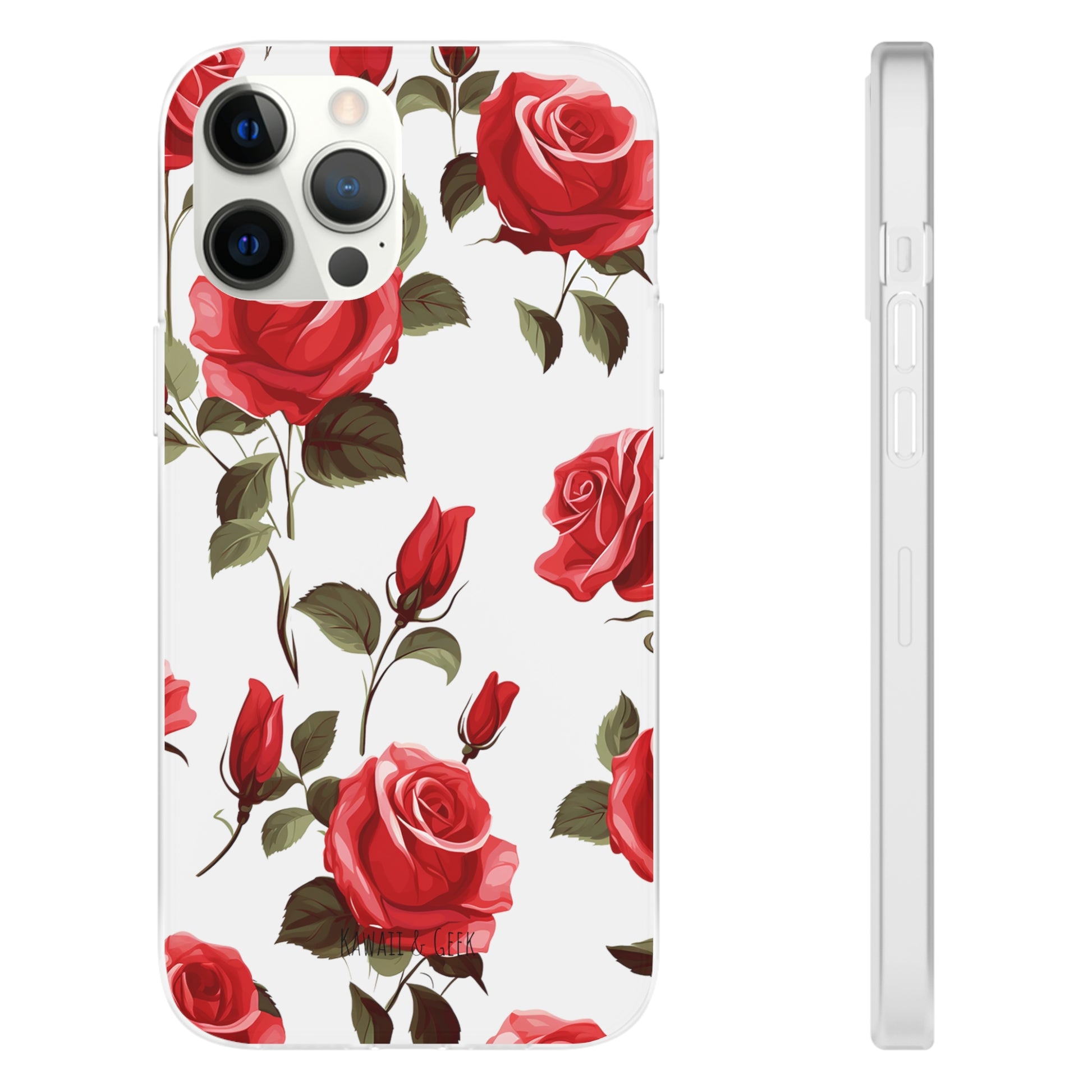 Keywords: roses, floral design, flexible case, delicate roses, phone protection, timeless elegance, rose pattern, smartphone accessory, botanical beauty, nature-inspired, slim-fit case, floral phone cover.