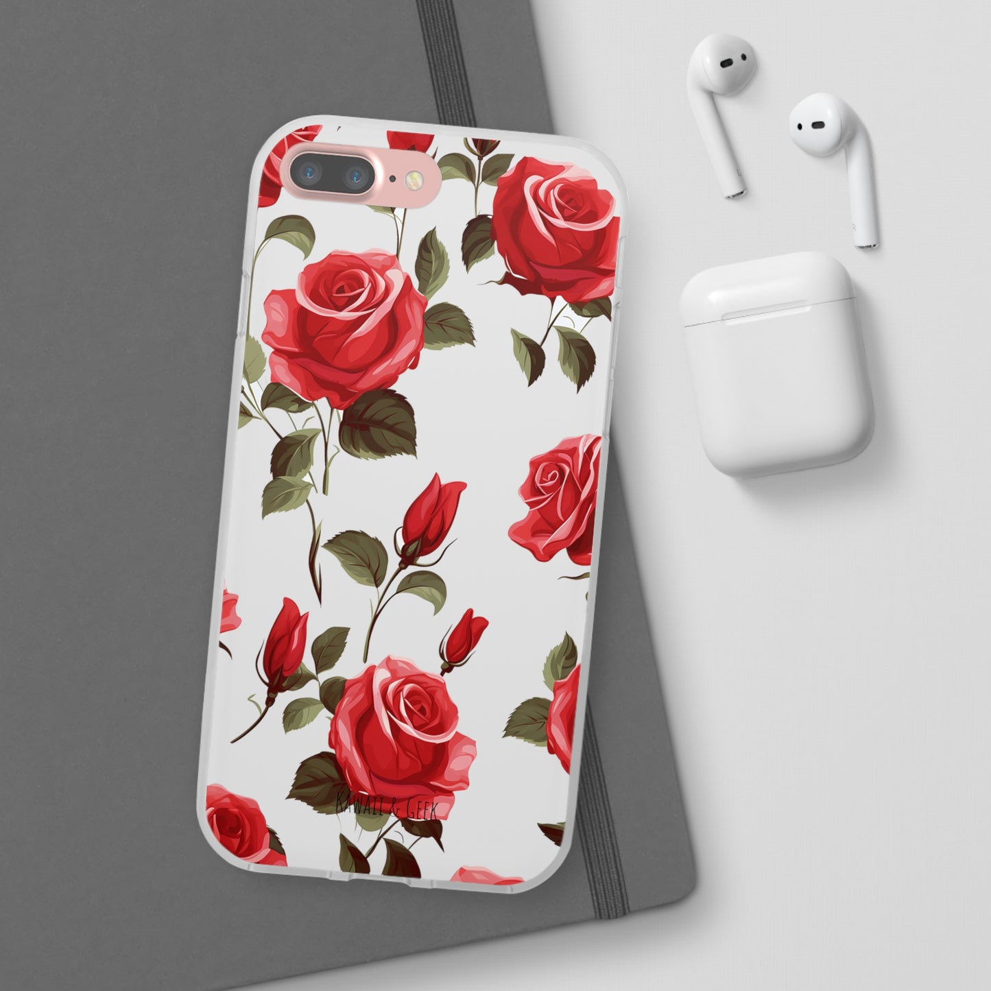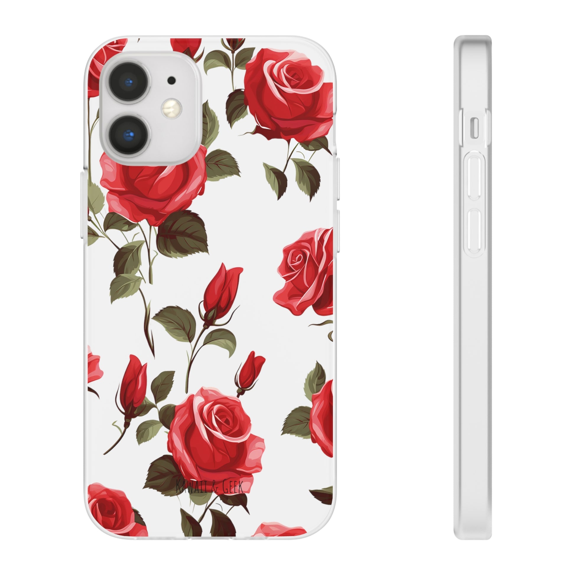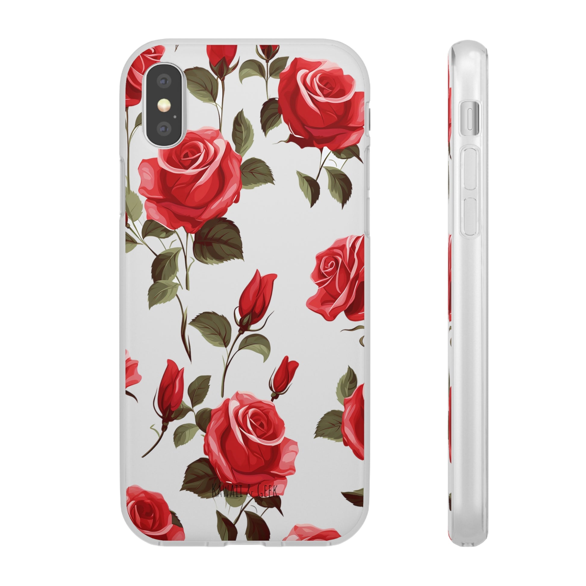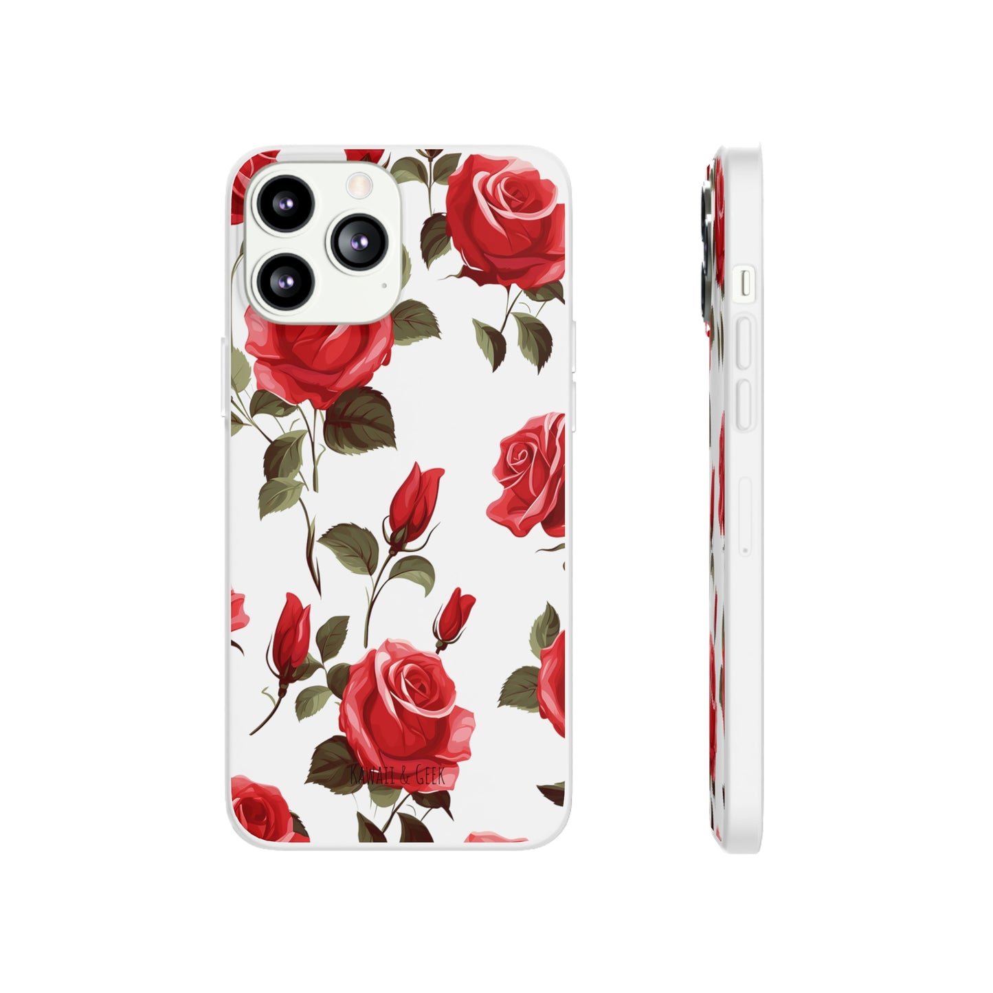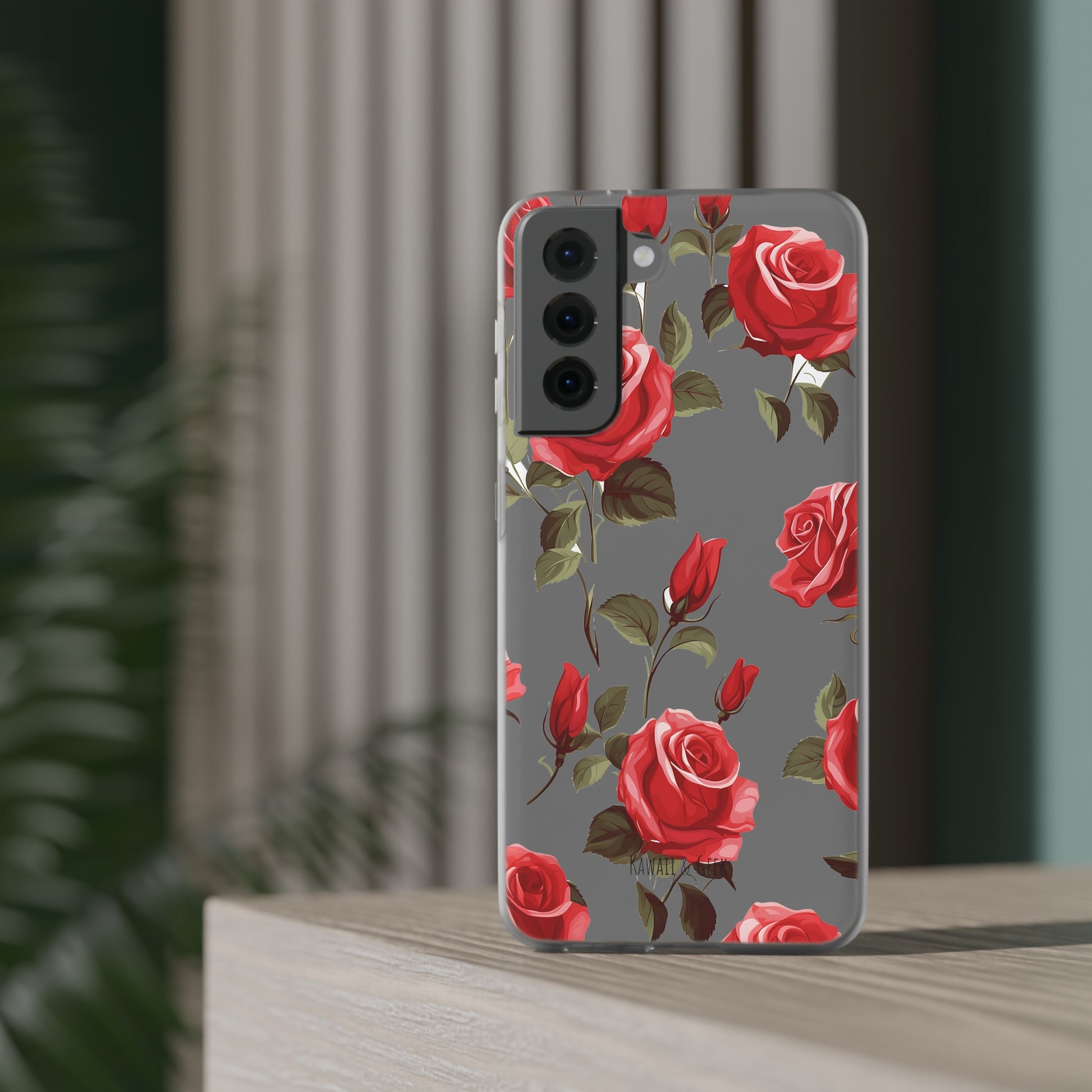 Keywords: roses, floral design, flexible case, delicate roses, phone protection, timeless elegance, rose pattern, smartphone accessory, botanical beauty, nature-inspired, slim-fit case, floral phone cover.