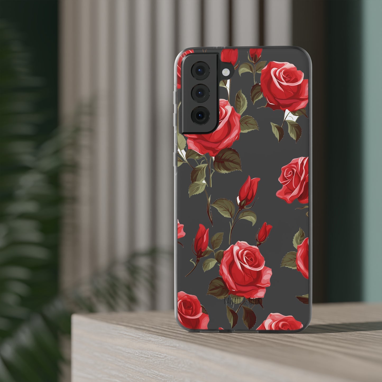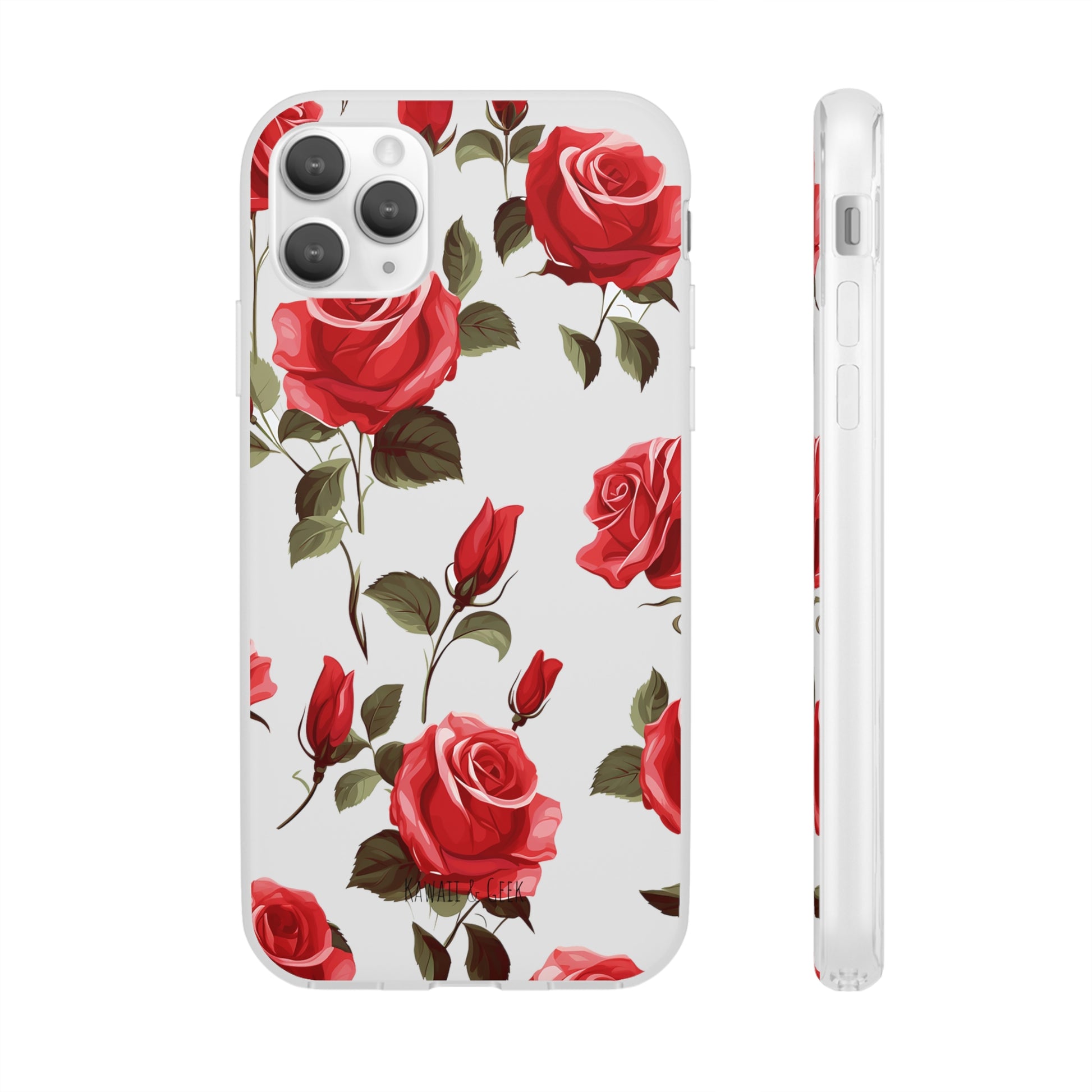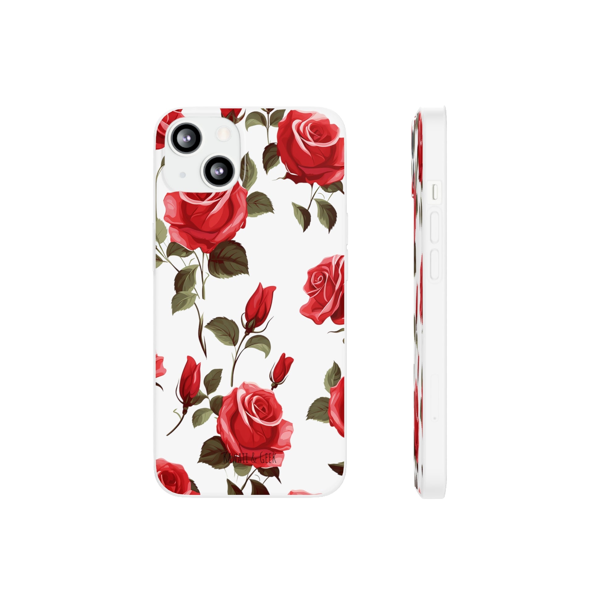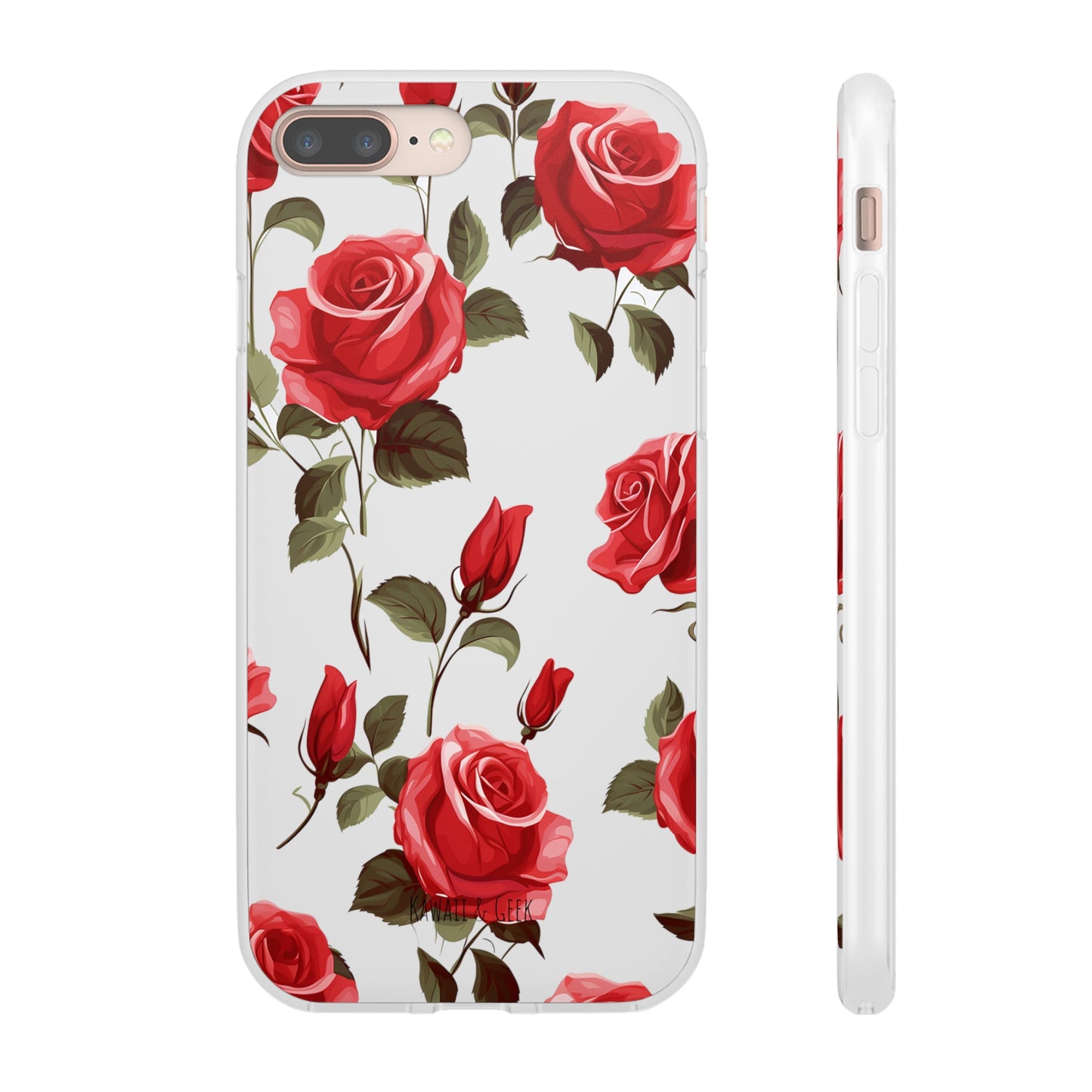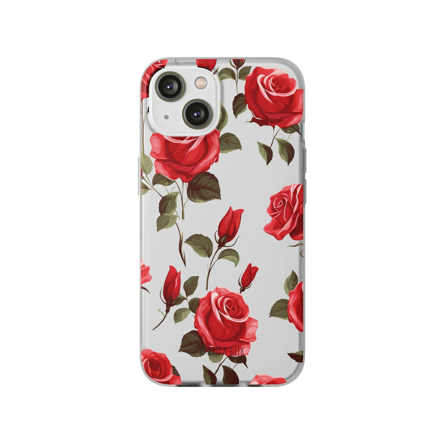 Keywords: roses, floral design, flexible case, delicate roses, phone protection, timeless elegance, rose pattern, smartphone accessory, botanical beauty, nature-inspired, slim-fit case, floral phone cover.