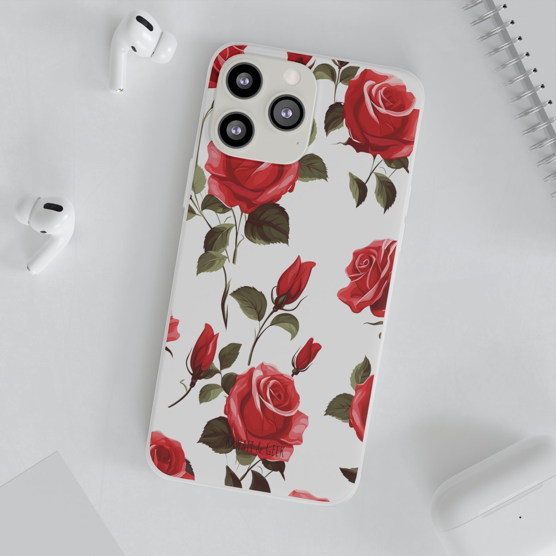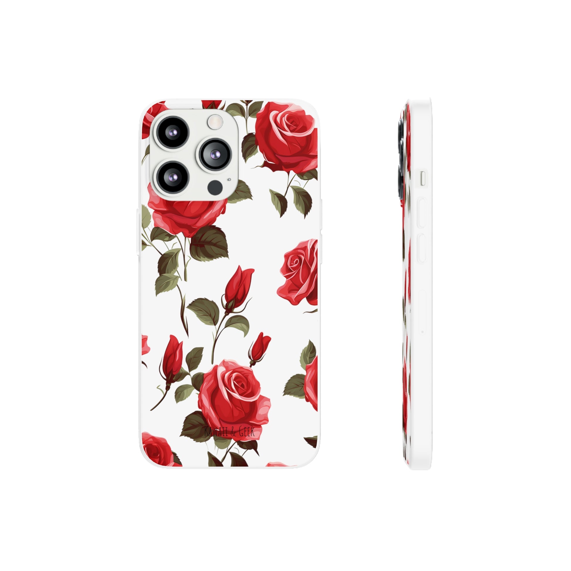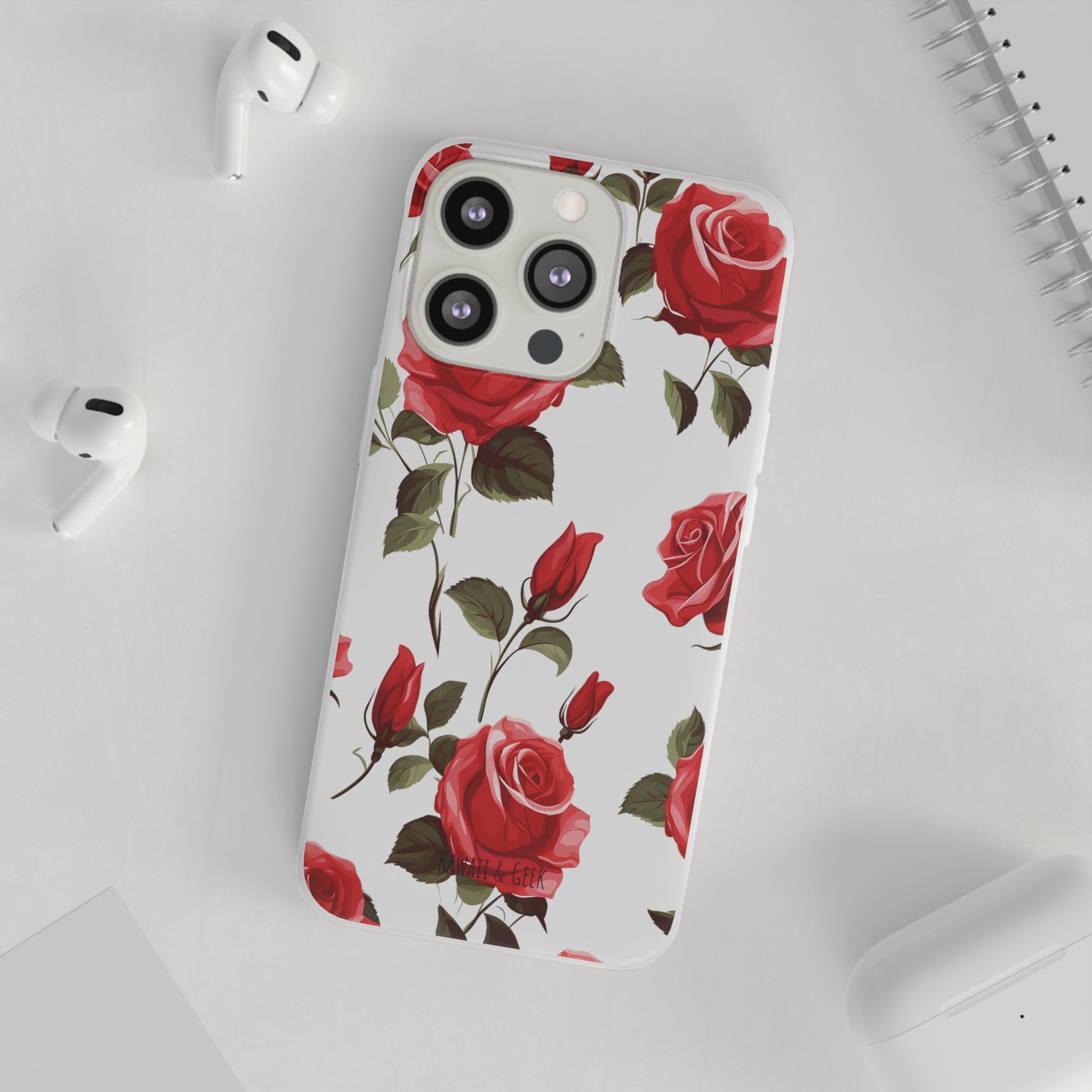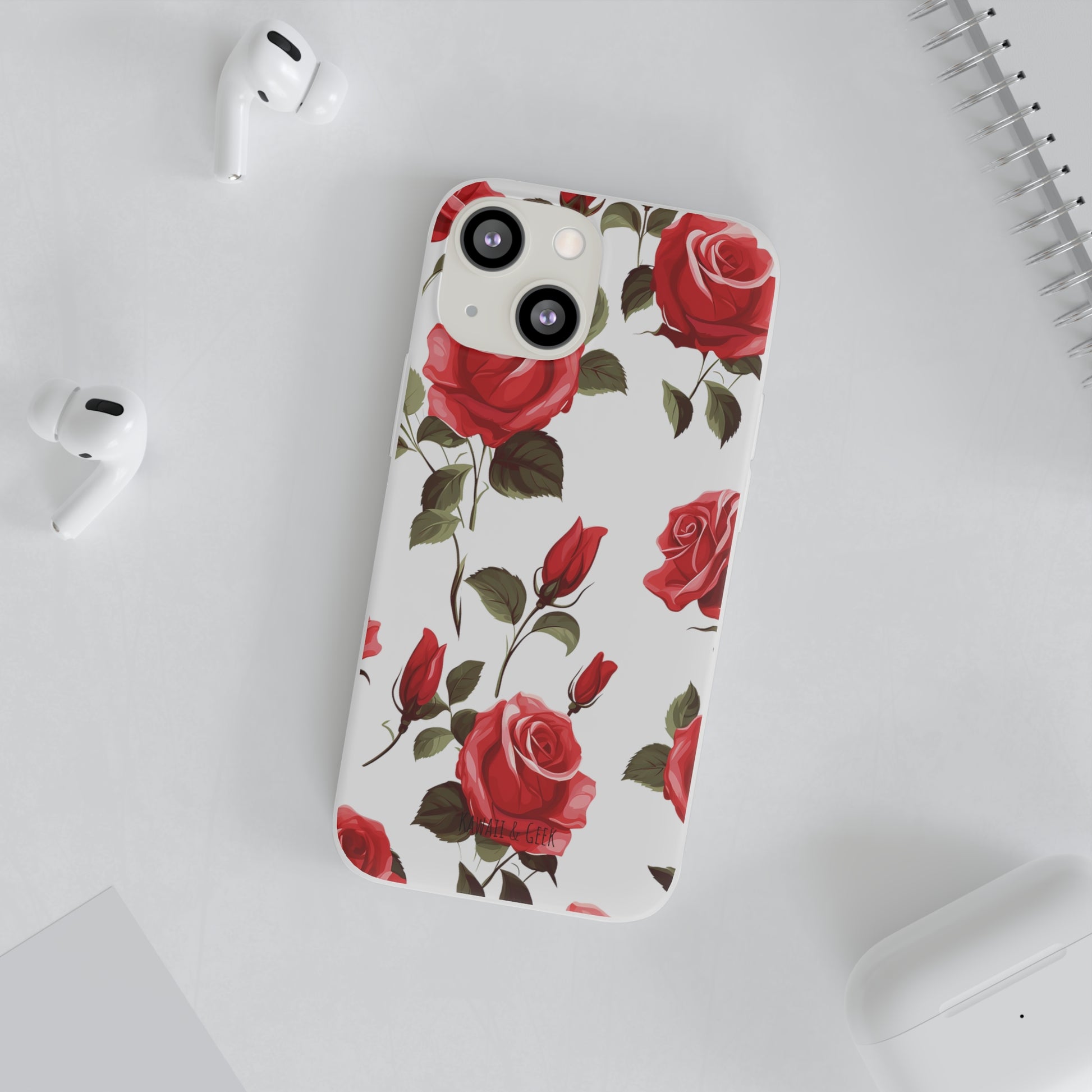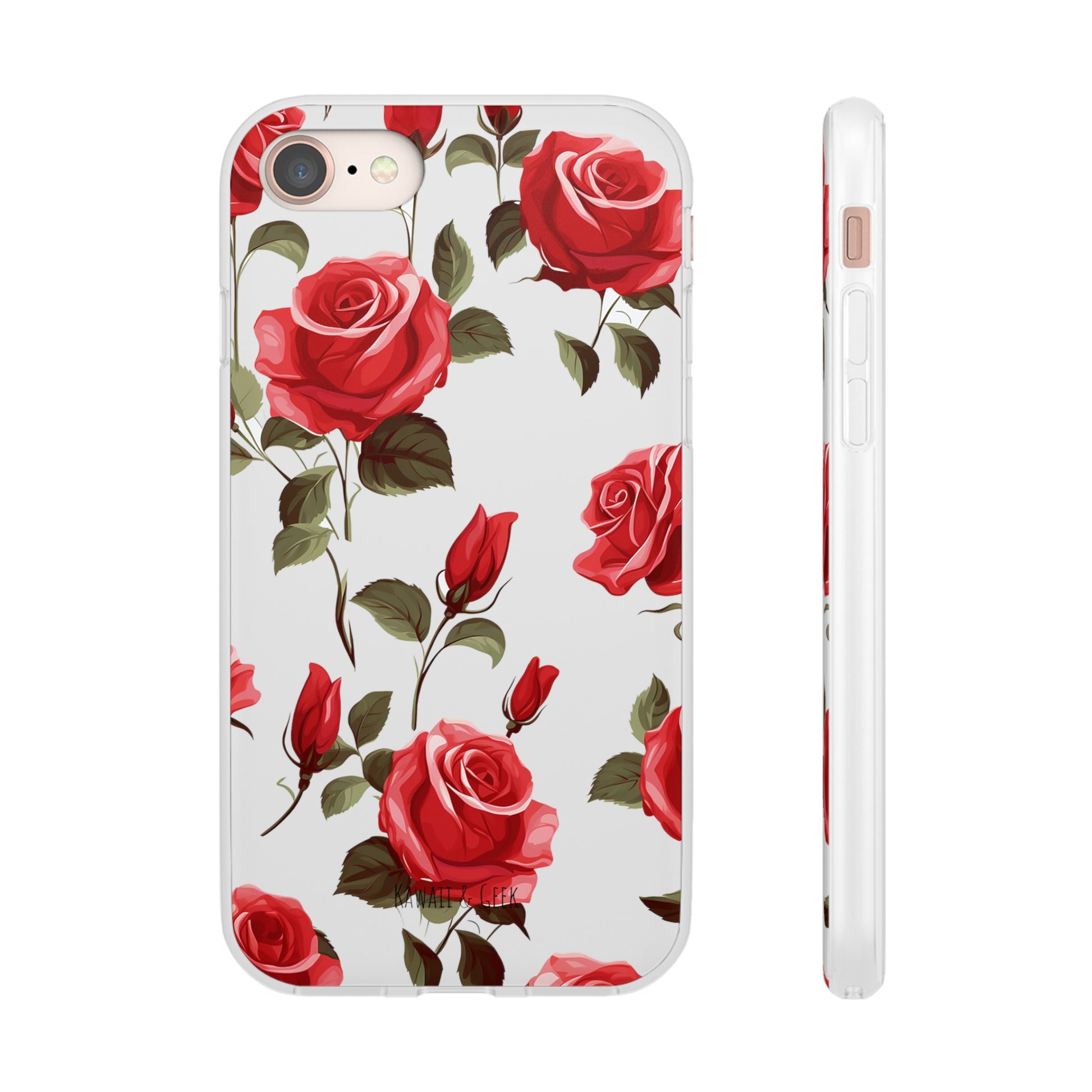 Keywords: roses, floral design, flexible case, delicate roses, phone protection, timeless elegance, rose pattern, smartphone accessory, botanical beauty, nature-inspired, slim-fit case, floral phone cover.