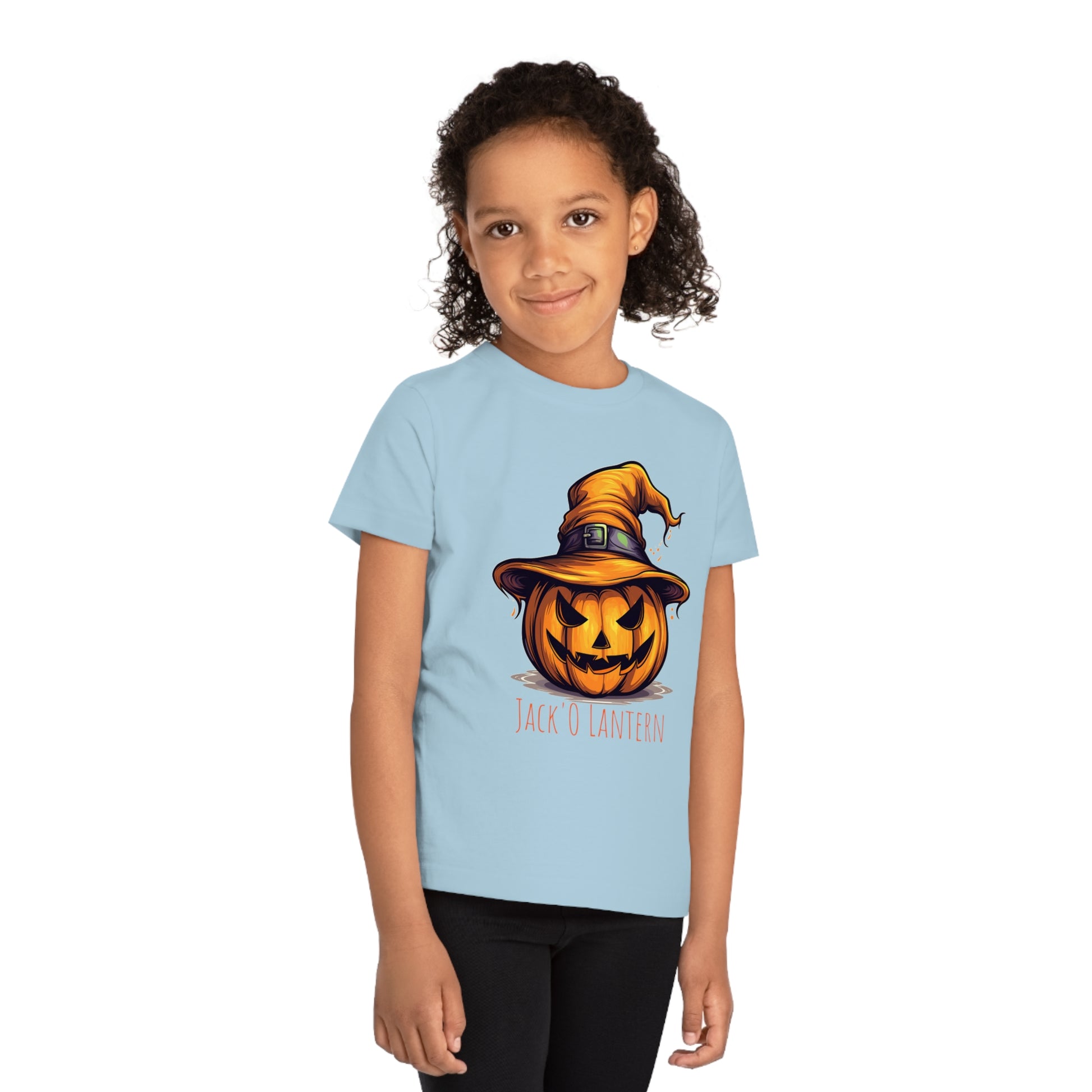 Let your little ones celebrate Halloween in sustainable style! Our eco-friendly kids t-shirt showcases a cheeky pumpkin with a sorcerer's hat, making it the ultimate "Jack O Lantern" fun tee. It's not just about fashion; it's about caring for the planet, one adorable shirt at a time.