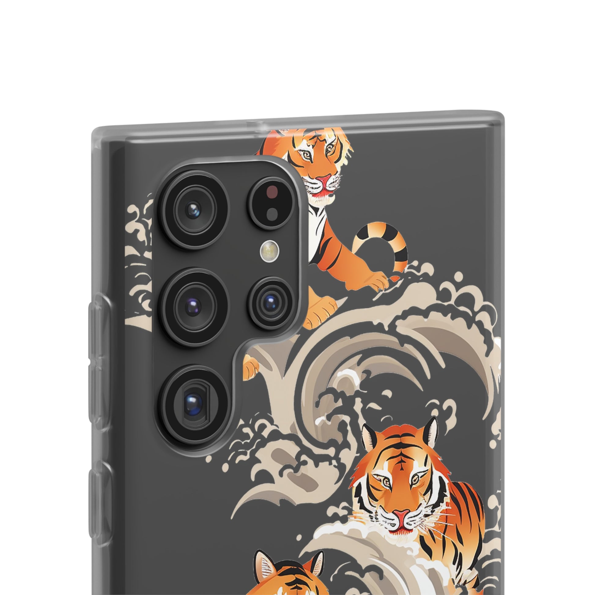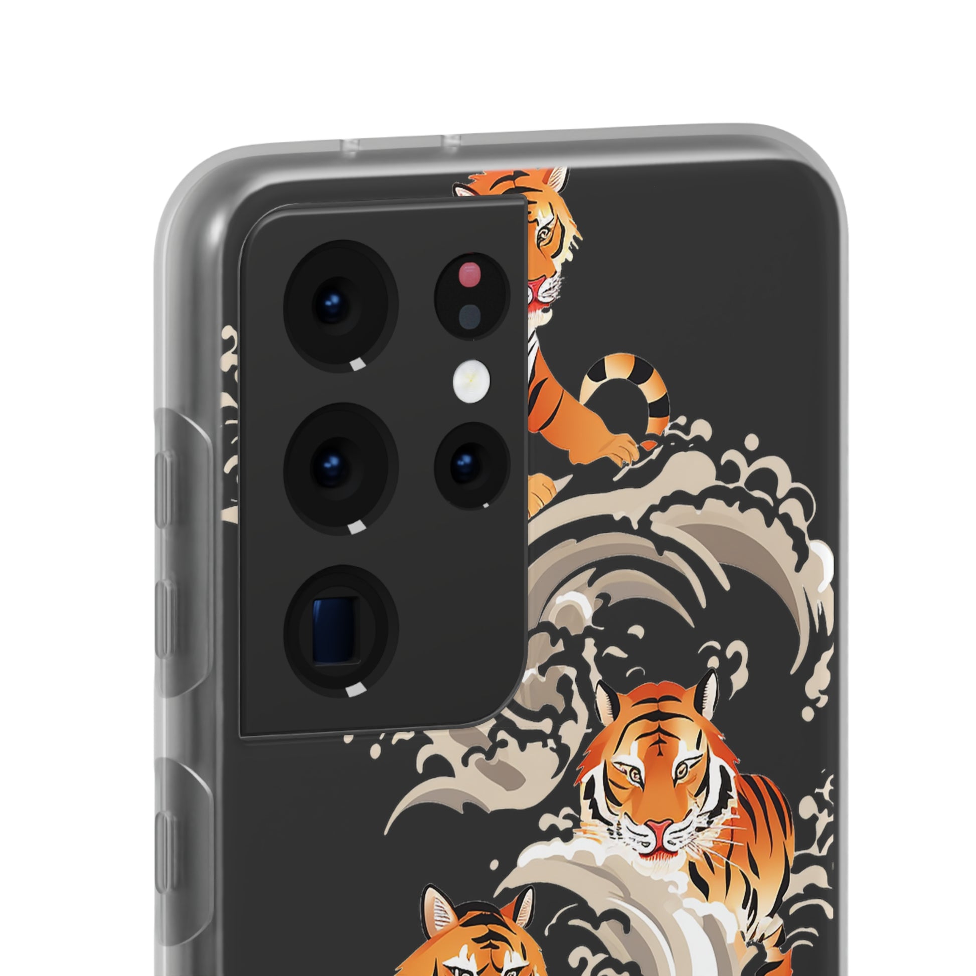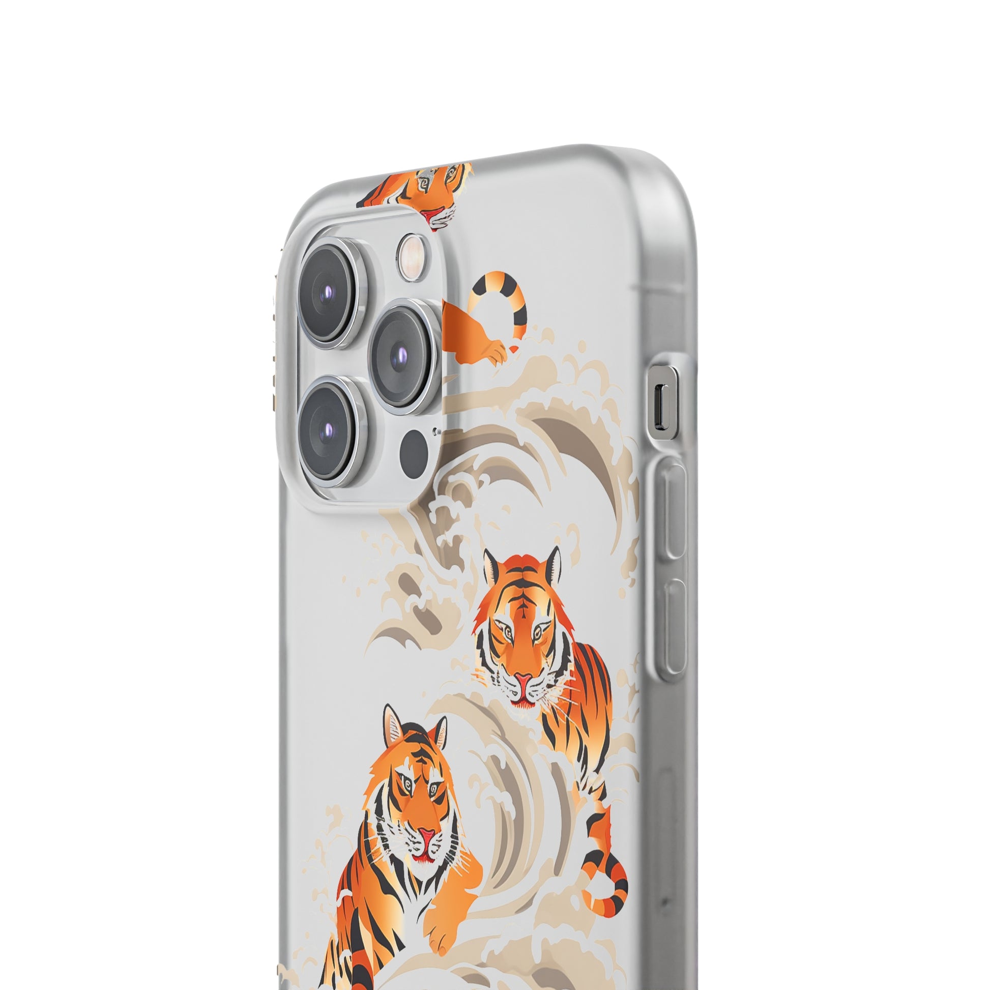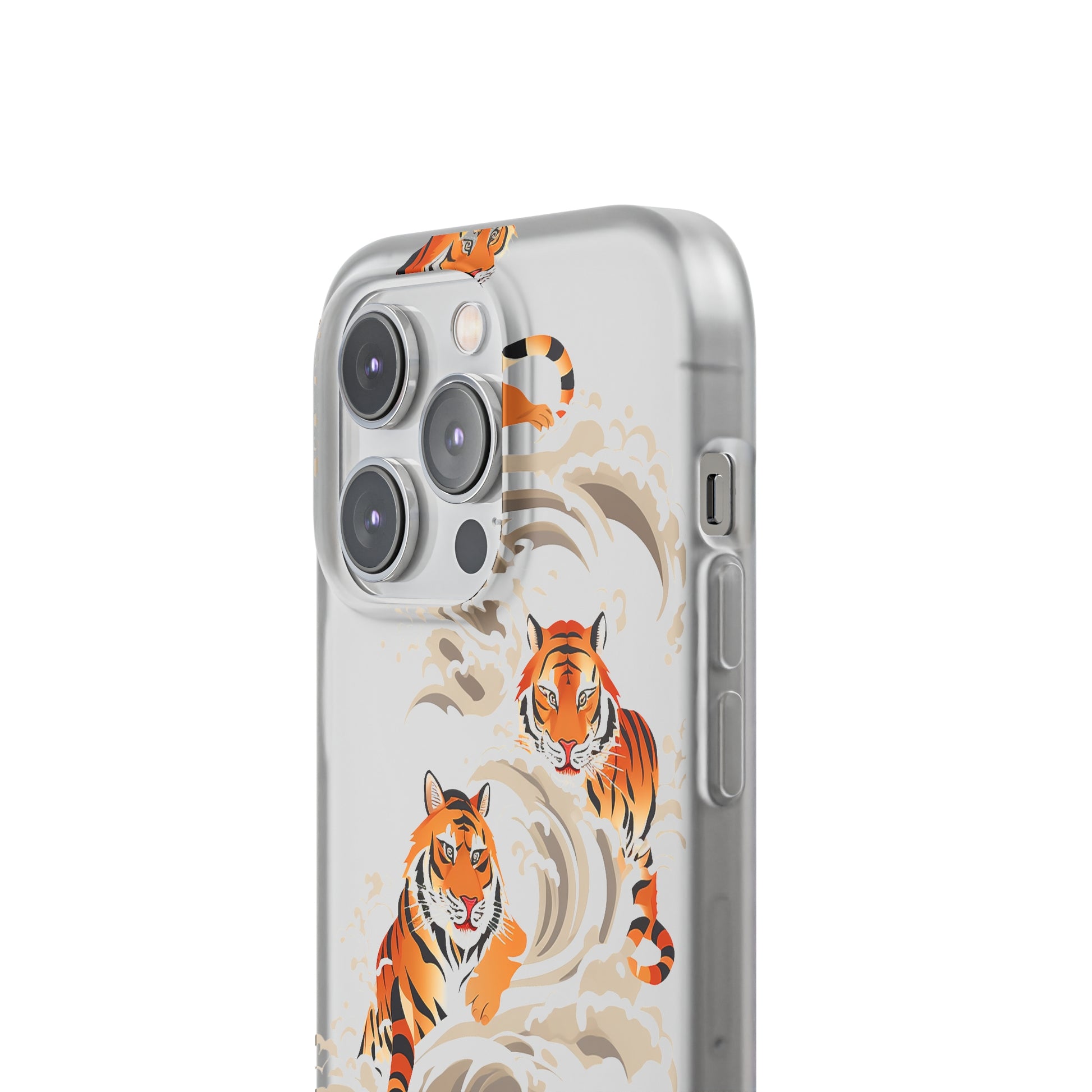 Keywords : Chinese ink, Majestic tiger, Traditional art, Flexi case, Phone protection, Elegant design, Unique artistry, Fluid strokes, Bold aesthetics, Delicate balance, Transparent case, Cultural blend, Contemporary style.